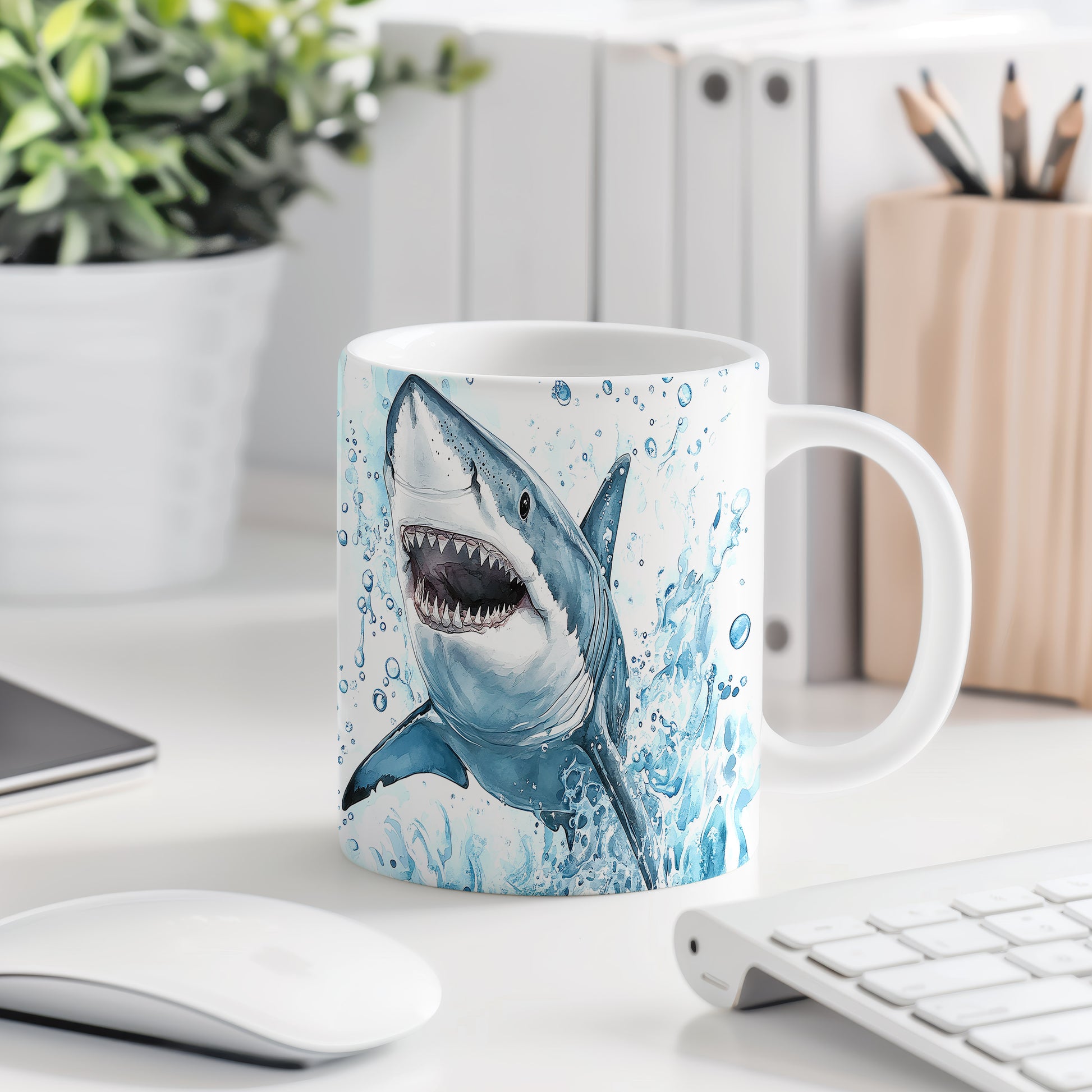 Tento hrnek s realistickým motivem žraloka přináší do vašeho každodenního pití závan oceánu. Ideální pro všechny, kdo mají rádi mořské tvory a chtějí si užít svůj oblíbený nápoj s nádechem dobrodružství.