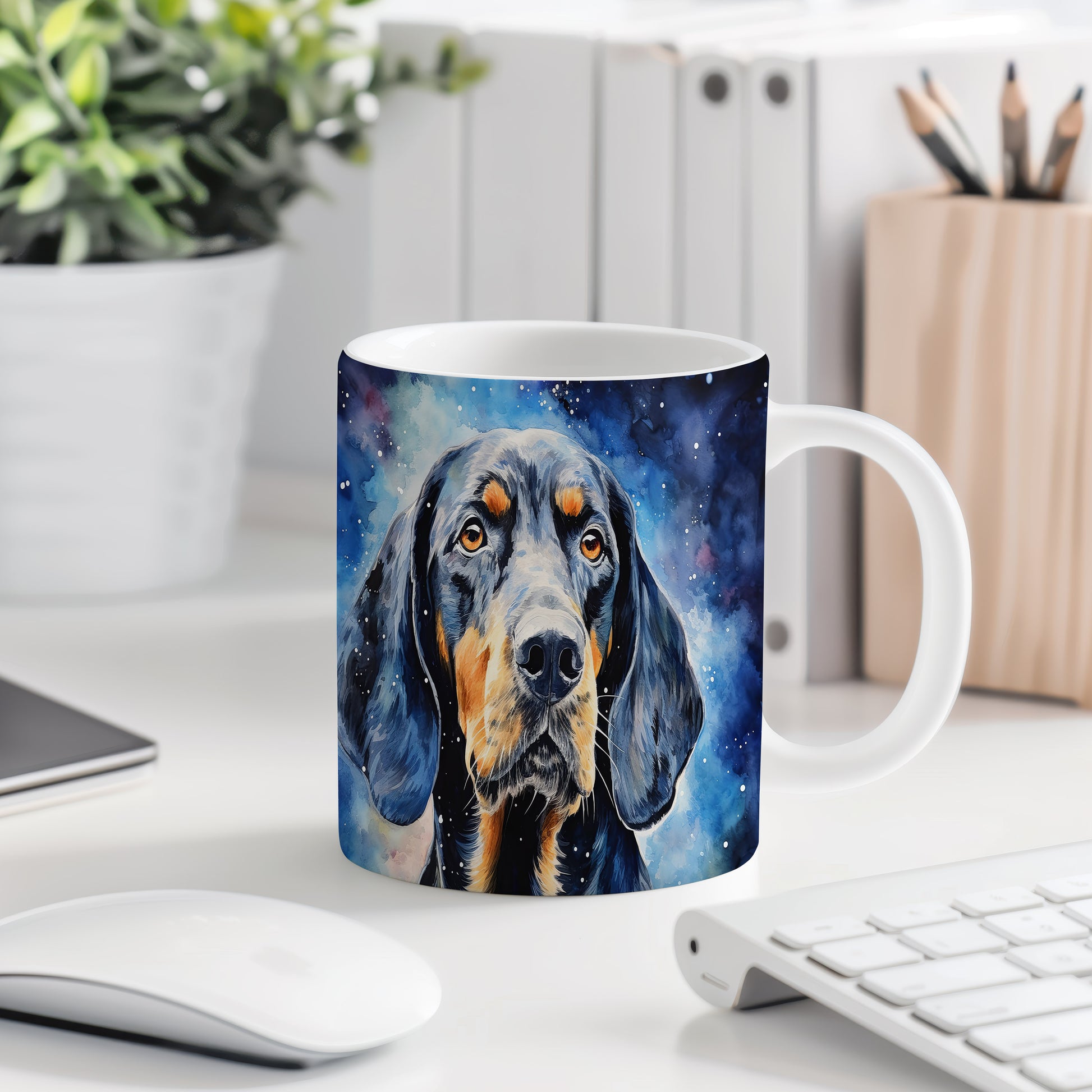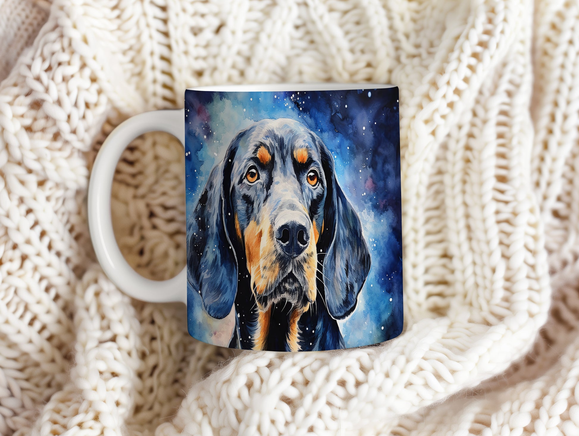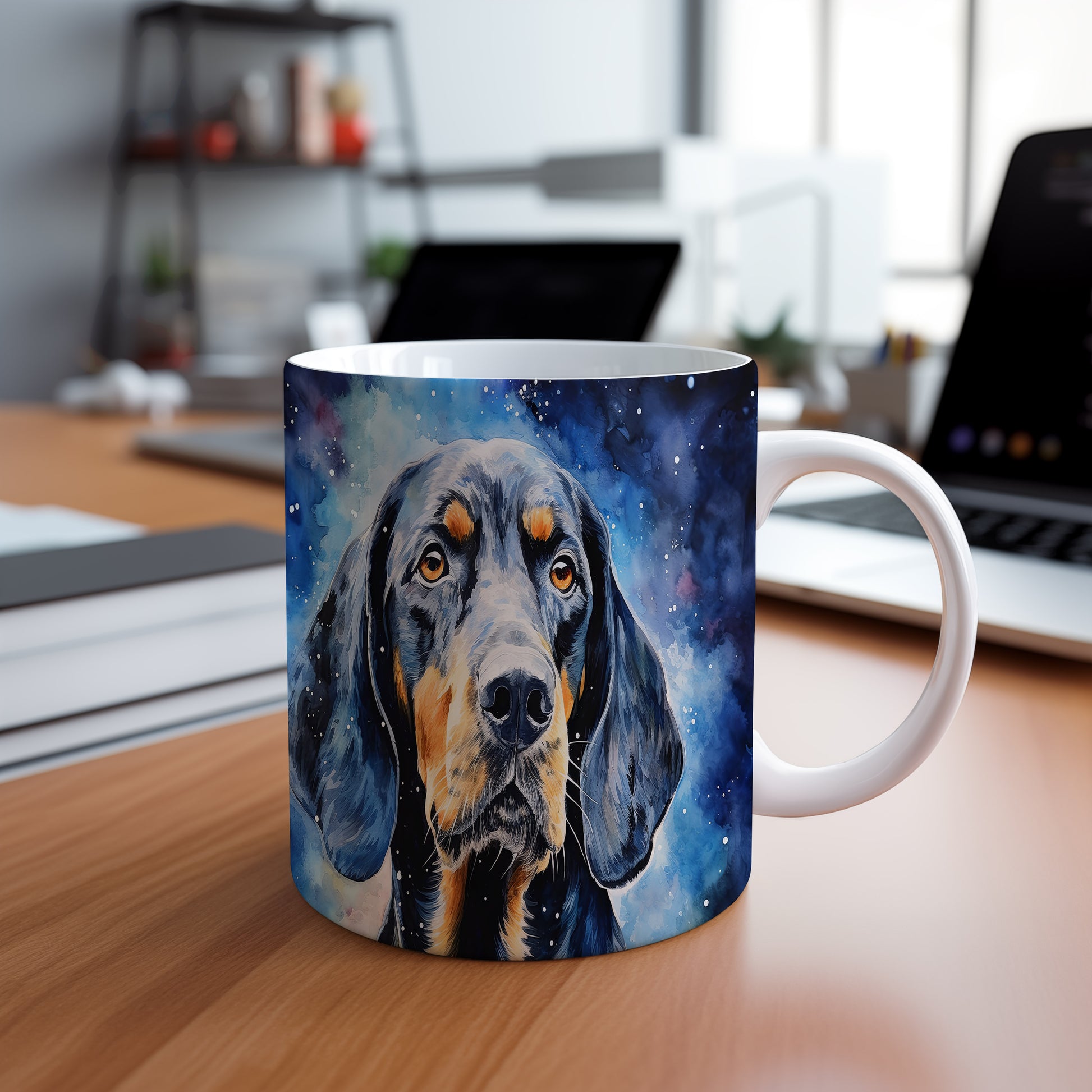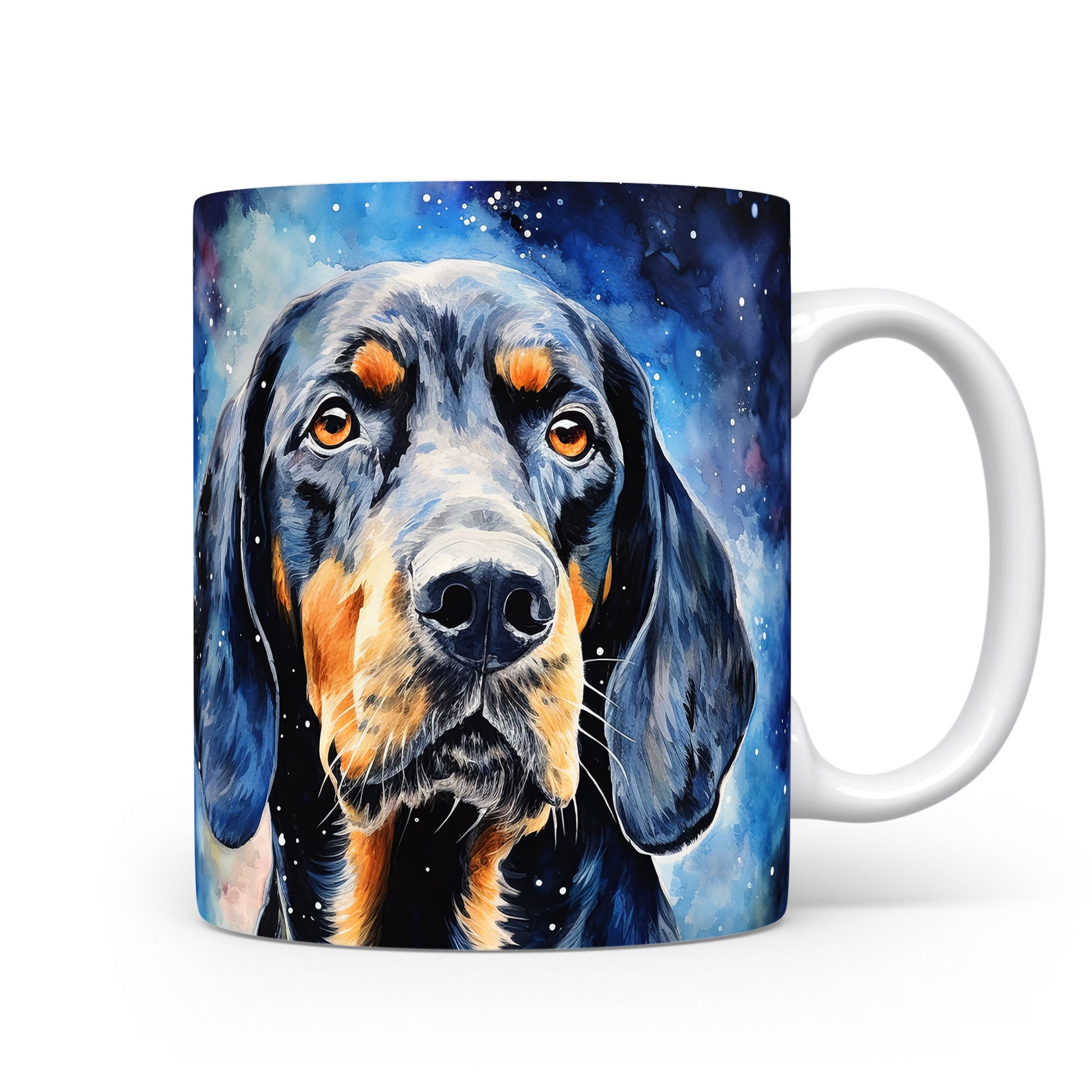 Originální hrnek s portrétem psa v galaktickém designu