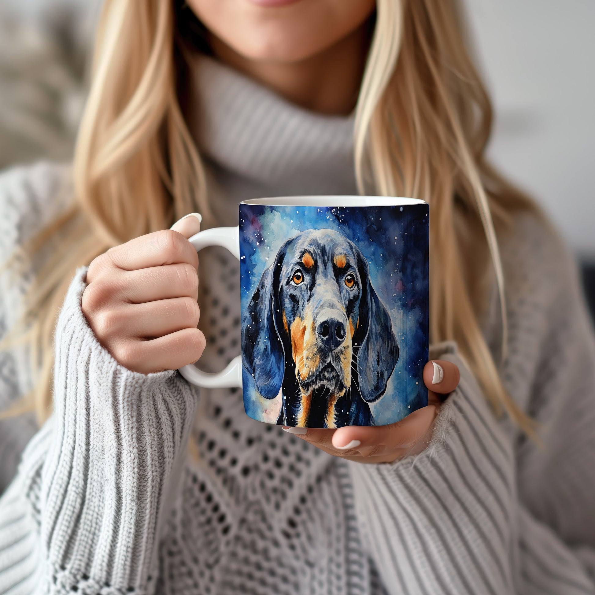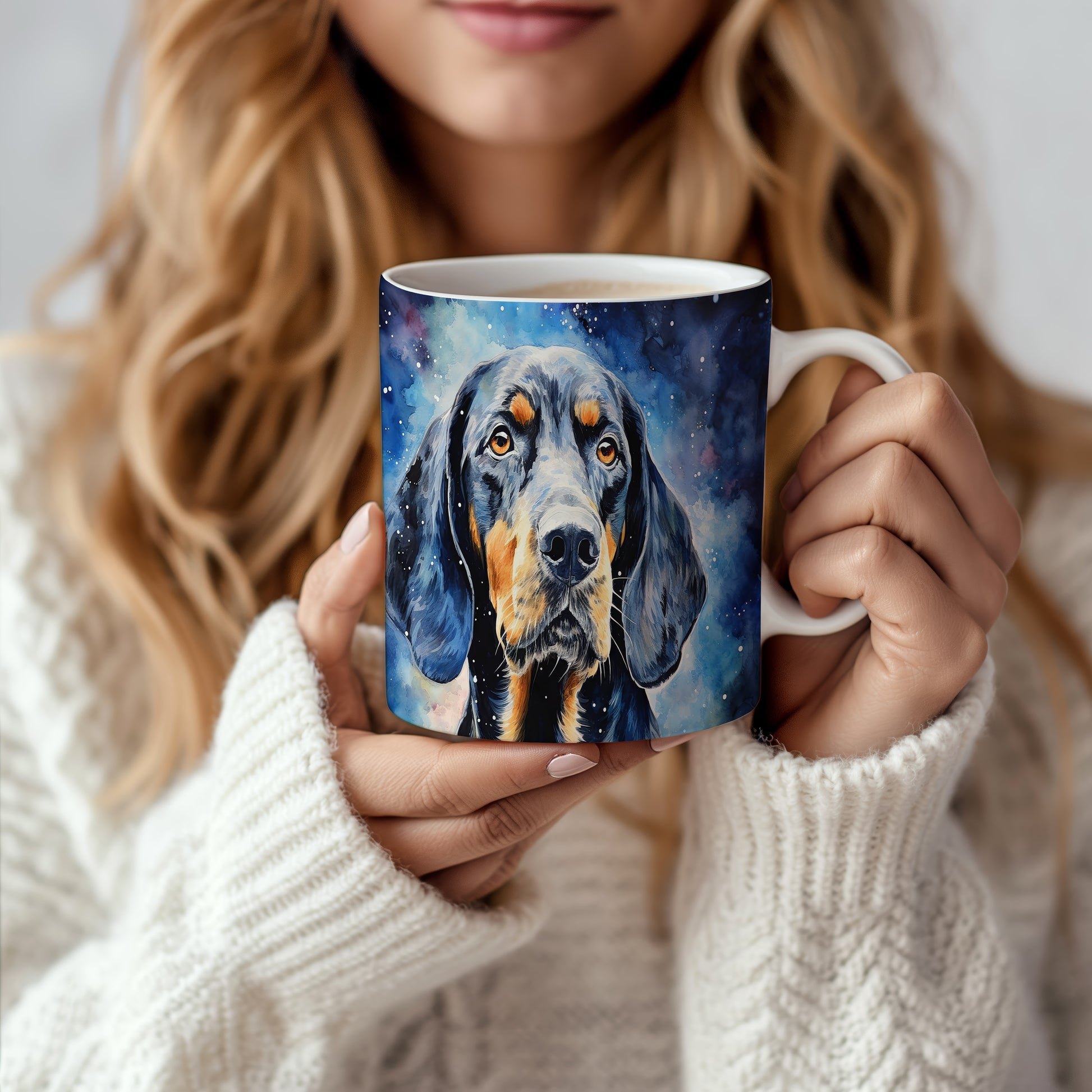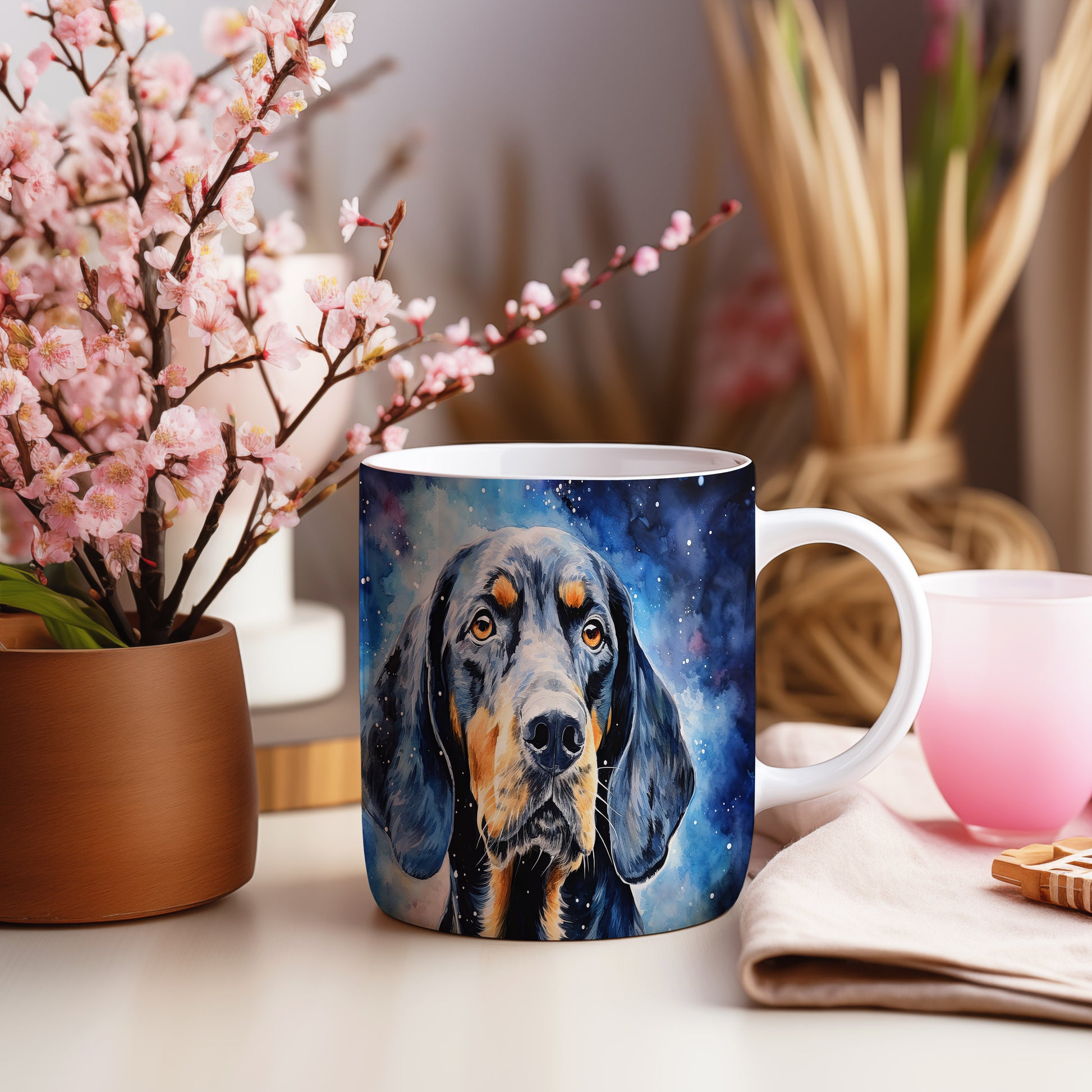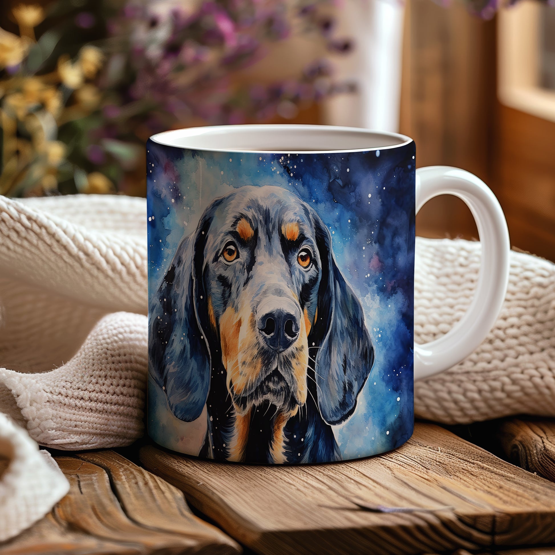 Originální hrnek s portrétem psa v galaktickém designu