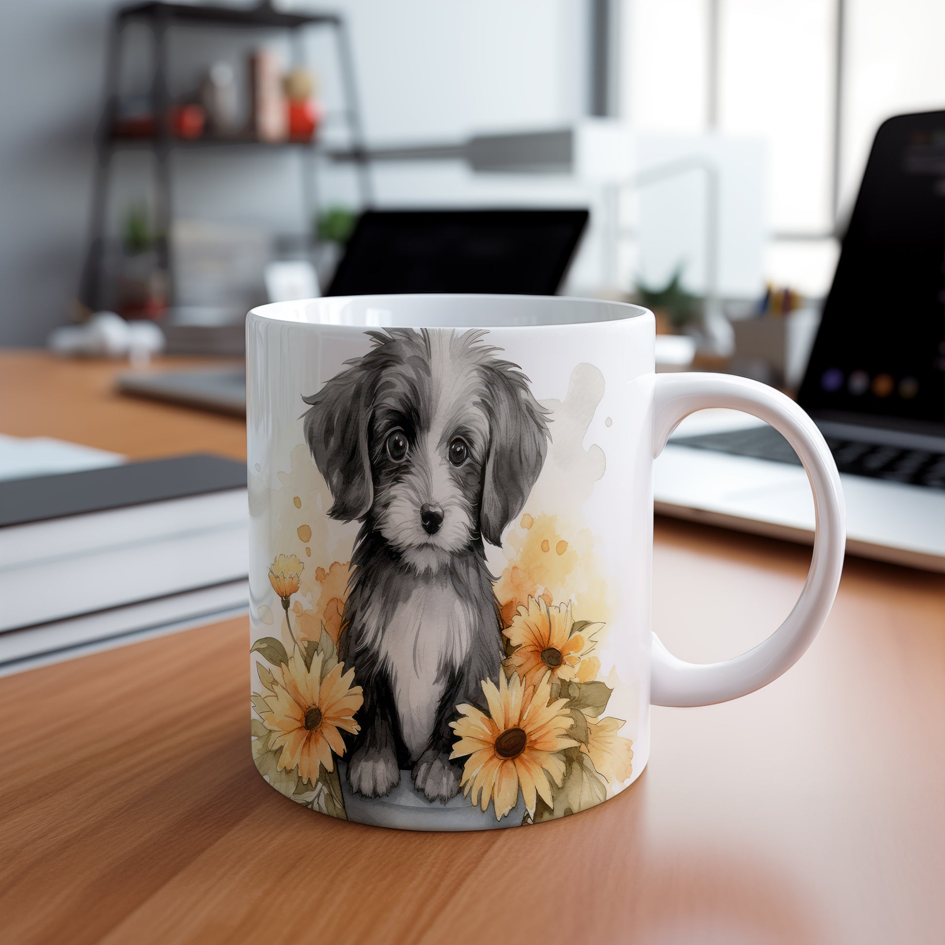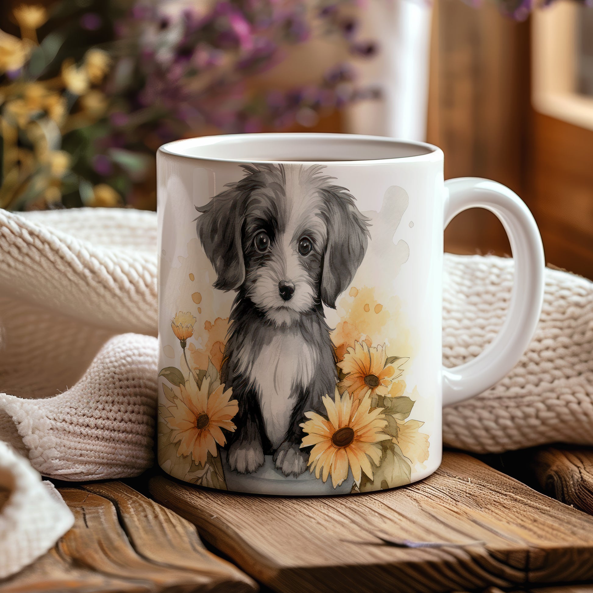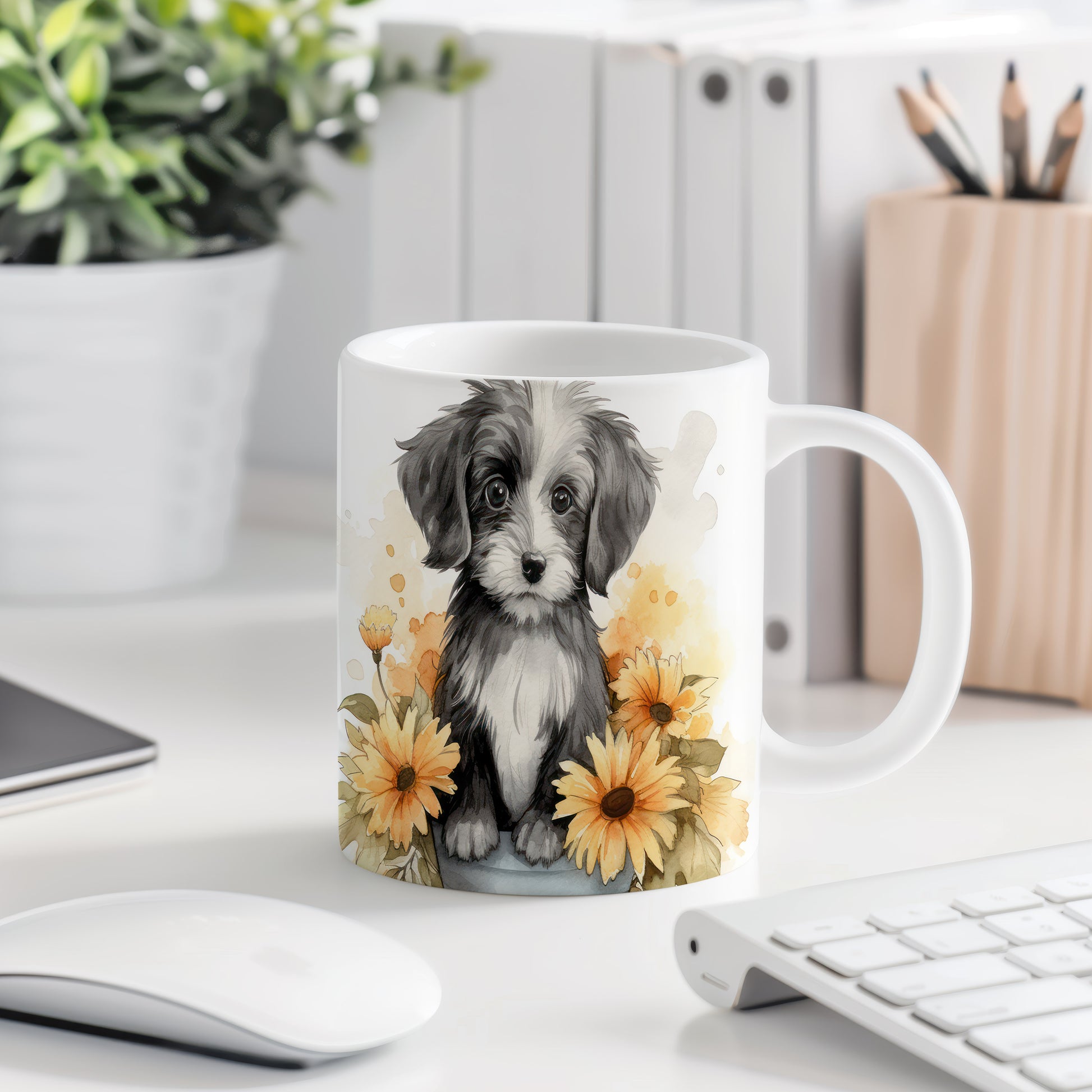 Tento hrnek s ilustrací pejska a slunečnic přináší radost do každého dne. Ideální pro milovníky zvířat a originální dárek pro blízké.
