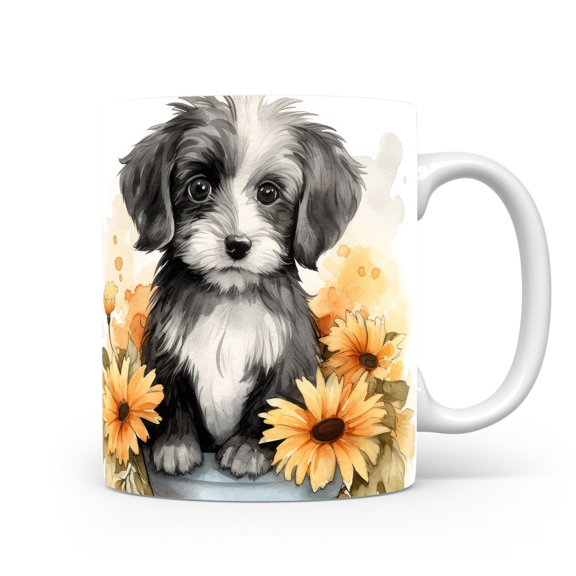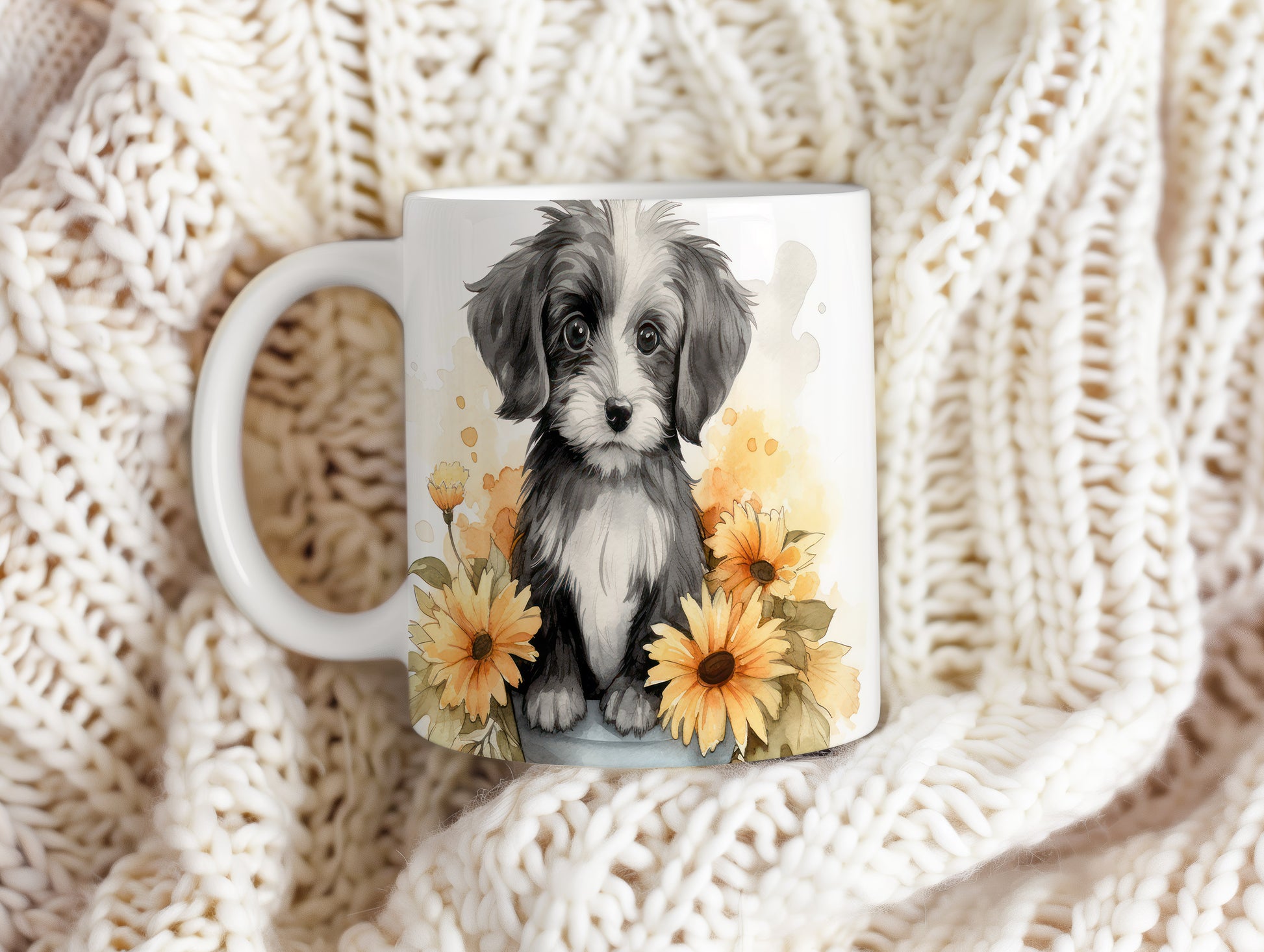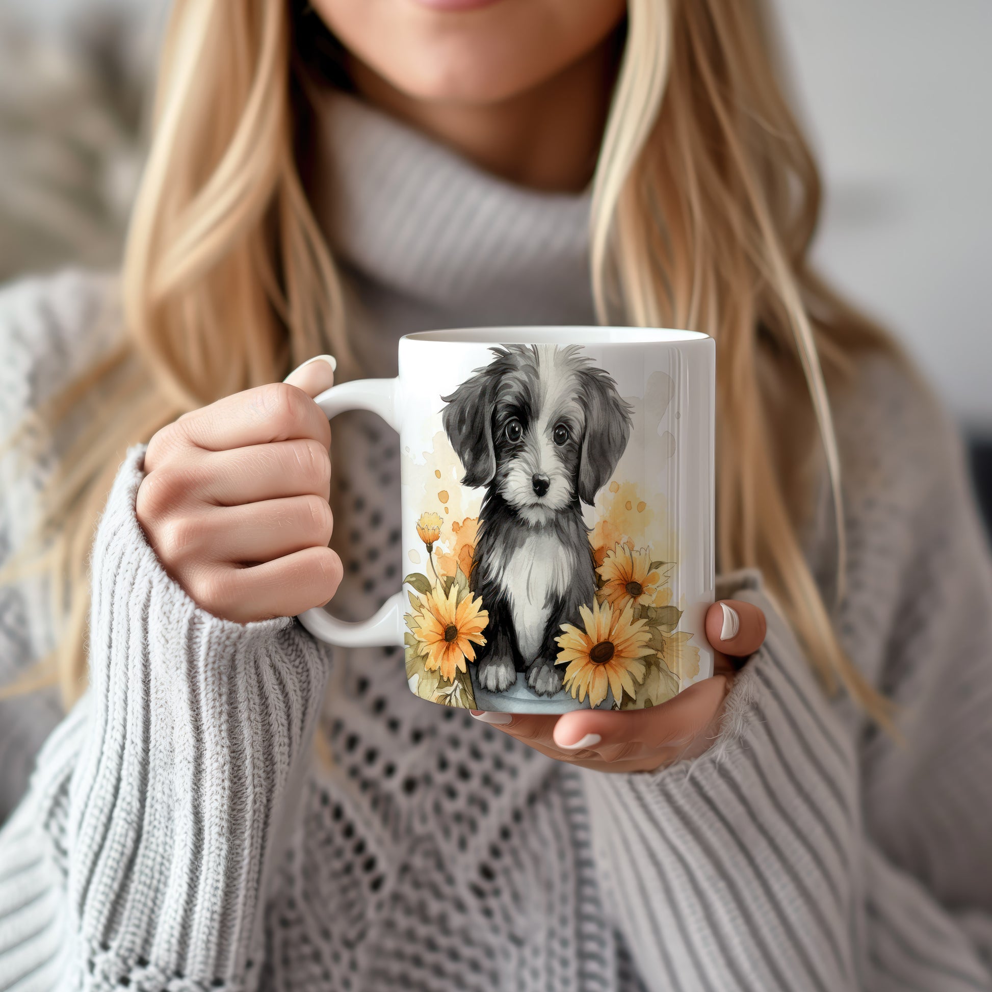 Tento hrnek s ilustrací pejska a slunečnic přináší radost do každého dne. Ideální pro milovníky zvířat a originální dárek pro blízké.