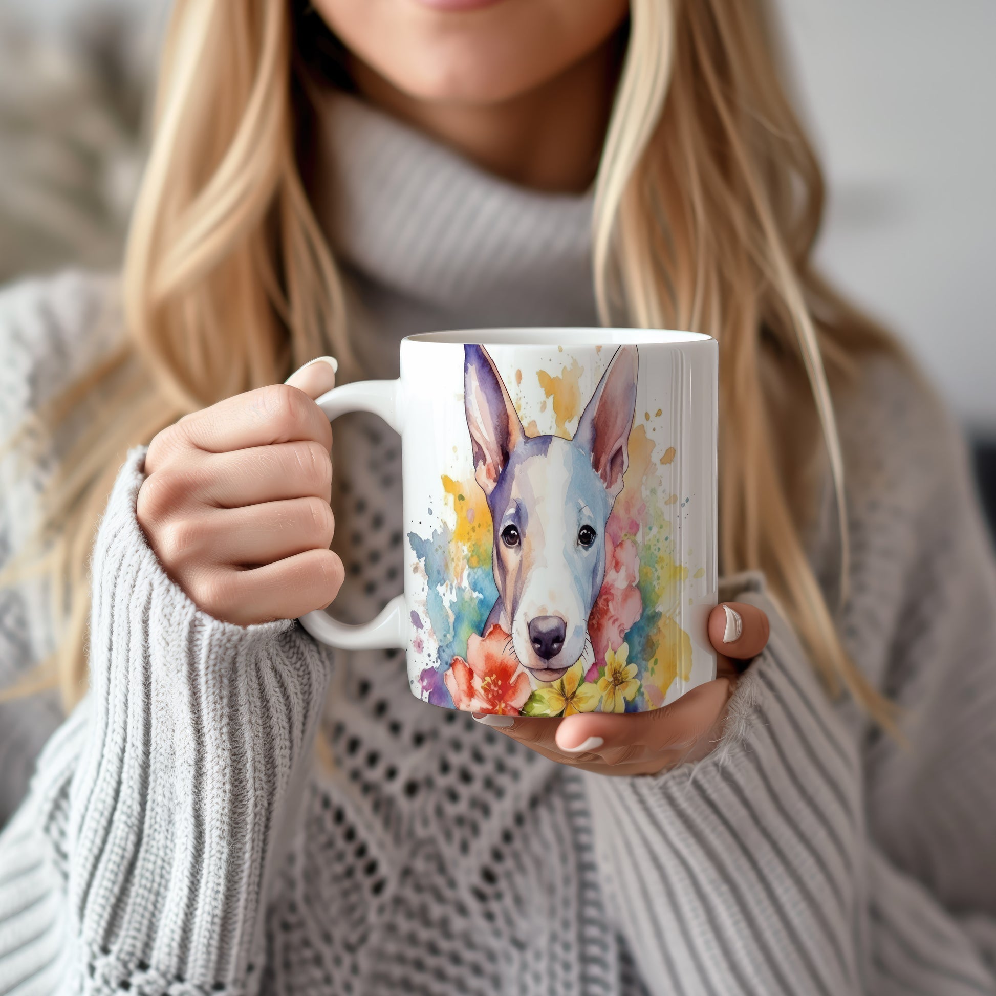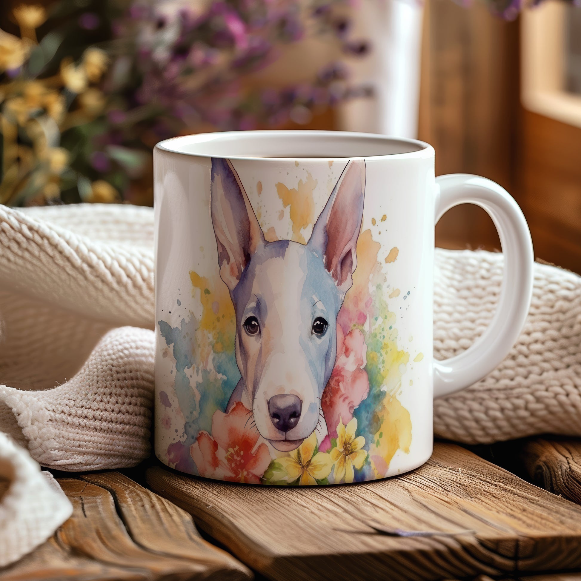 Tento hrnek s jedinečným akvarelovým designem bulteraiera a květin je ideální pro milovníky psů. Vyjádřete svou lásku k těmto čtyřnohým přátelům každodenním pitím oblíbených nápojů.