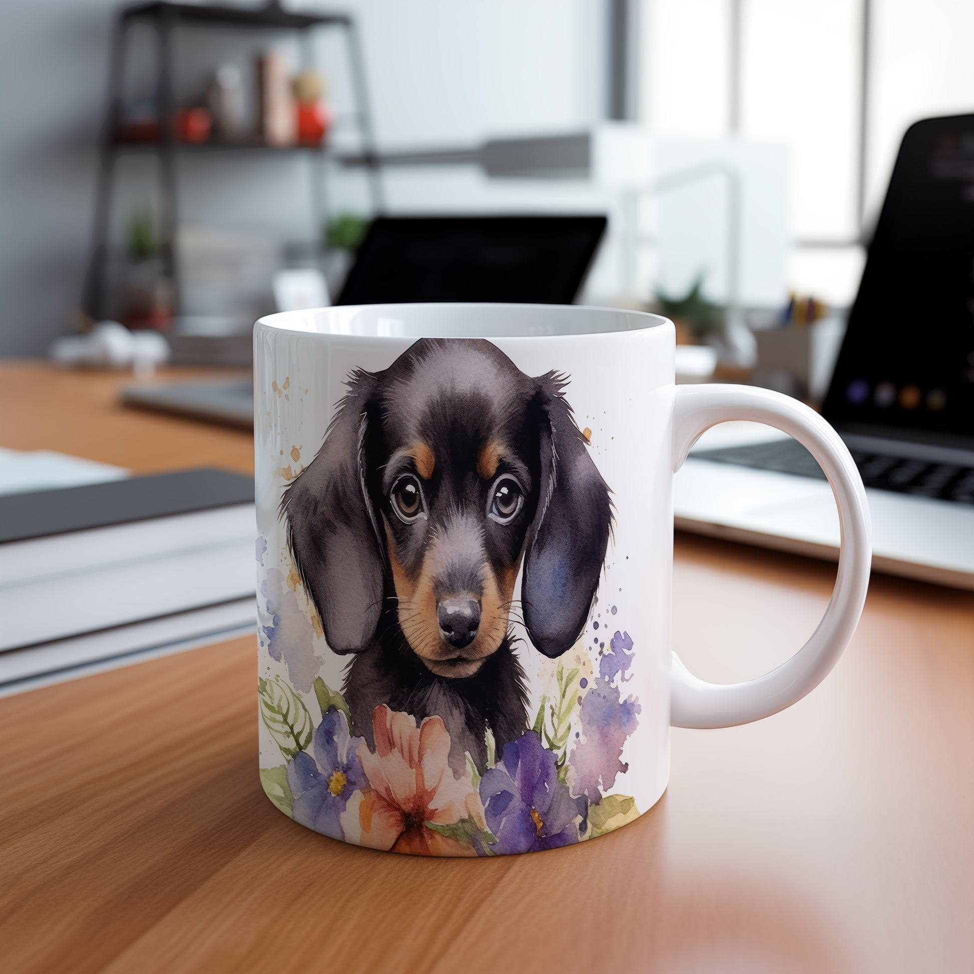 Tento hrnek s motivem jezevčíka a květin přináší do každého dne radost. Ideální pro milovníky psů a přírody.