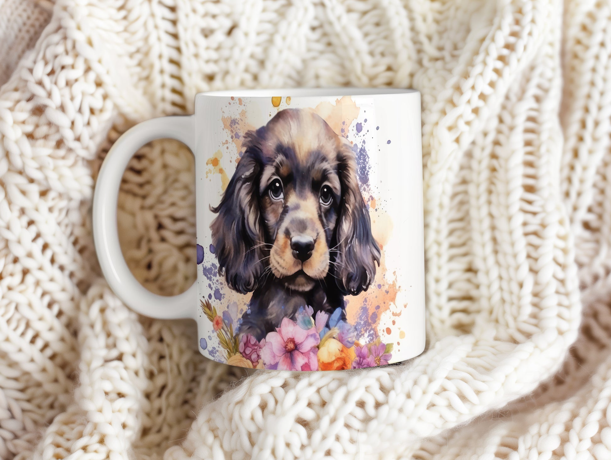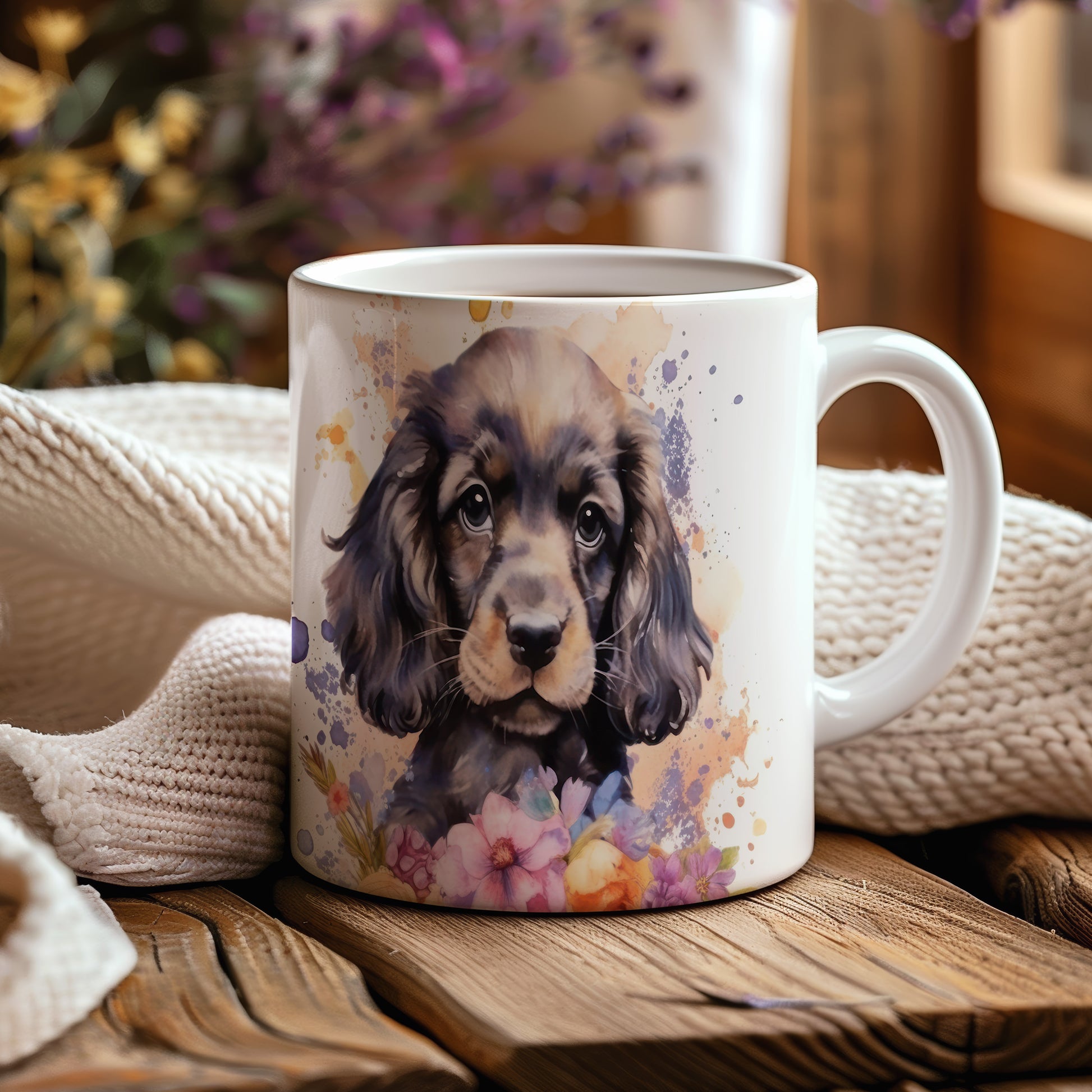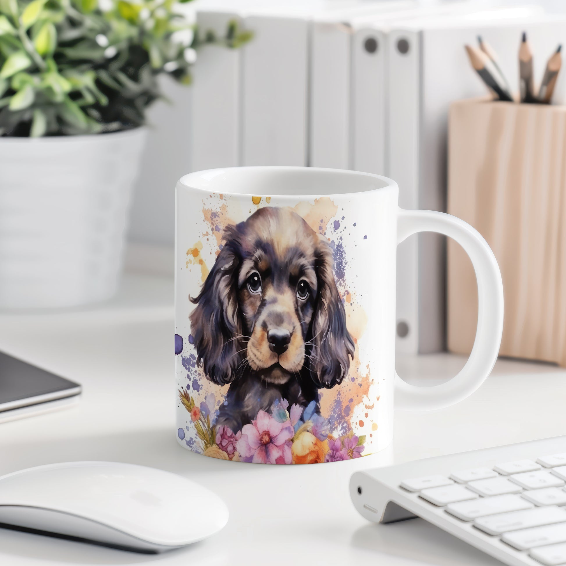 Tento hrnek s ilustrací roztomilého štěněte a květin dodá vašemu dni šarm. Ideální pro milovníky psů, kteří ocení stylový a osobitý doplněk.