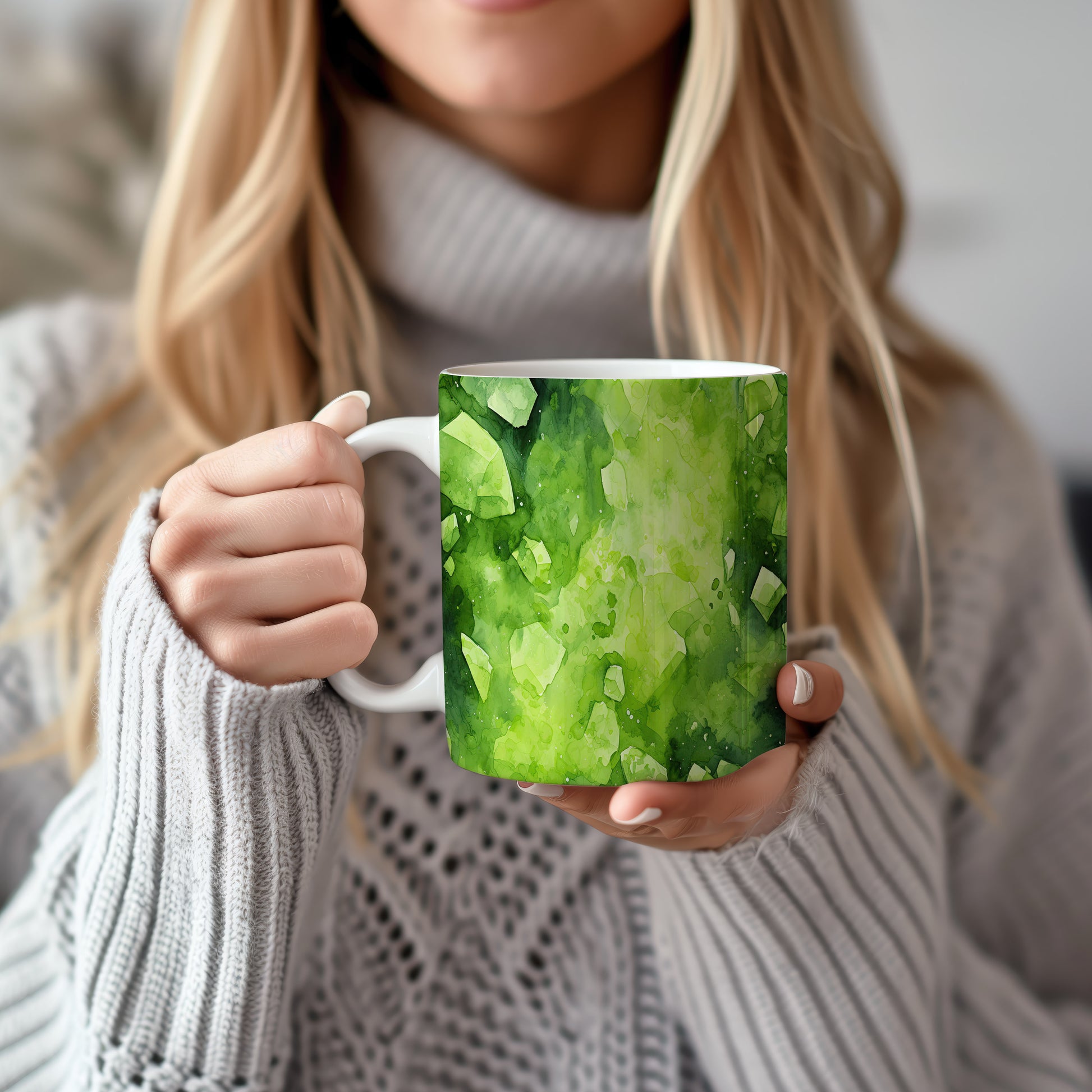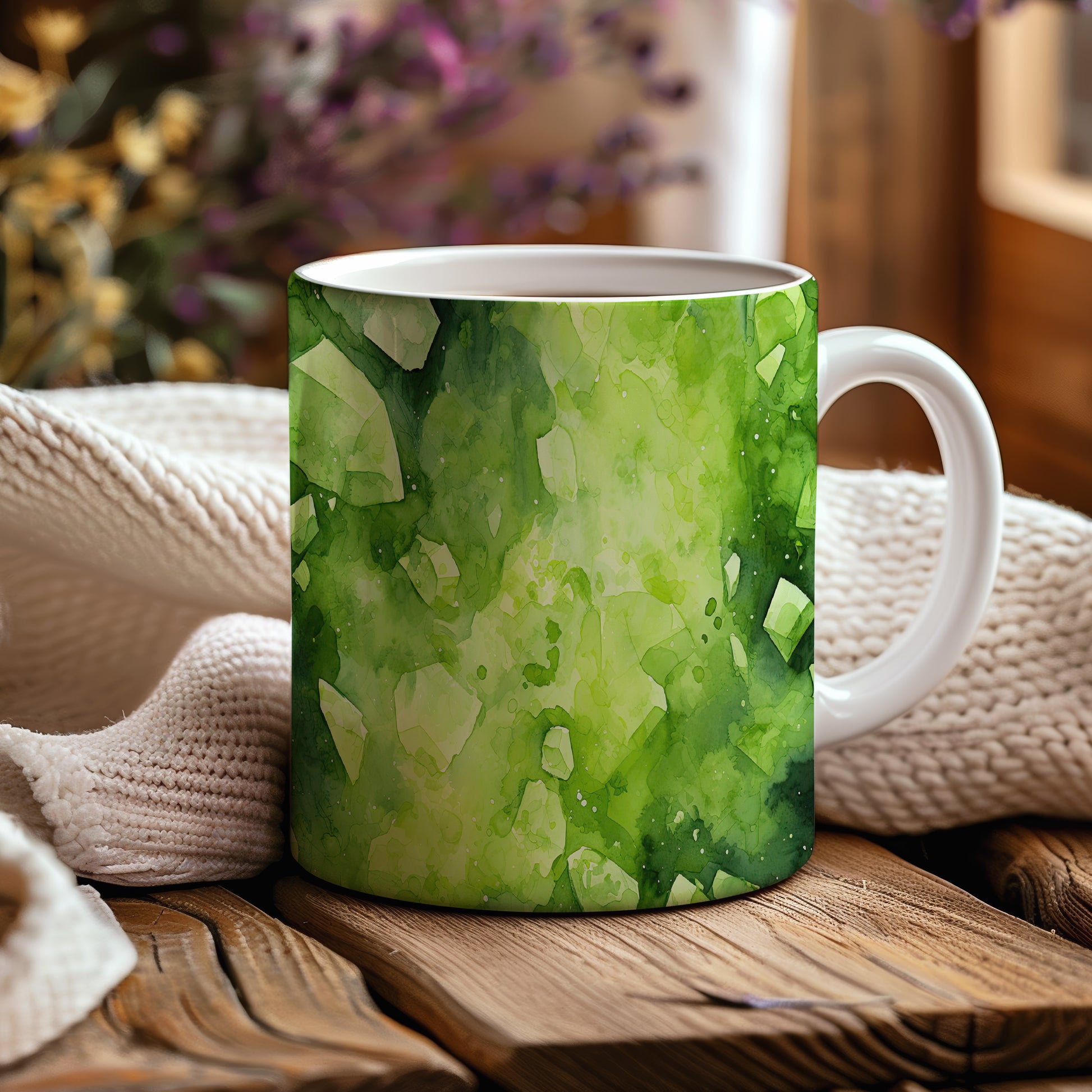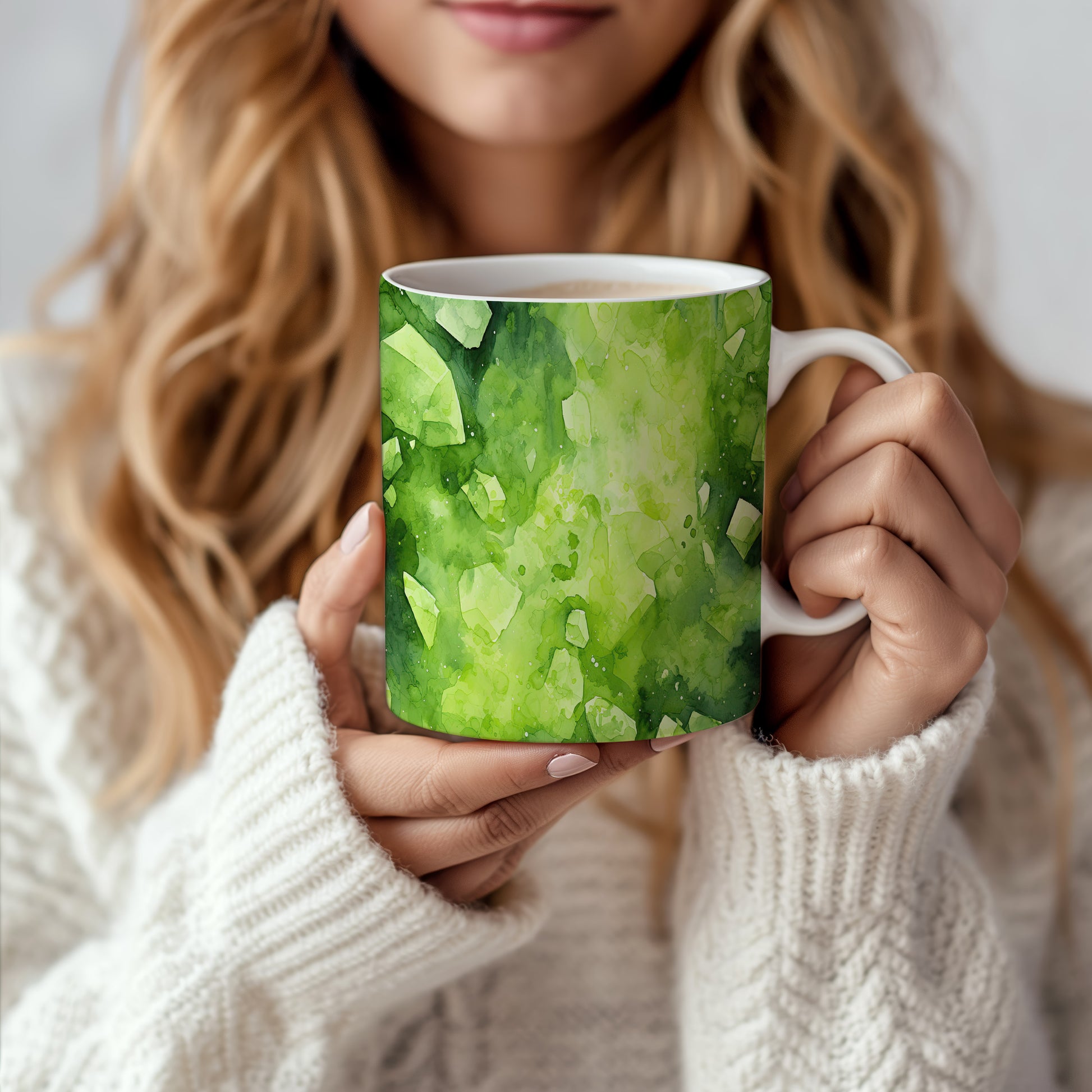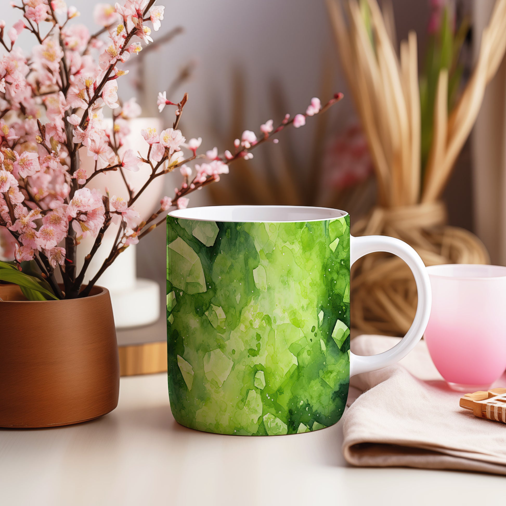 Tento elegantní hrnek s akvarelovým designem v odstínech zelené je ideální pro vaše oblíbené nápoje. Přineste do svého dne kousek přírody a umění.