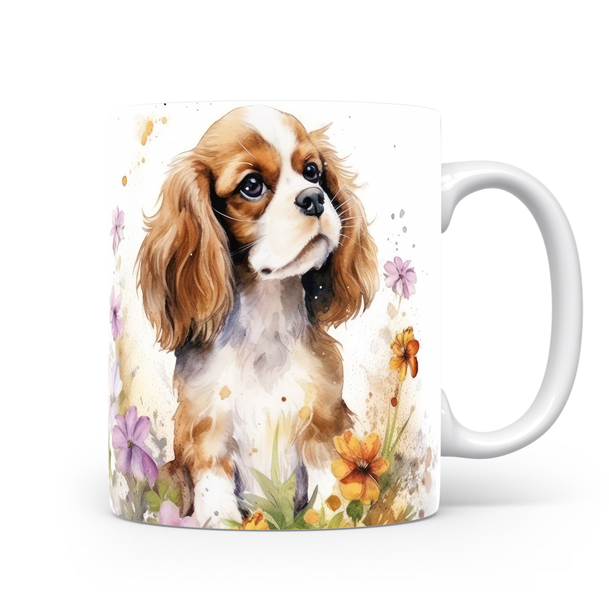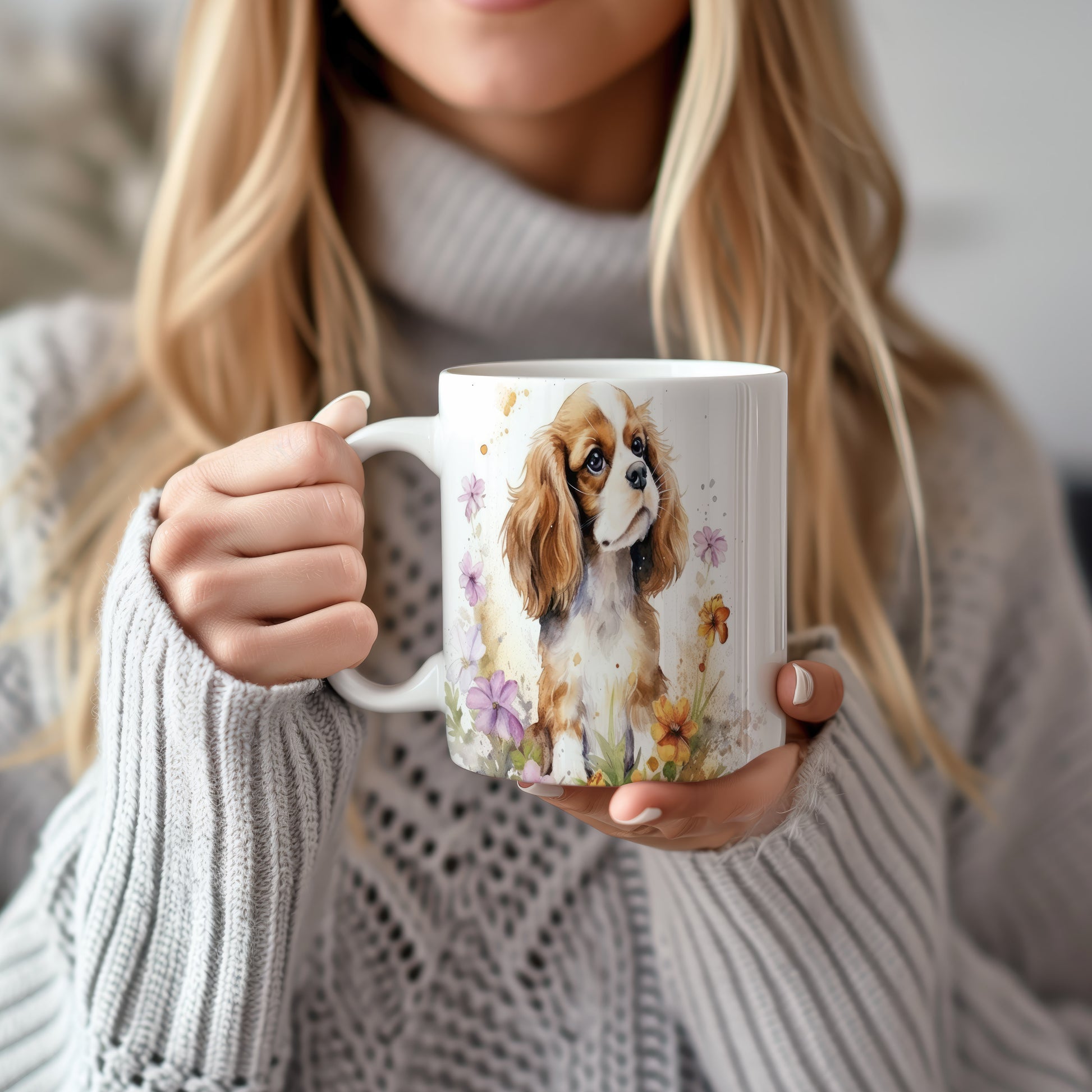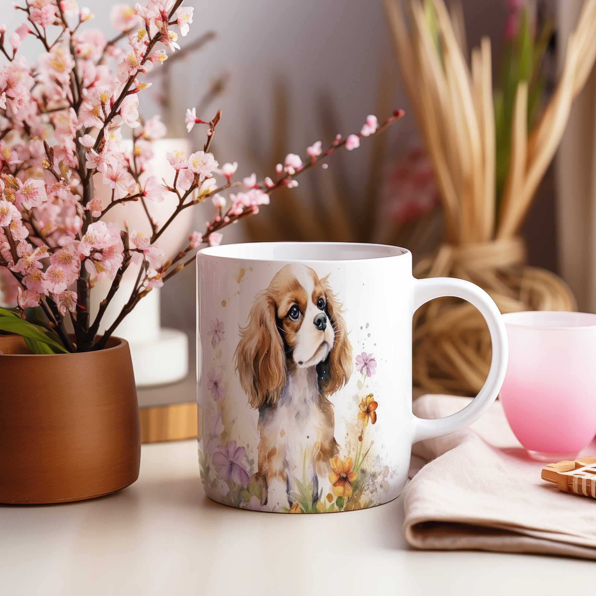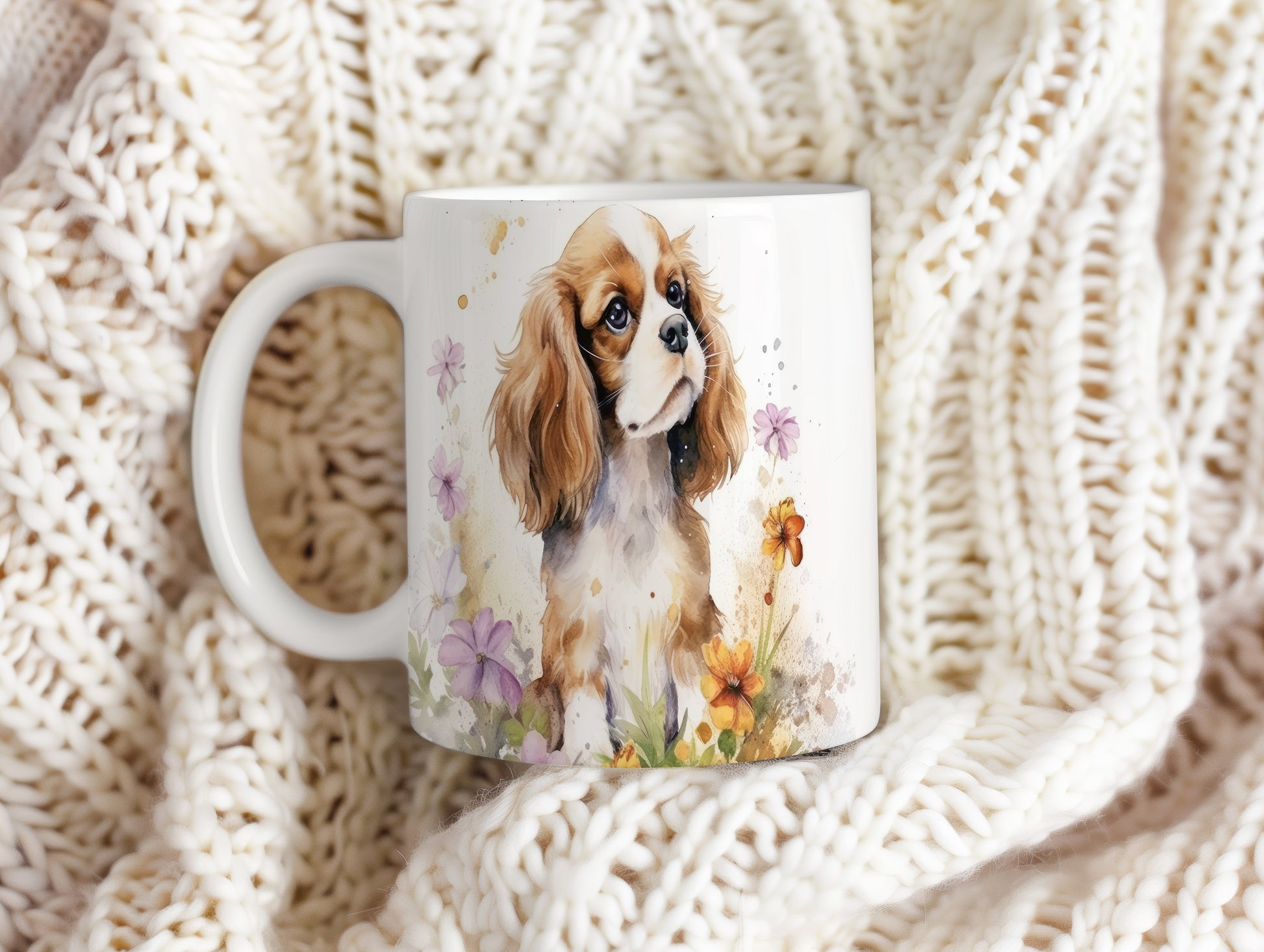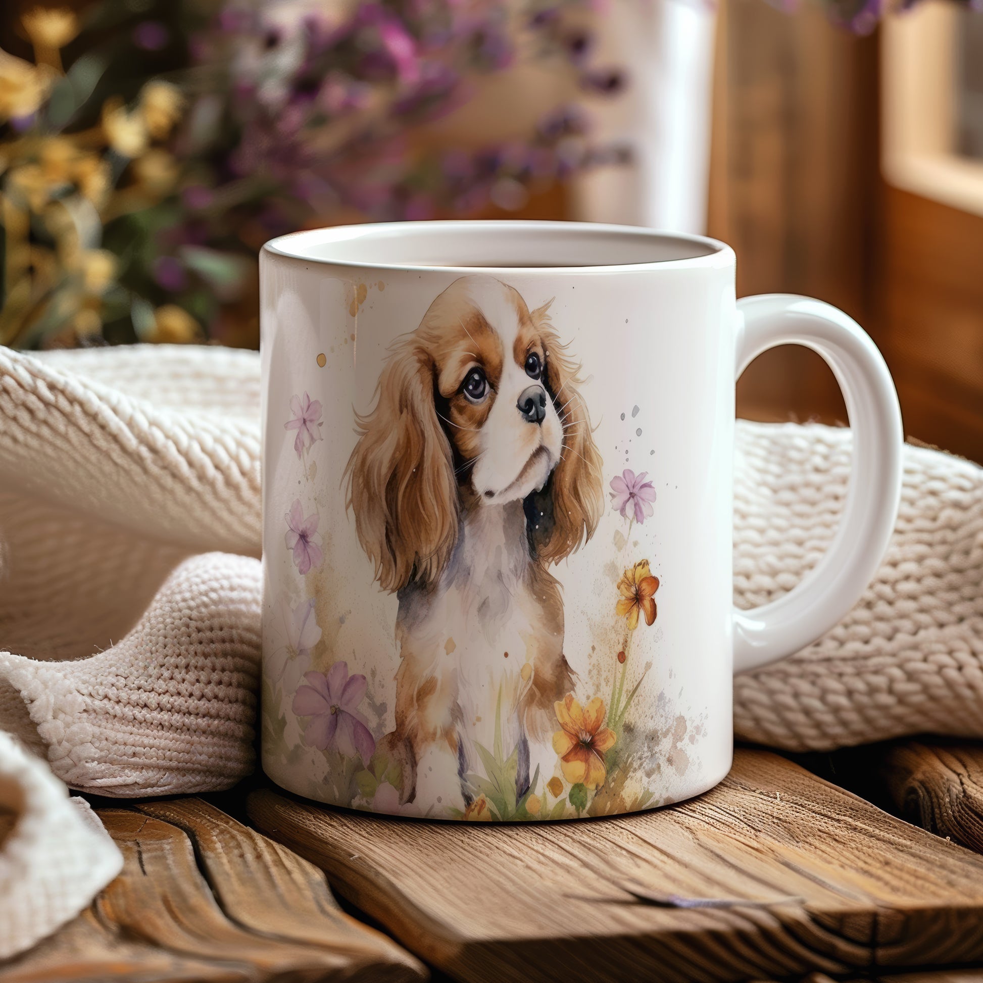 Hrnek s obrázkem kokršpaněla a květinového motivu