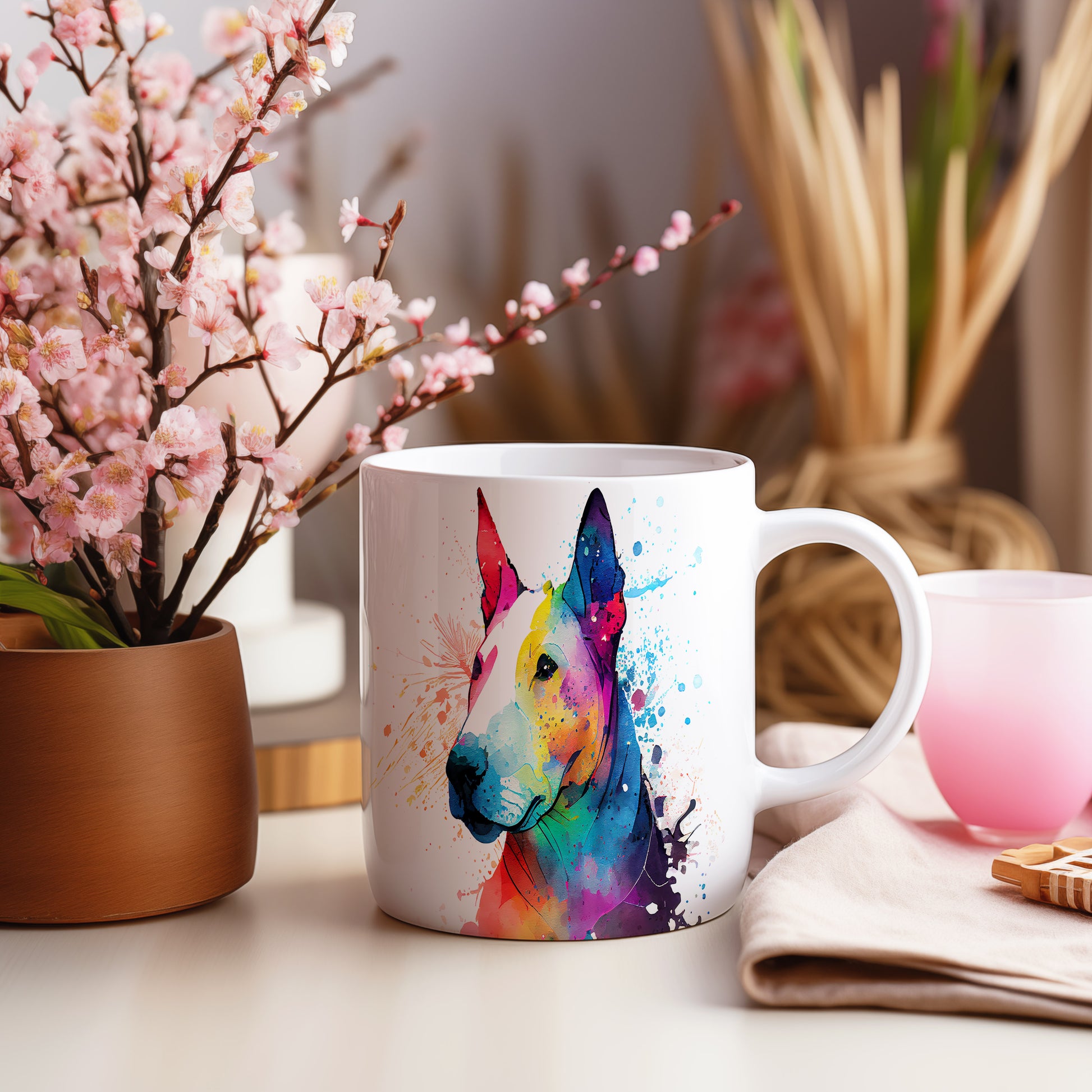 Barevný hrnek s motivem bullteriéra pro milovníky psů