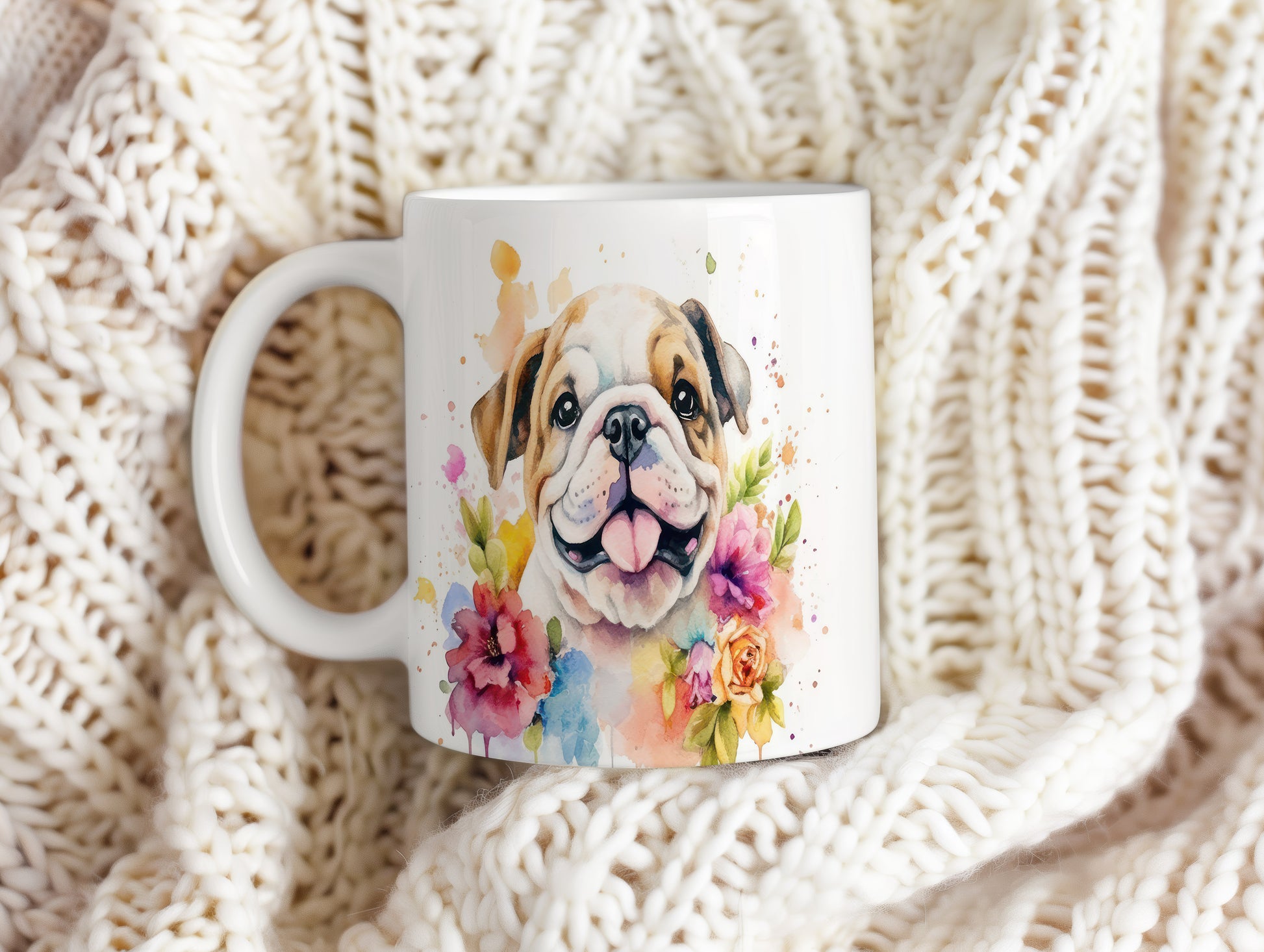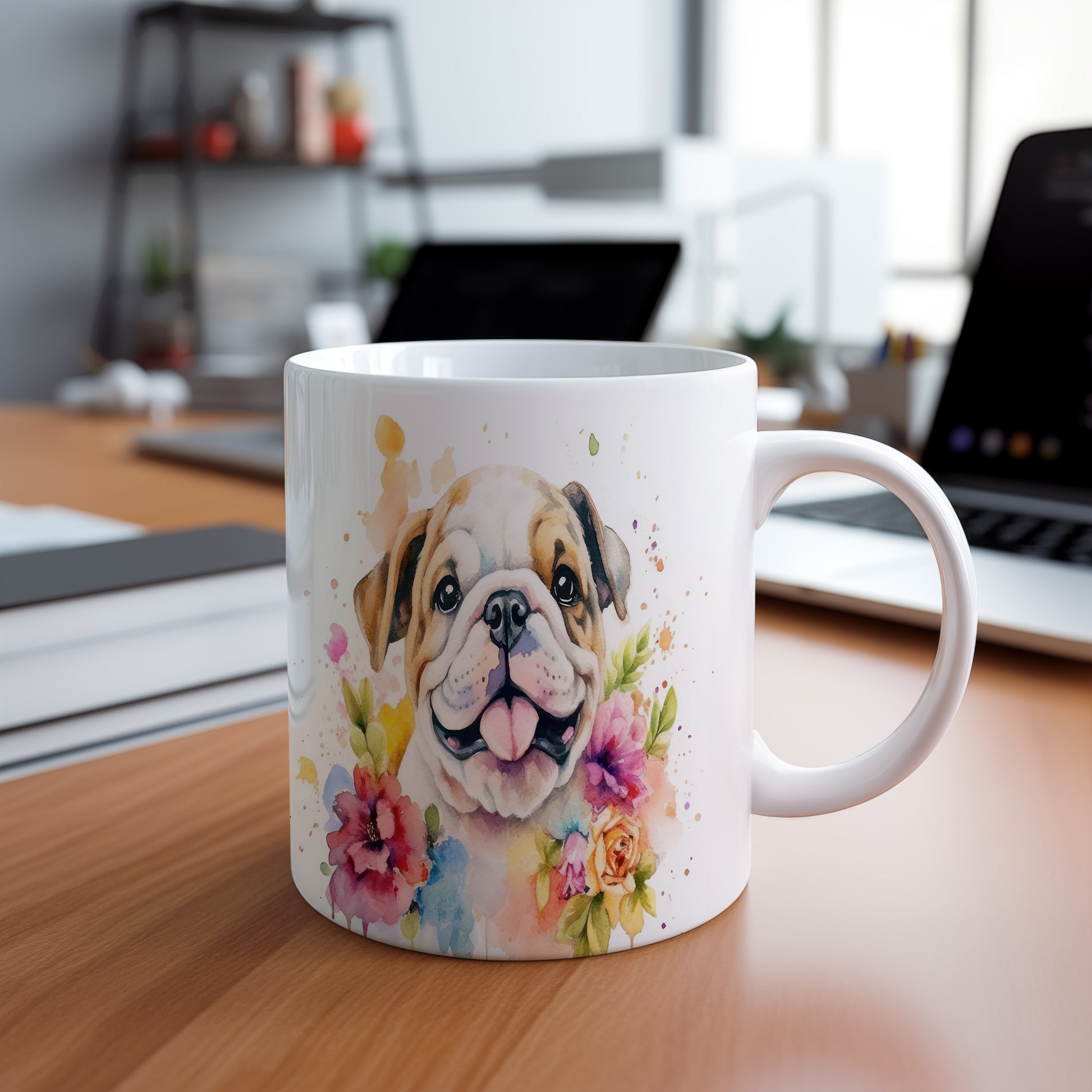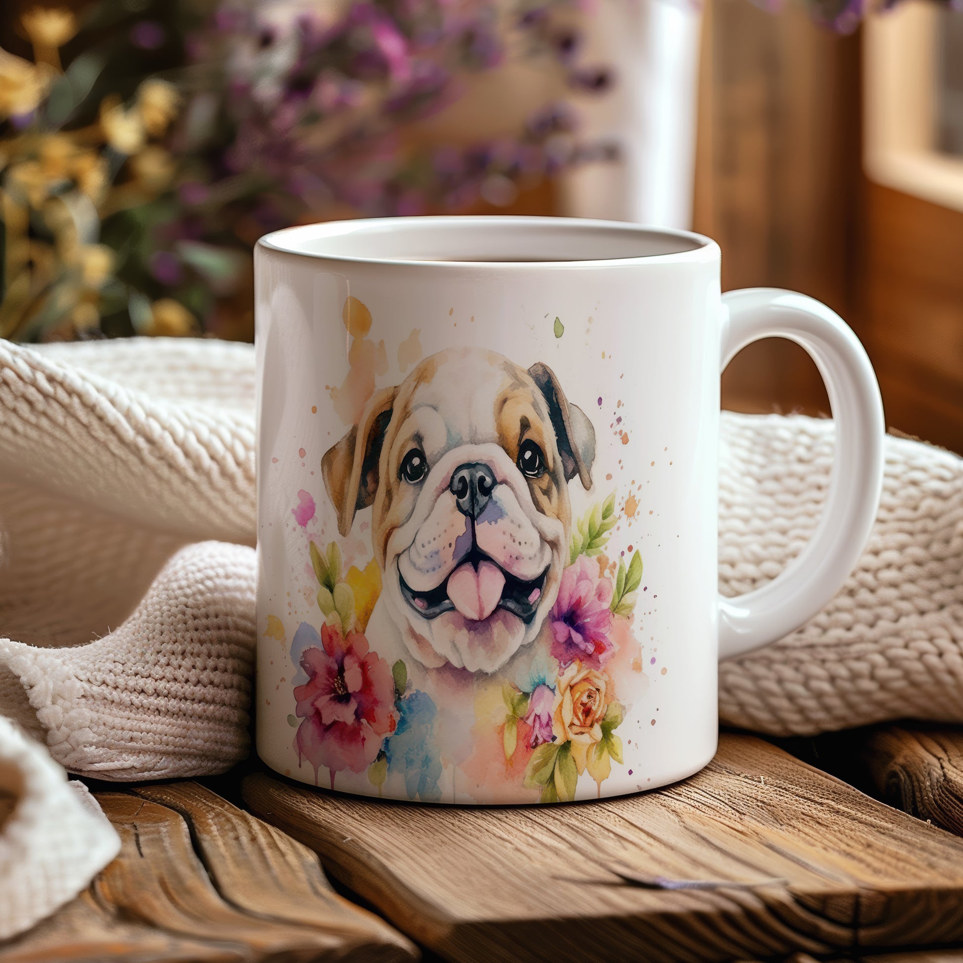 Tento hrnek s ilustrací buldoga a barevných květin je ideální pro milovníky psů. Přidejte špetku radosti do každého dne s tímto jedinečným kusem.