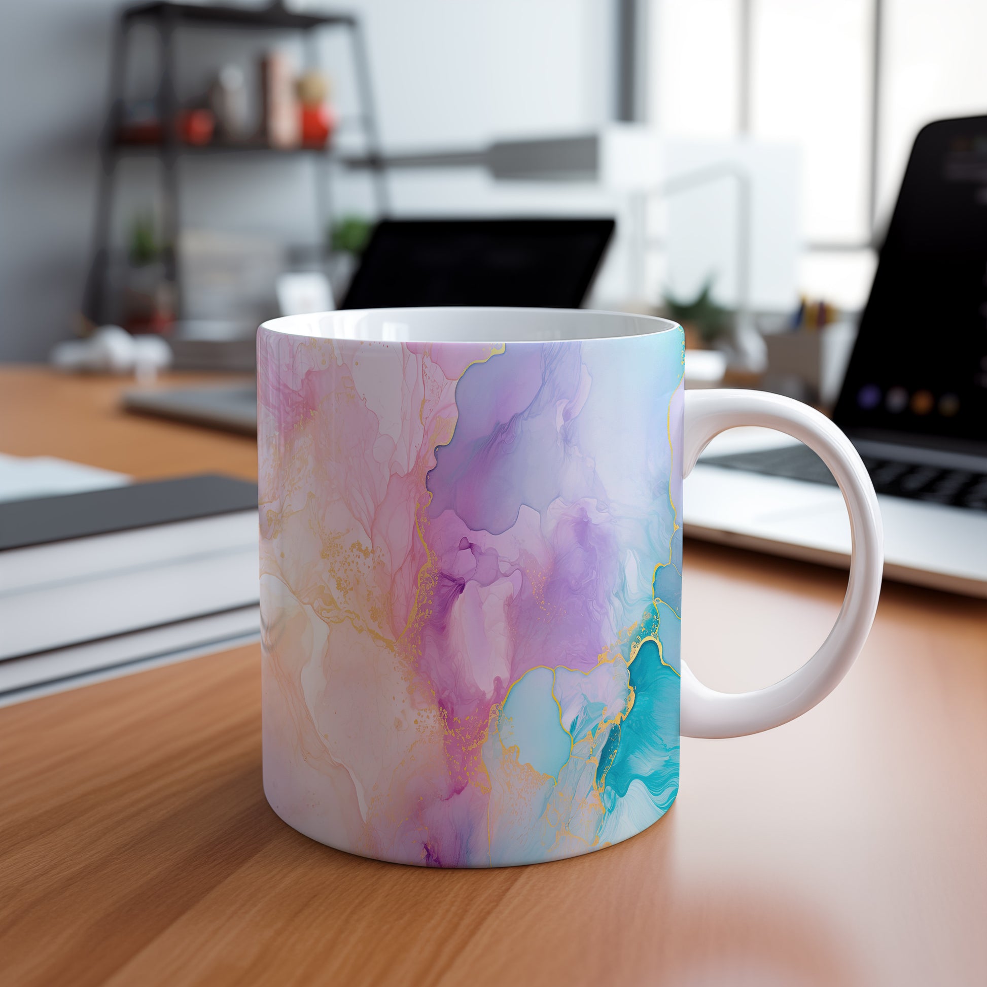Elegatní hrnek s abstraktním motivem v pastelových barvách