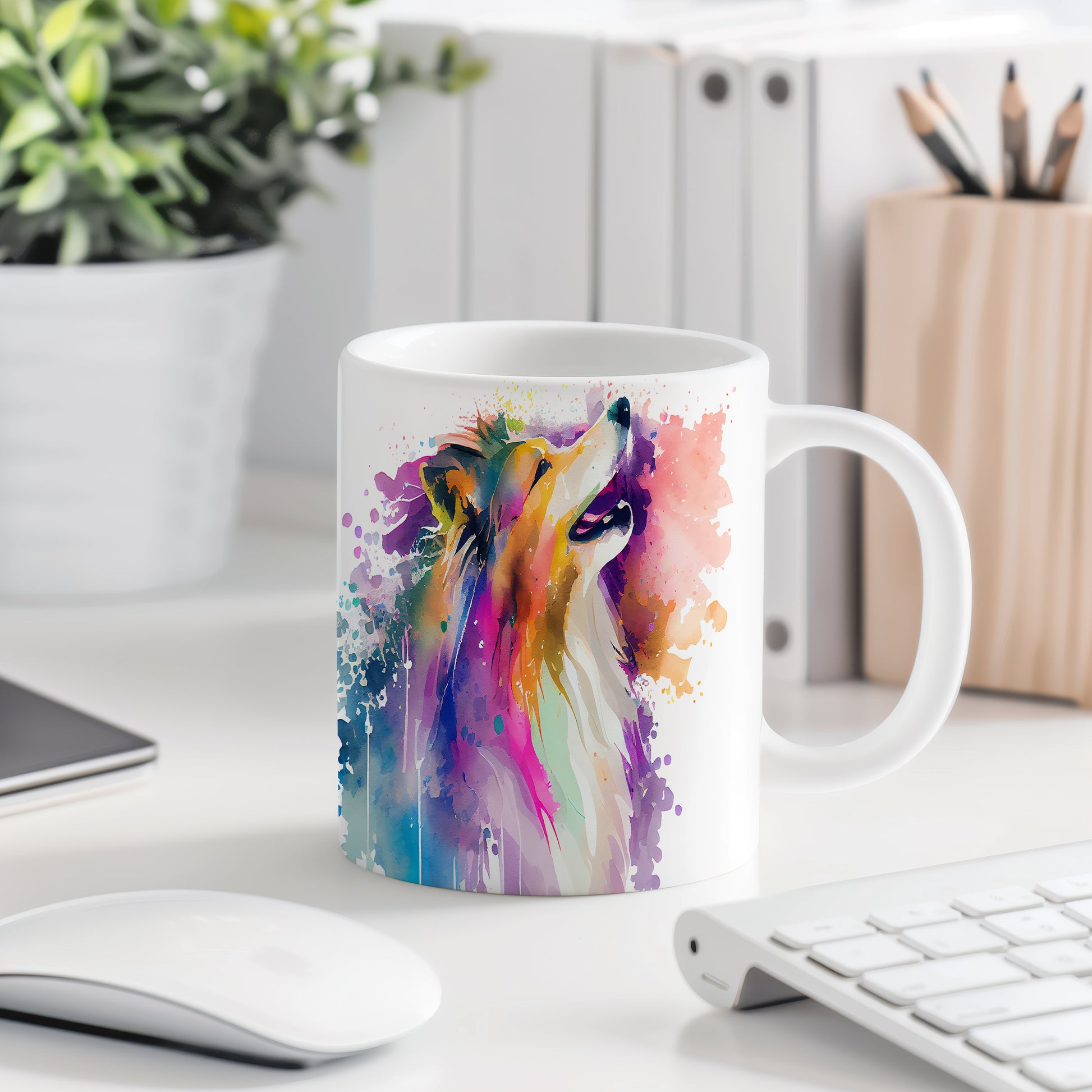 Barevný hrnek s kolie: umělecký design pro milovníky psů