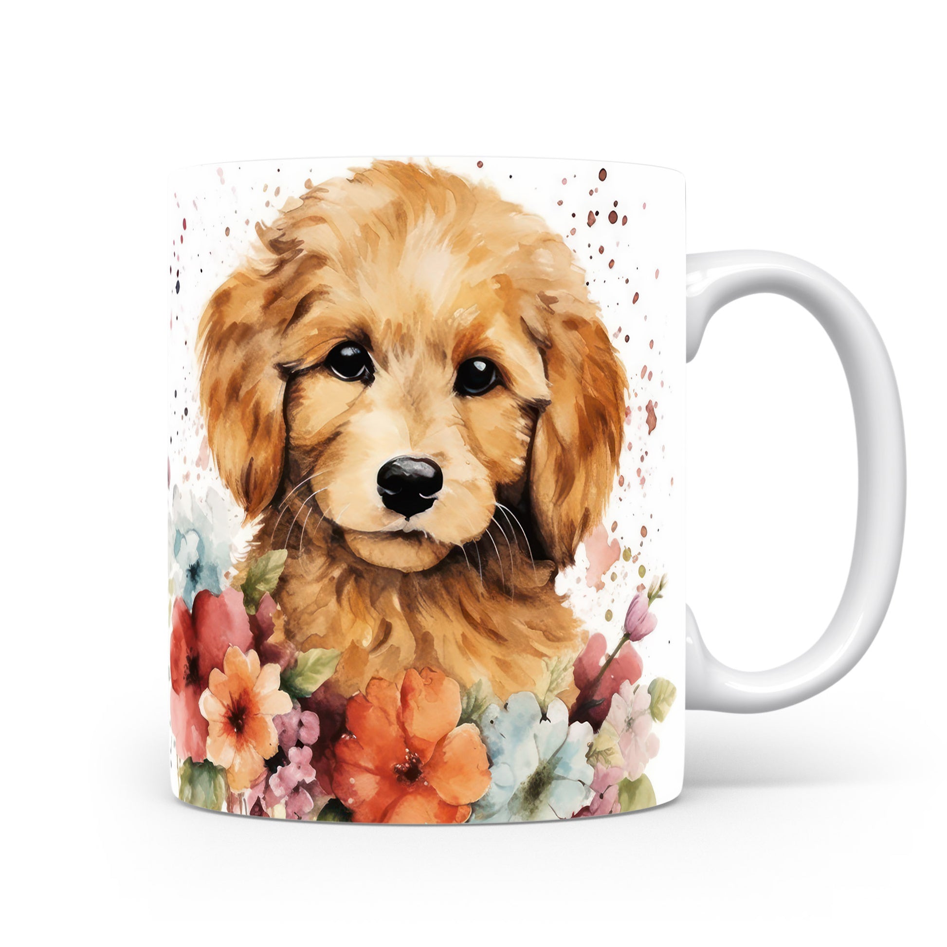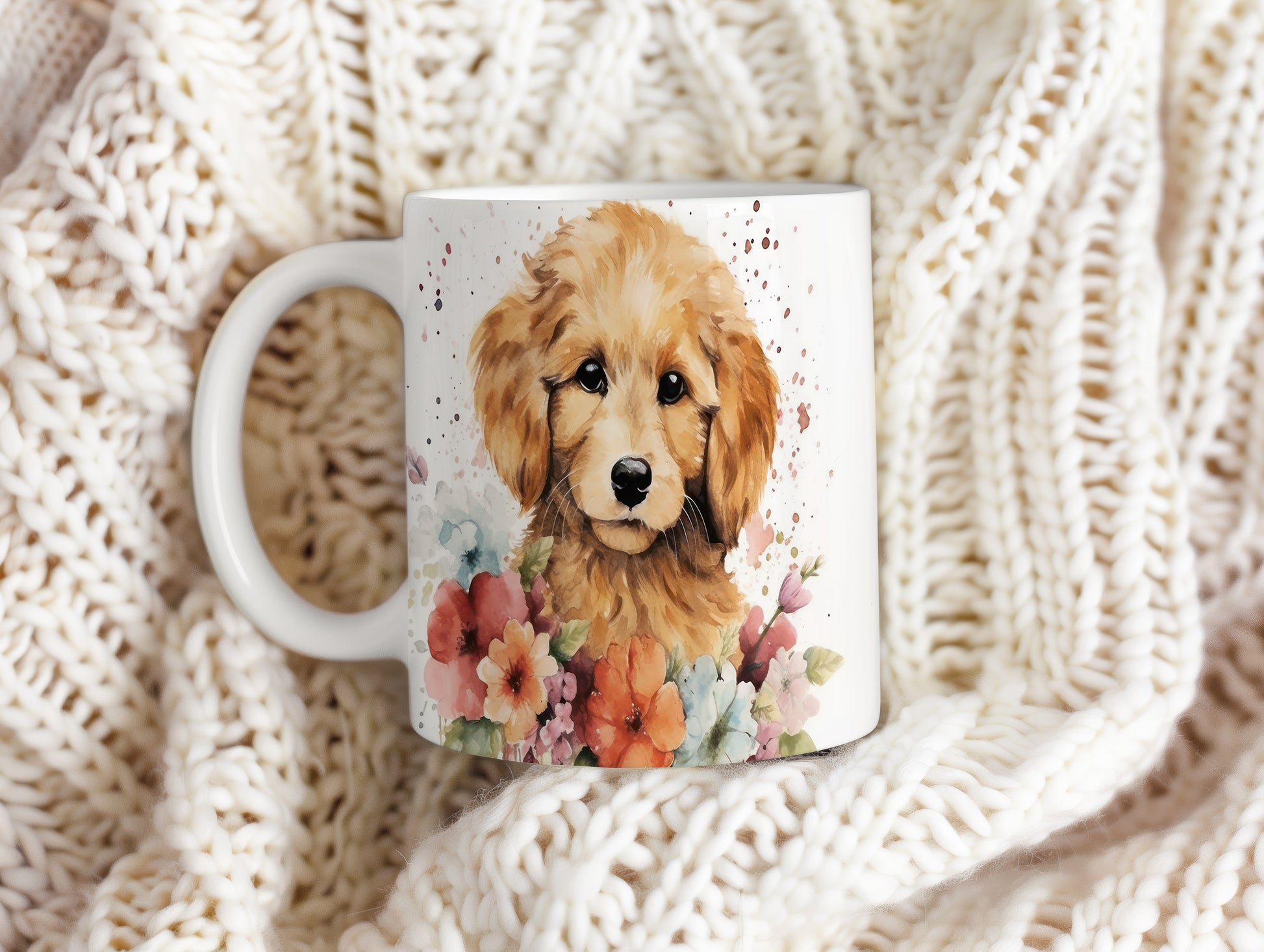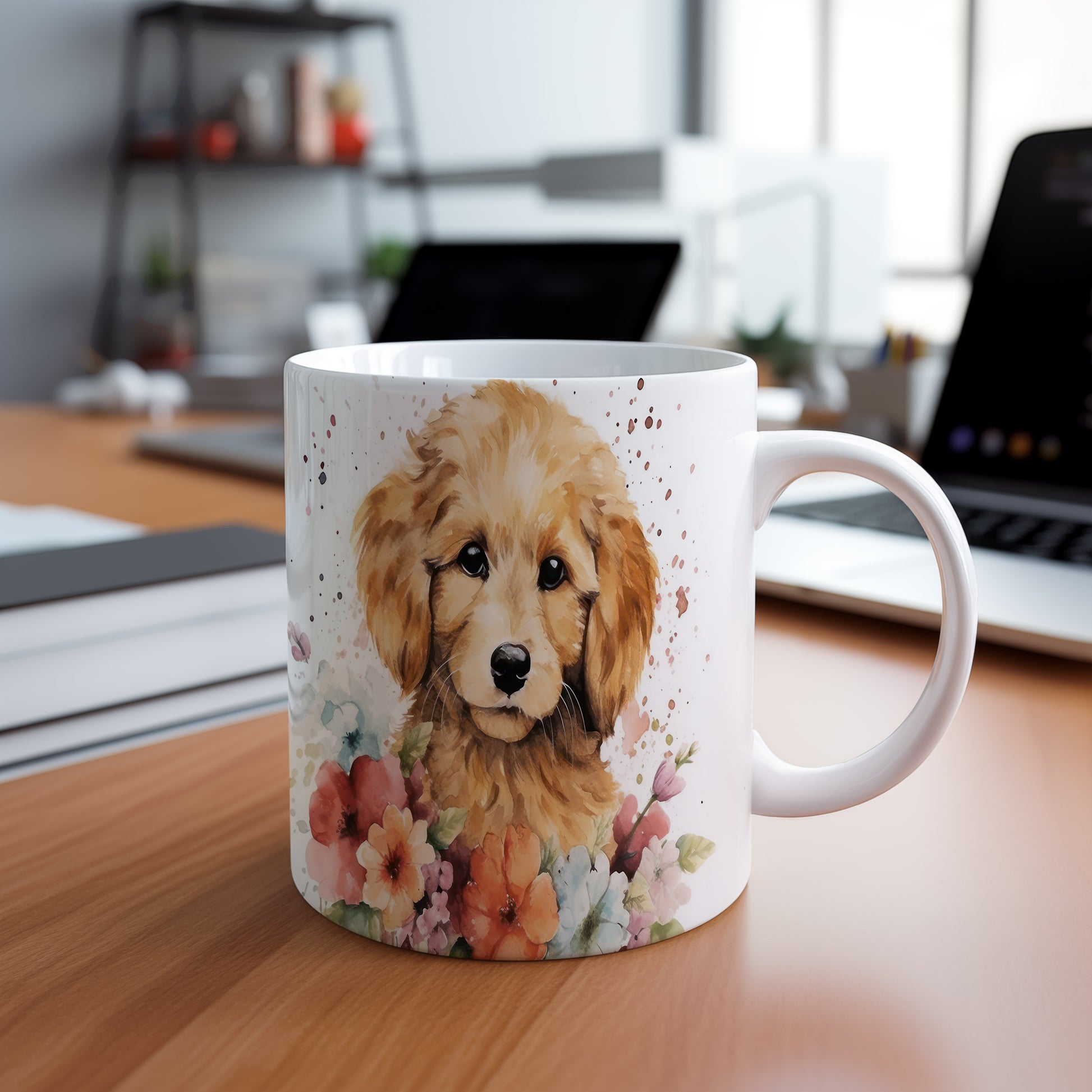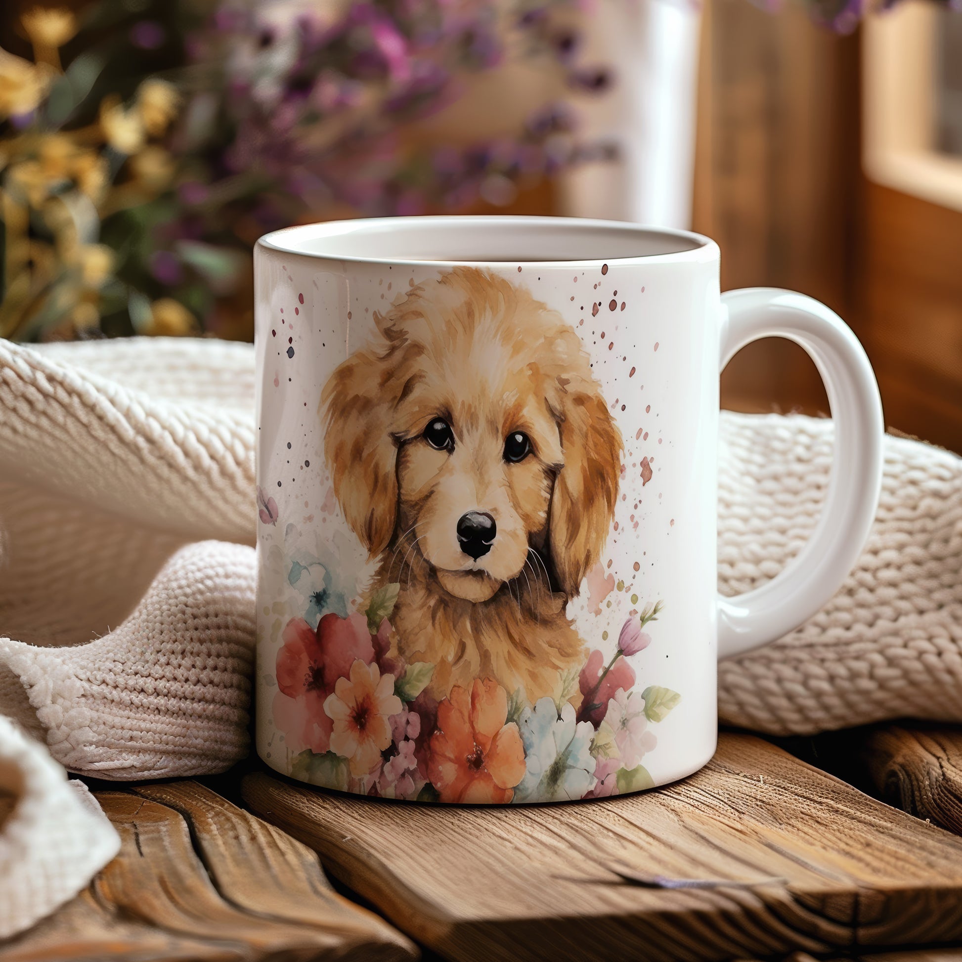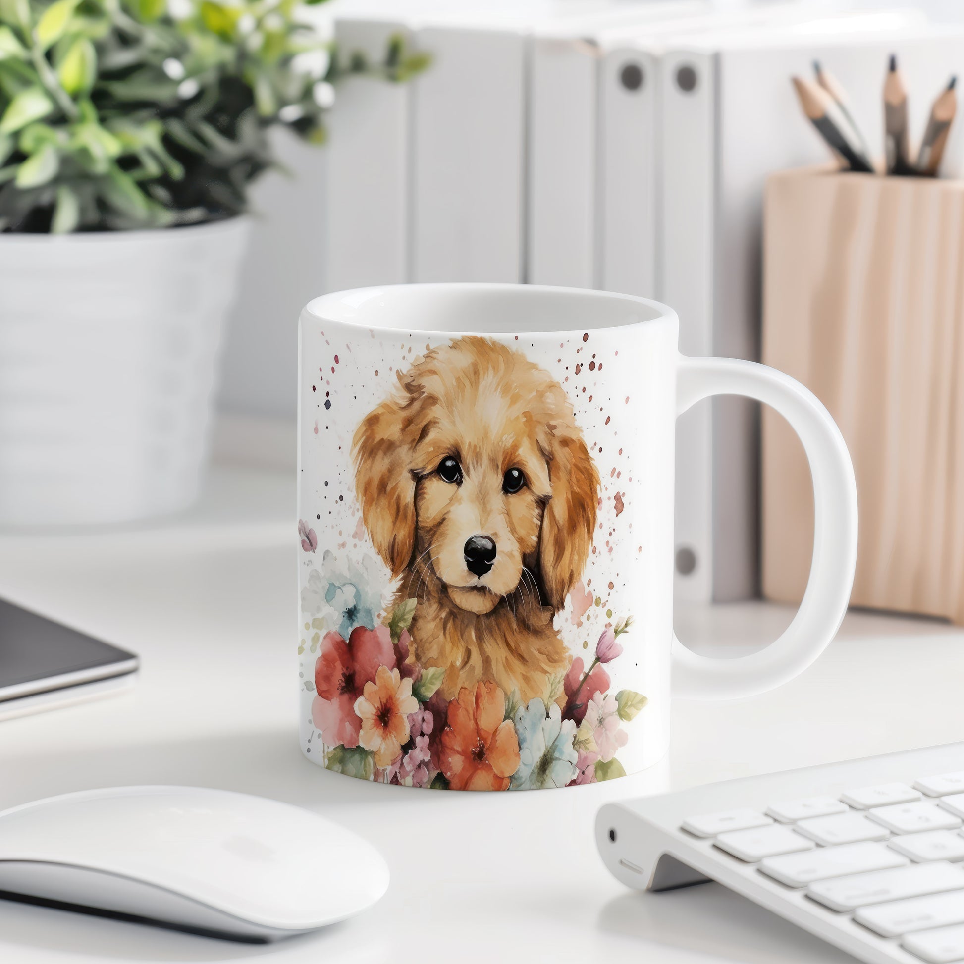 Hrnek s motivem štěněte a květin - ideální dárek pro milovníky psů – krásný design