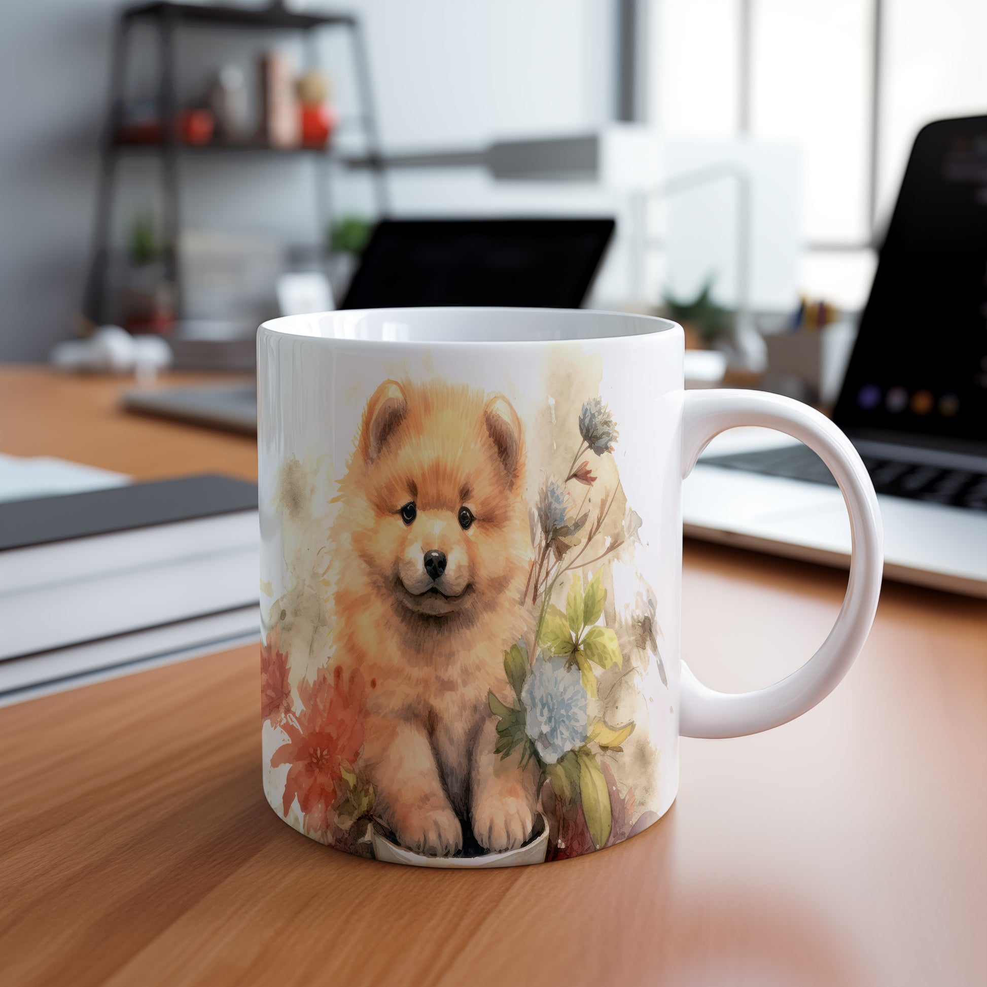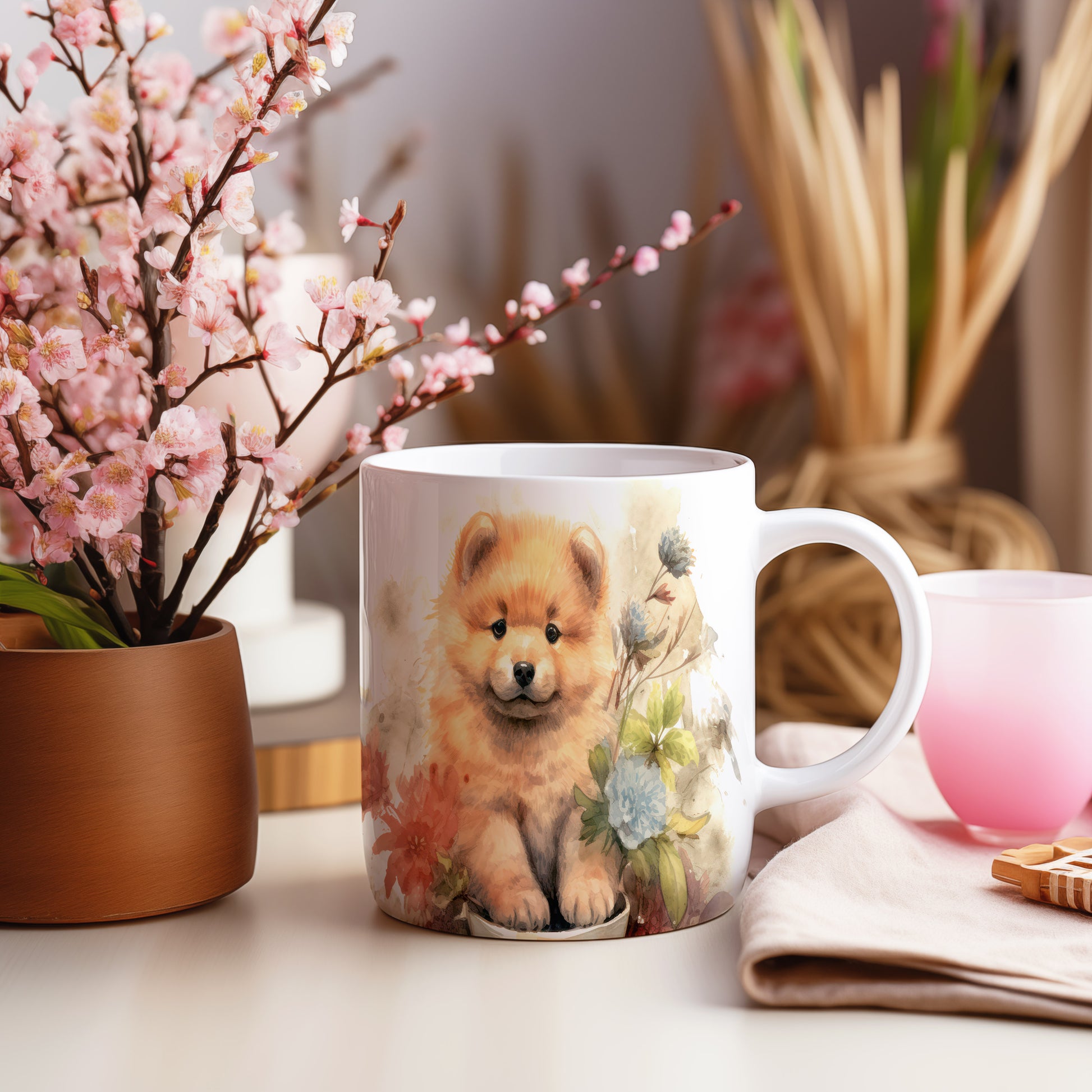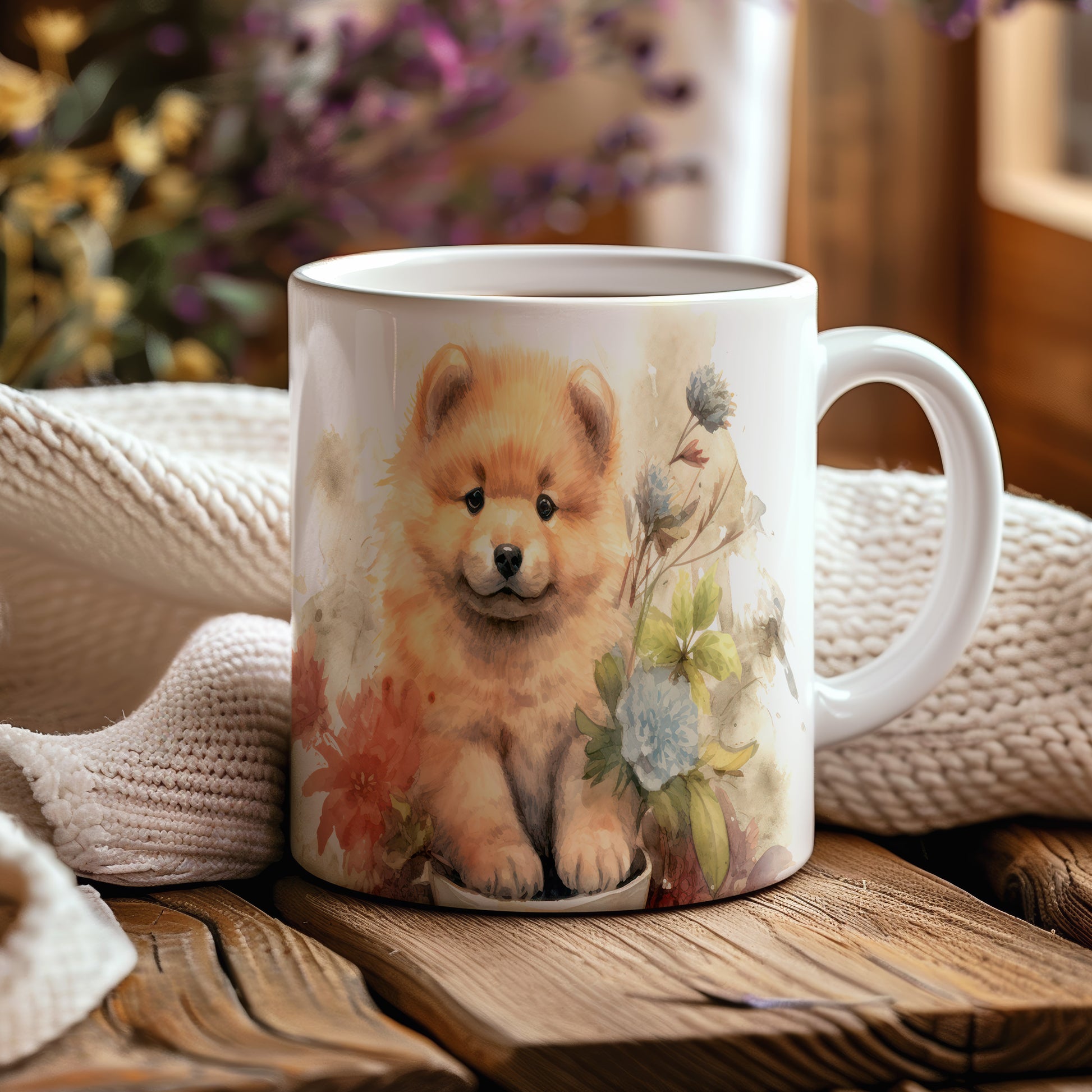 Tento hrníček s ilustrací štěněte špice a barevnými květinami dodá každému dni radost. Ideální pro milovníky psů a krásného designu.
