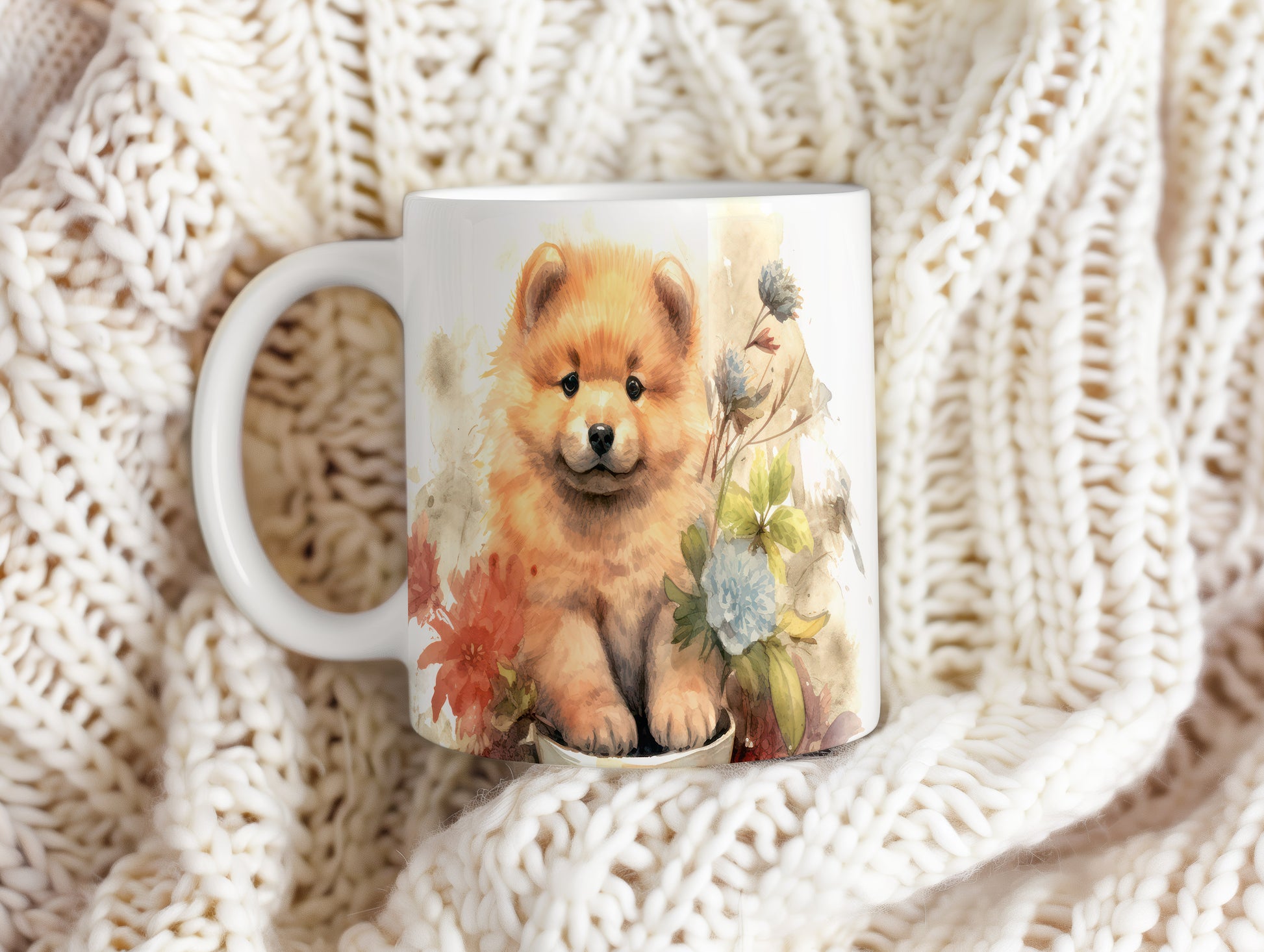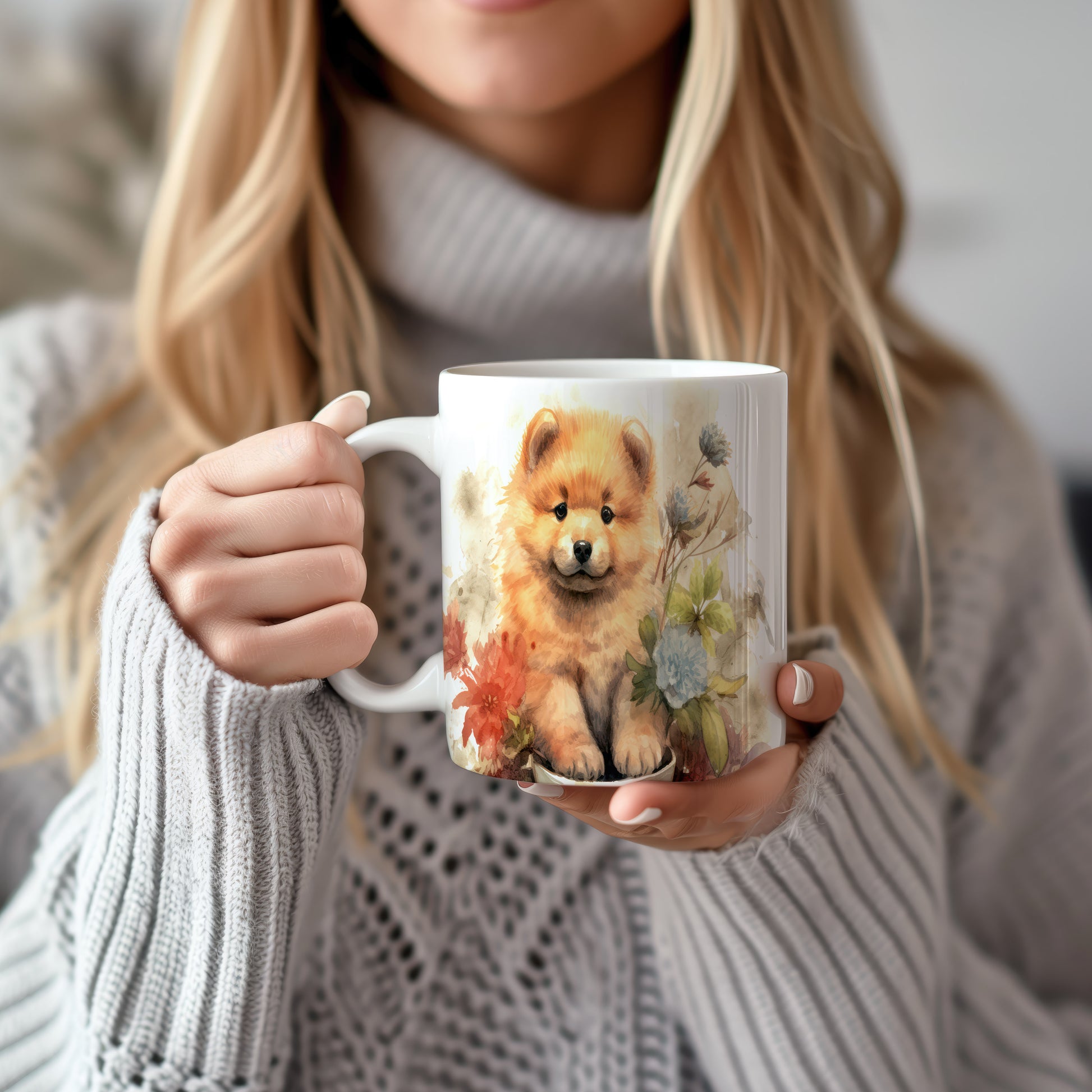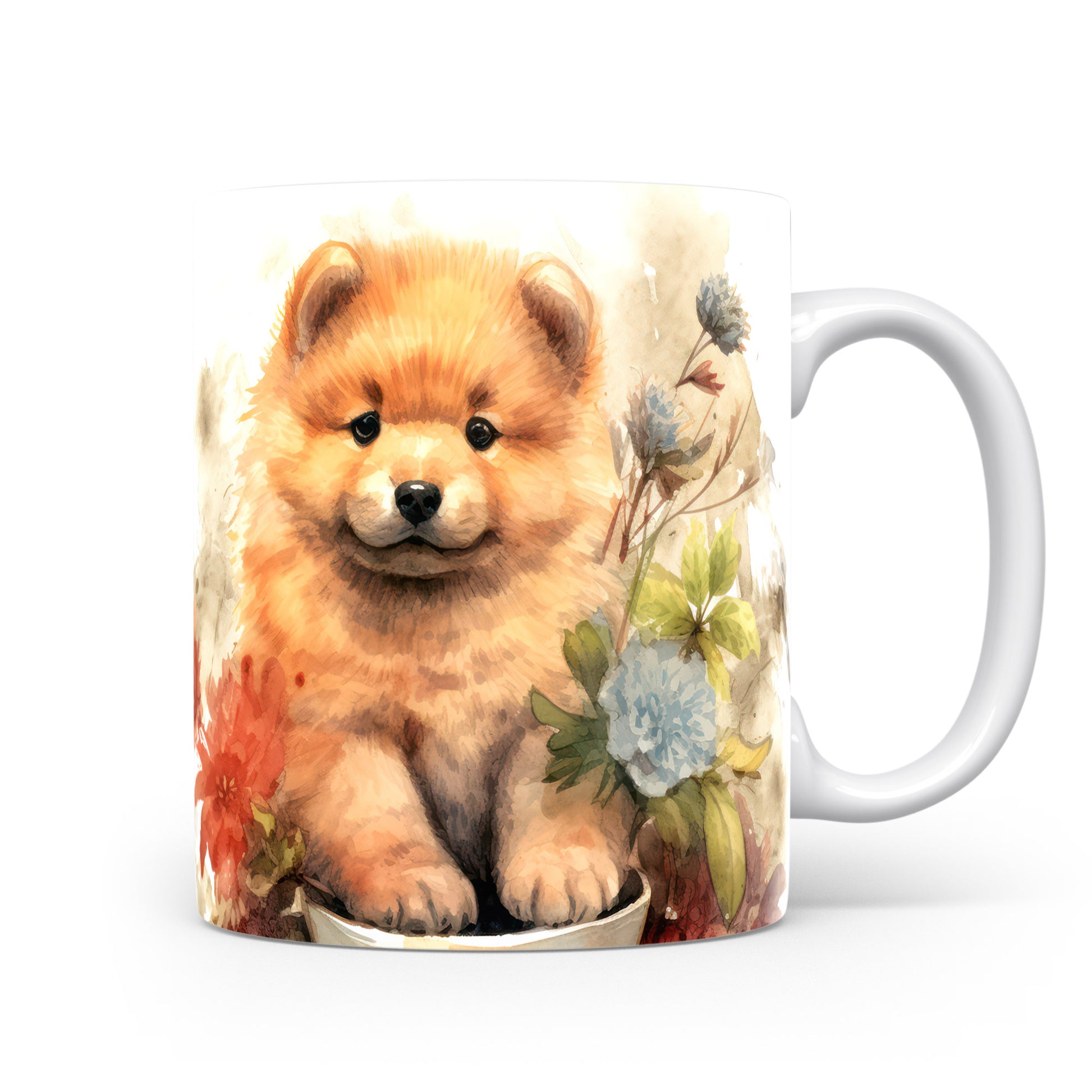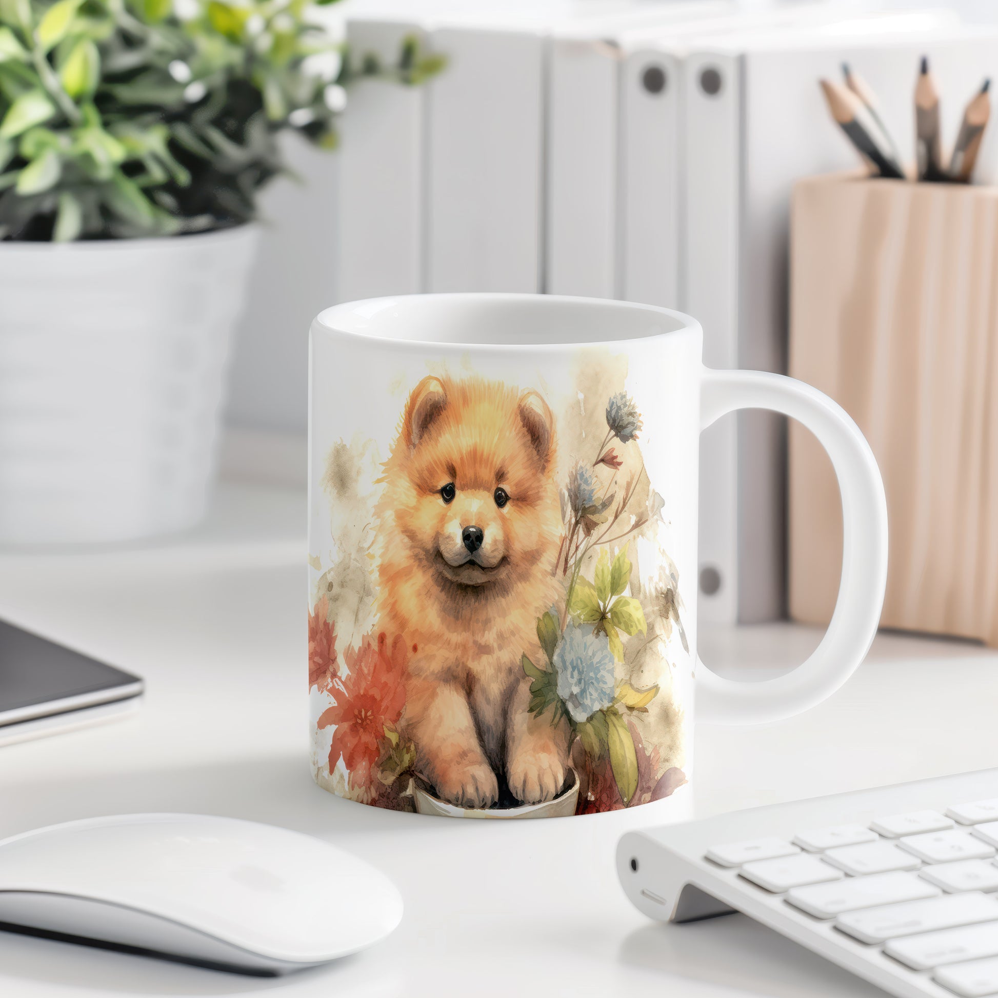 Tento hrníček s ilustrací štěněte špice a barevnými květinami dodá každému dni radost. Ideální pro milovníky psů a krásného designu.