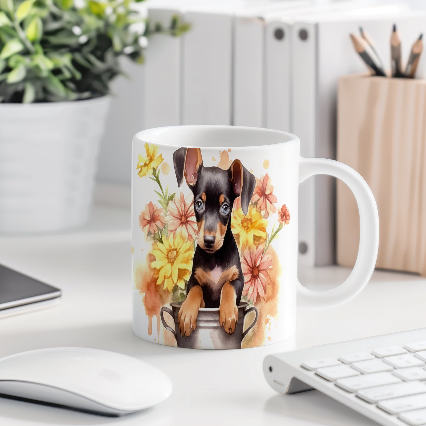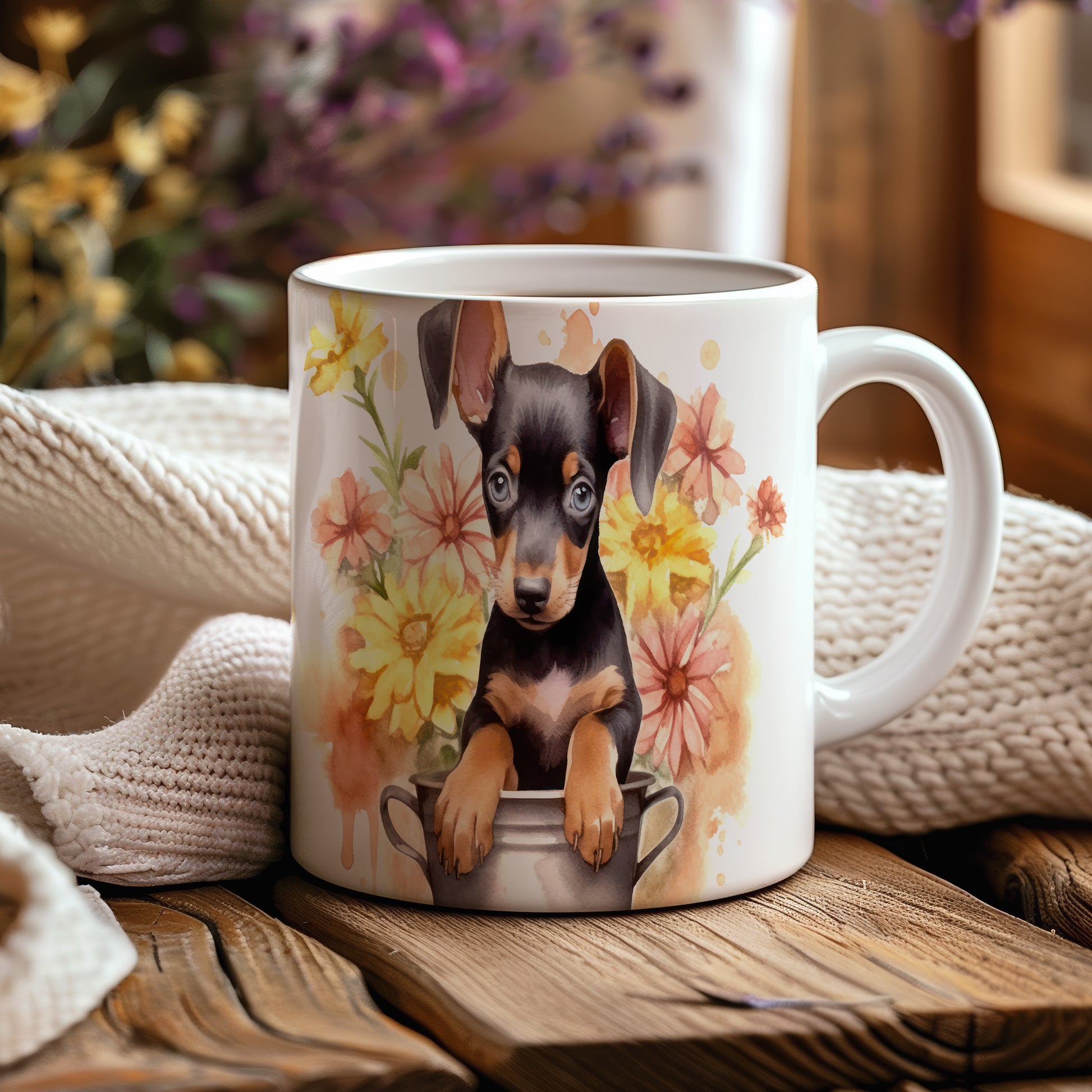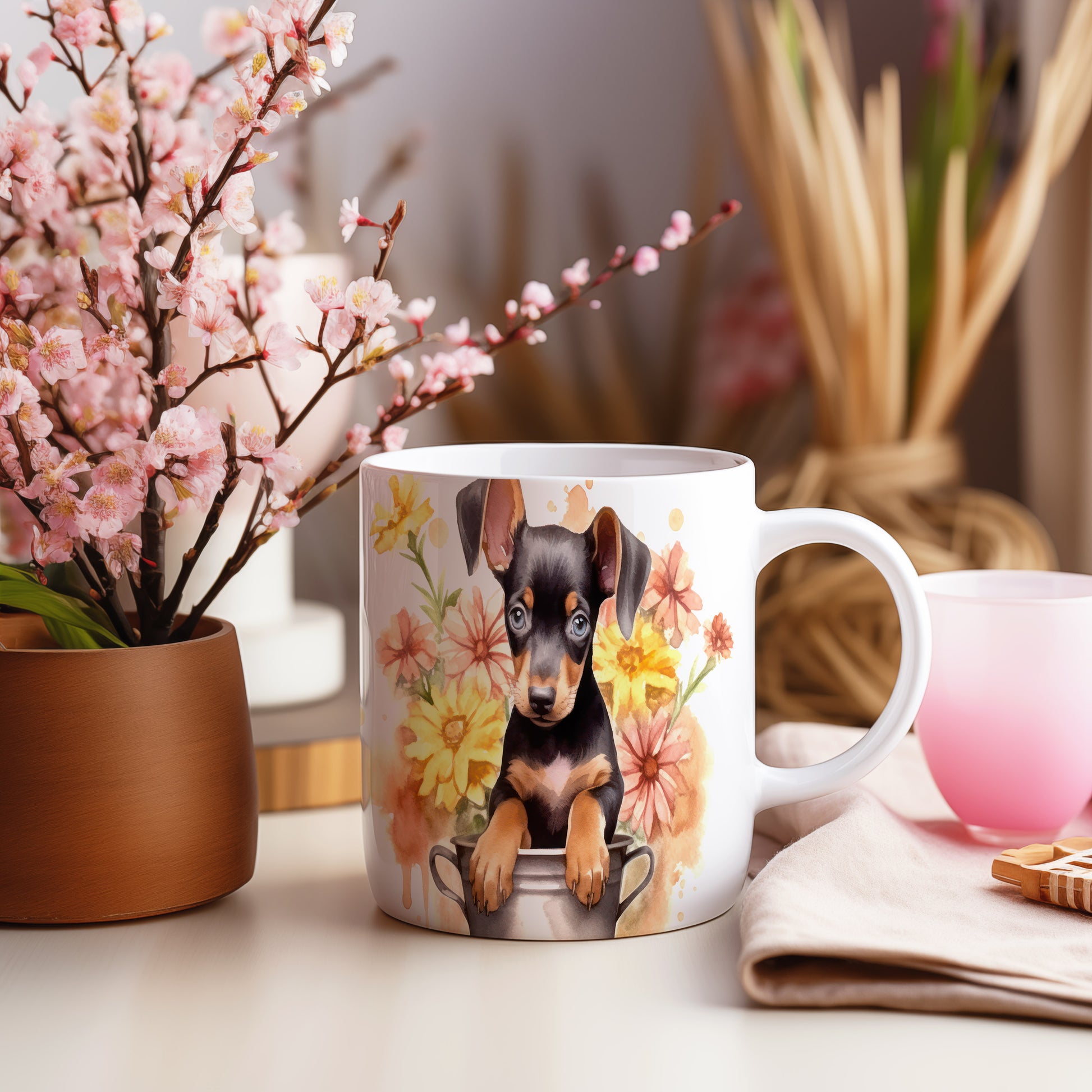 Tento hrnek s motivem štěňátka a barevných květin je ideální pro milovníky psů. Přidejte do svého dne trochu radosti a stylu s tímto jedinečným kouskem.