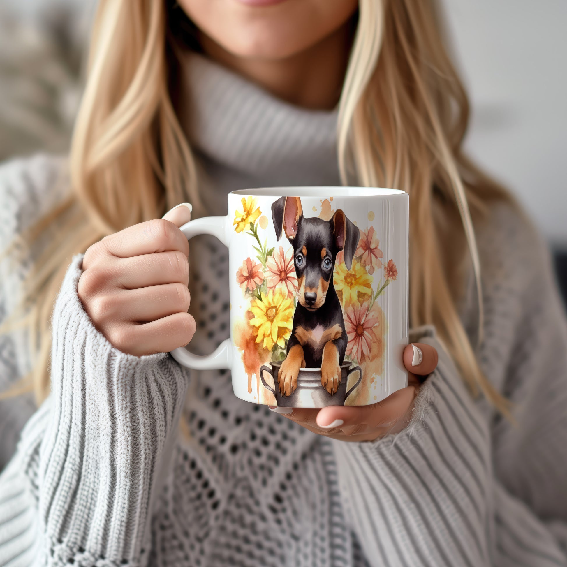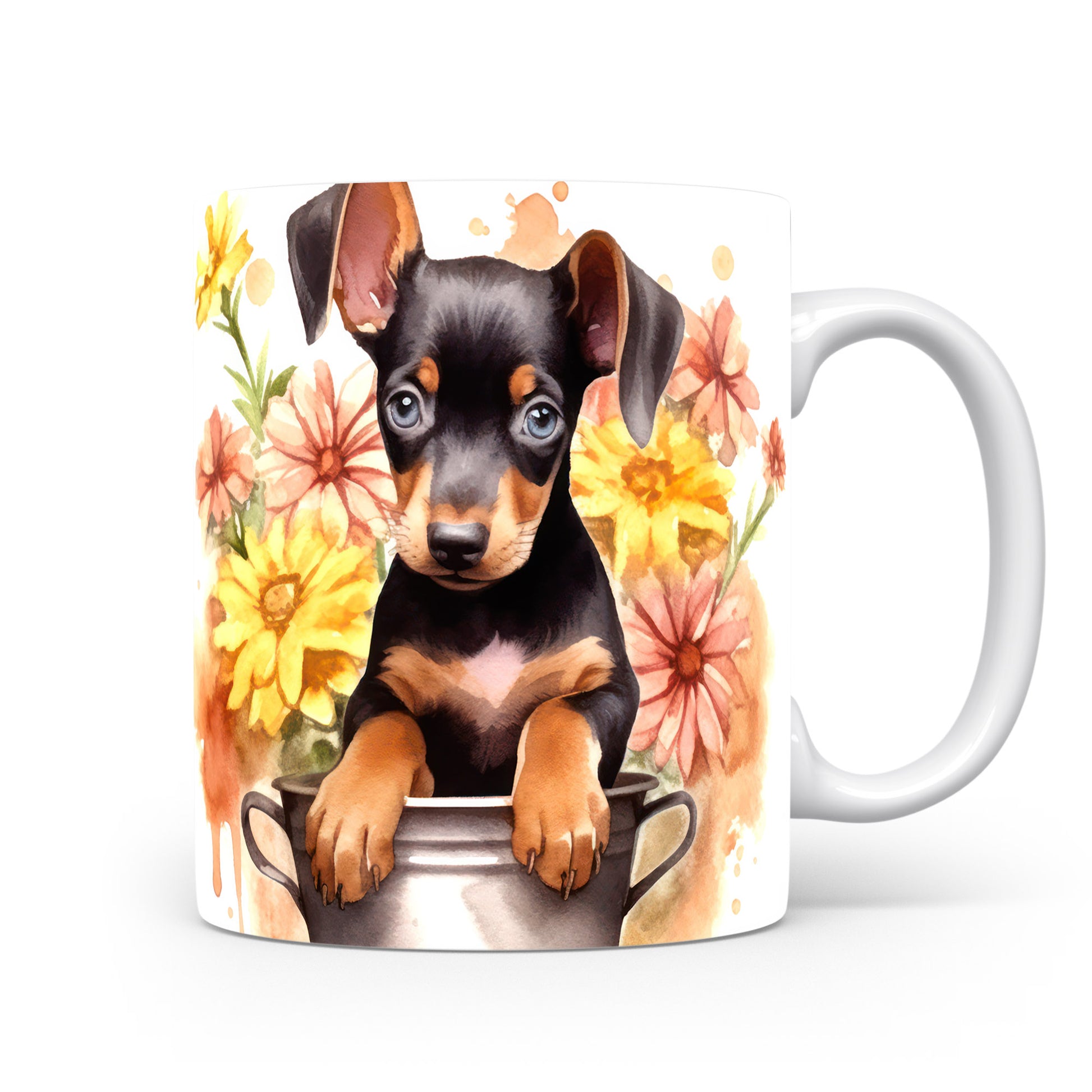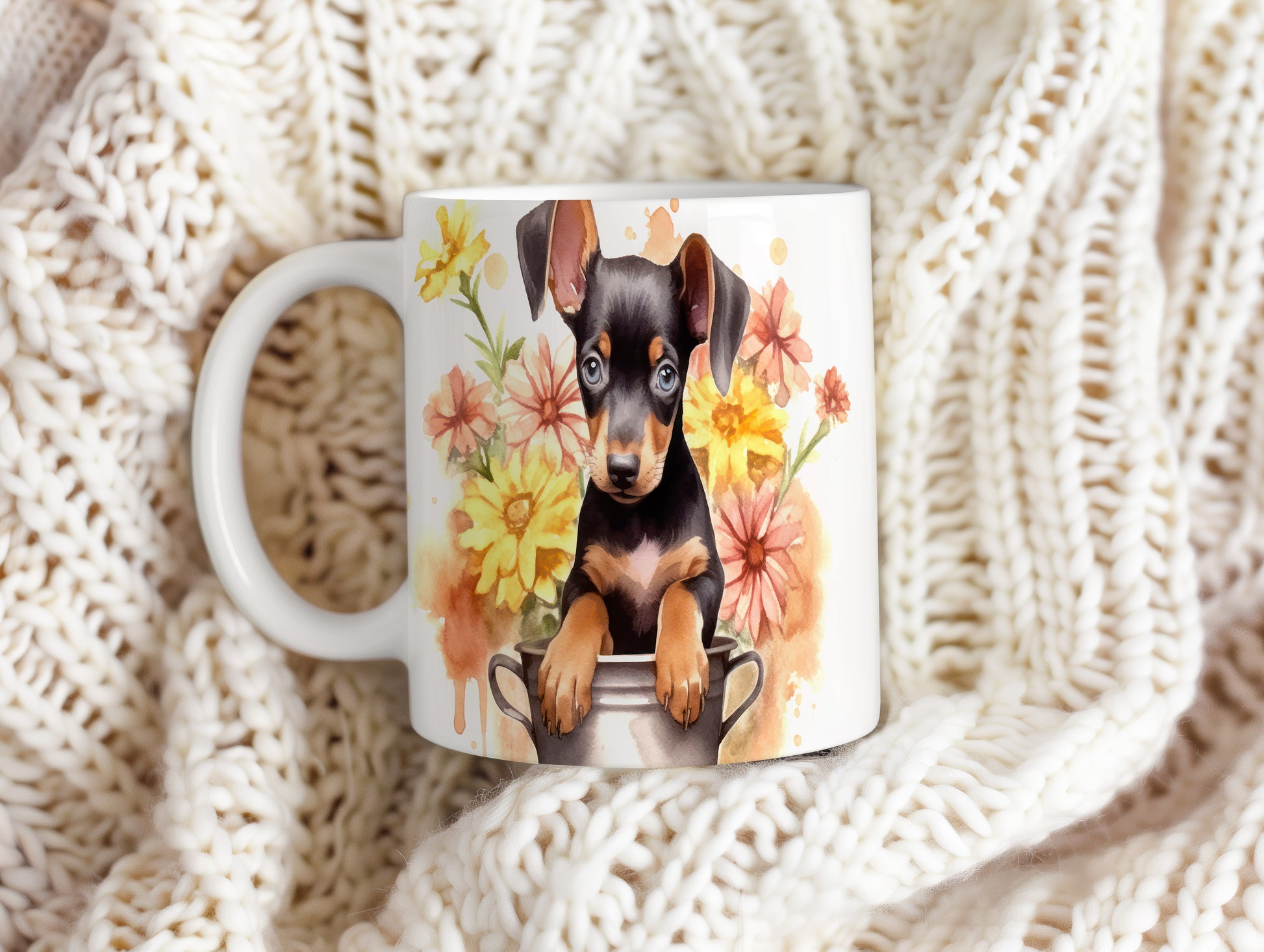 Tento hrnek s motivem štěňátka a barevných květin je ideální pro milovníky psů. Přidejte do svého dne trochu radosti a stylu s tímto jedinečným kouskem.