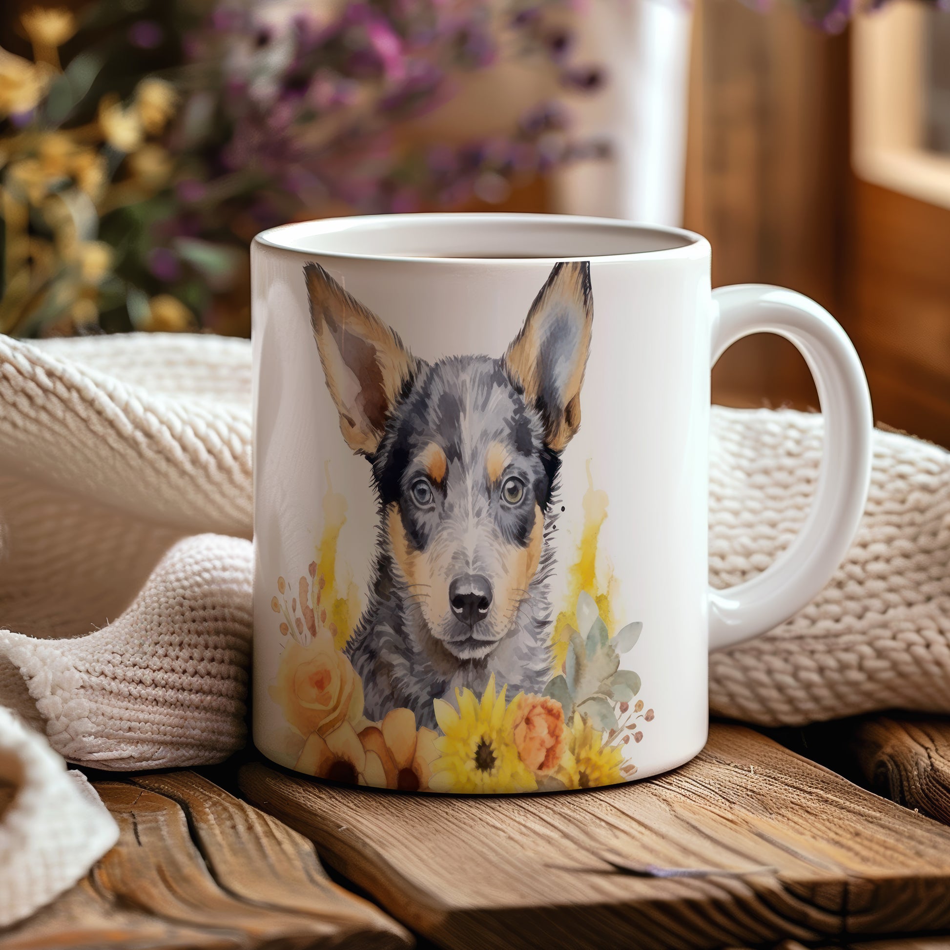 Tento hrnek s motivem australského ovčáka a květin je ideální pro milovníky psů. Přidejte do svého dne kousek radosti s tímto stylovým kouskem.