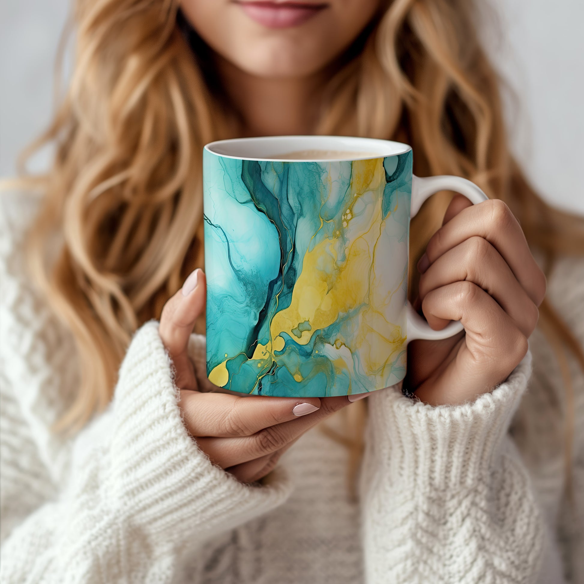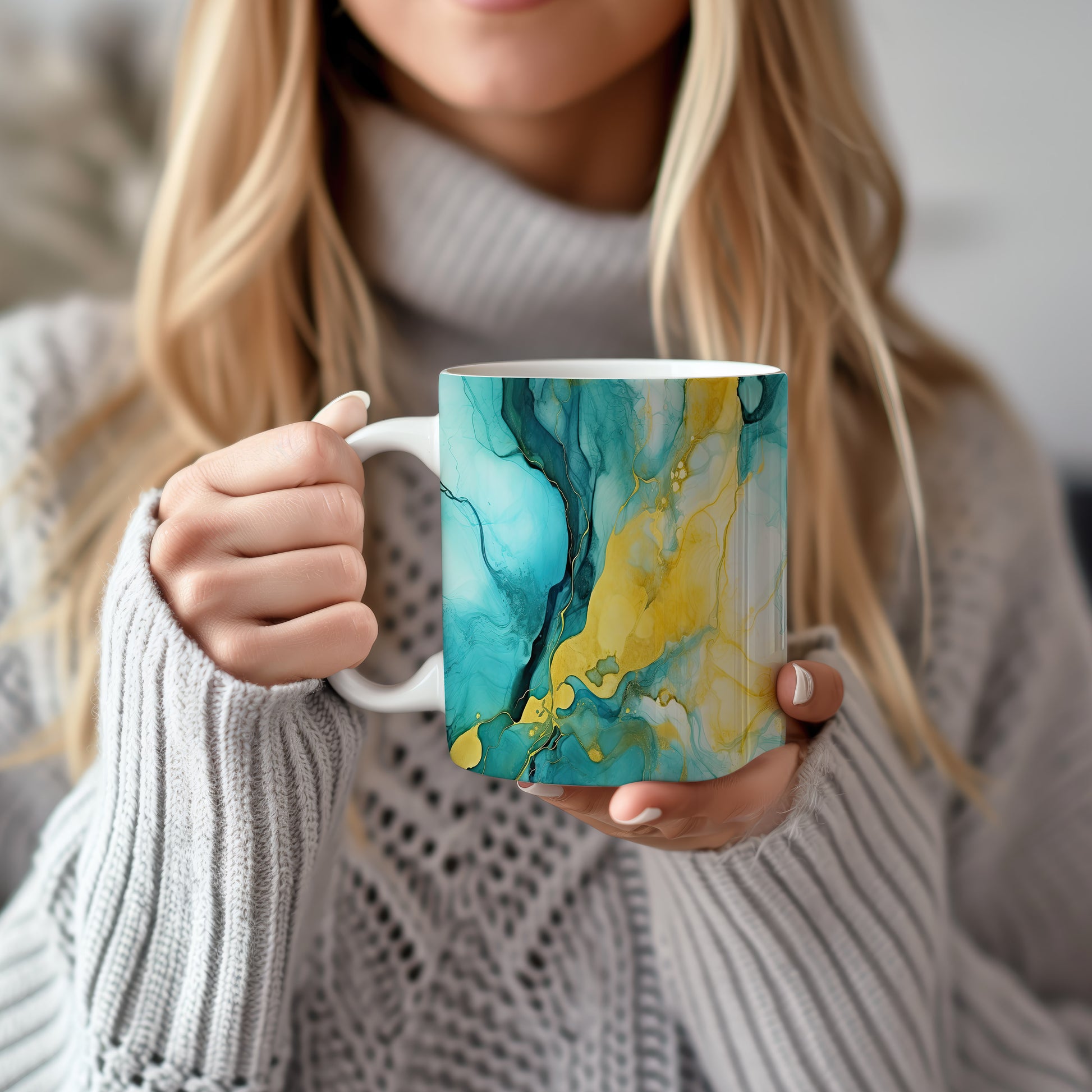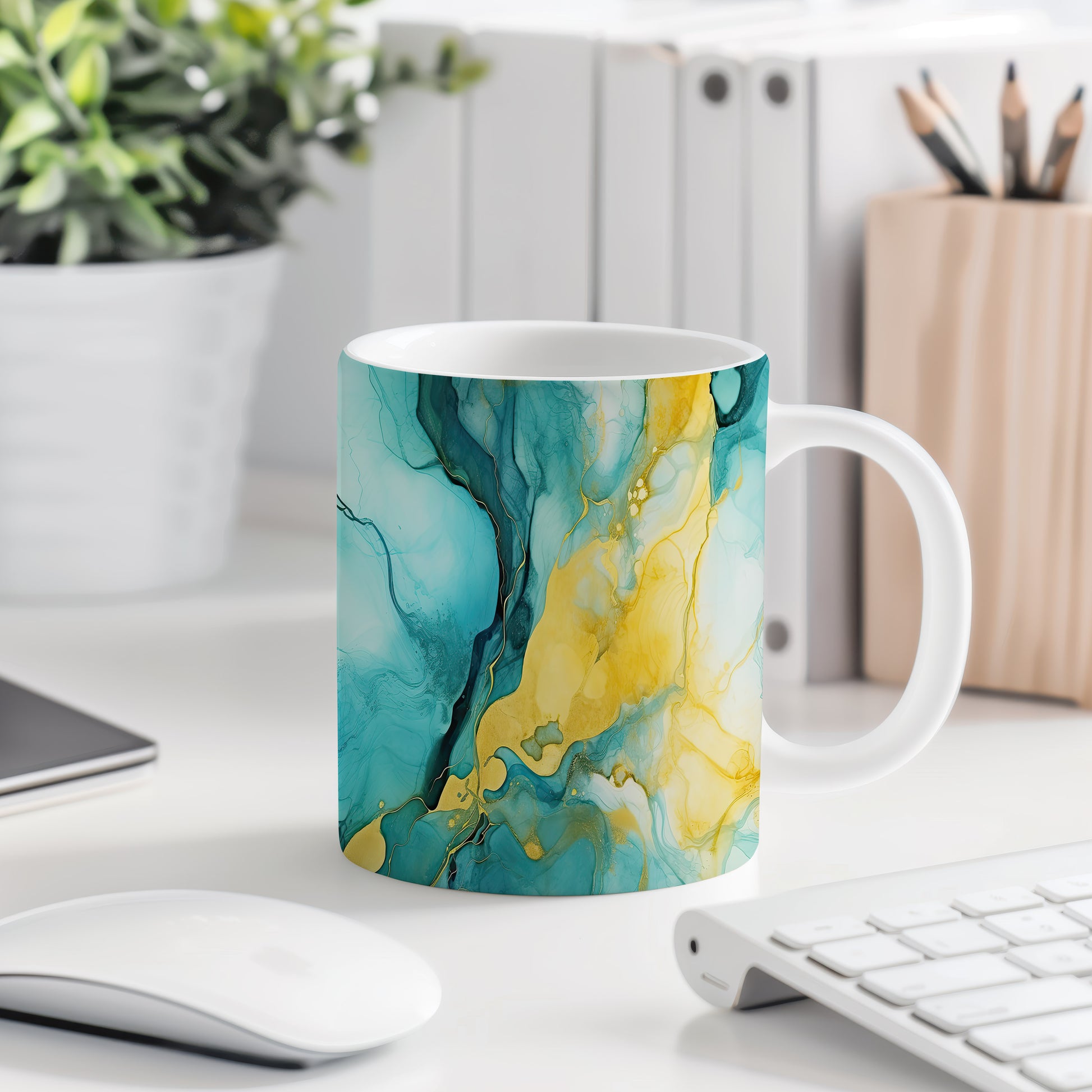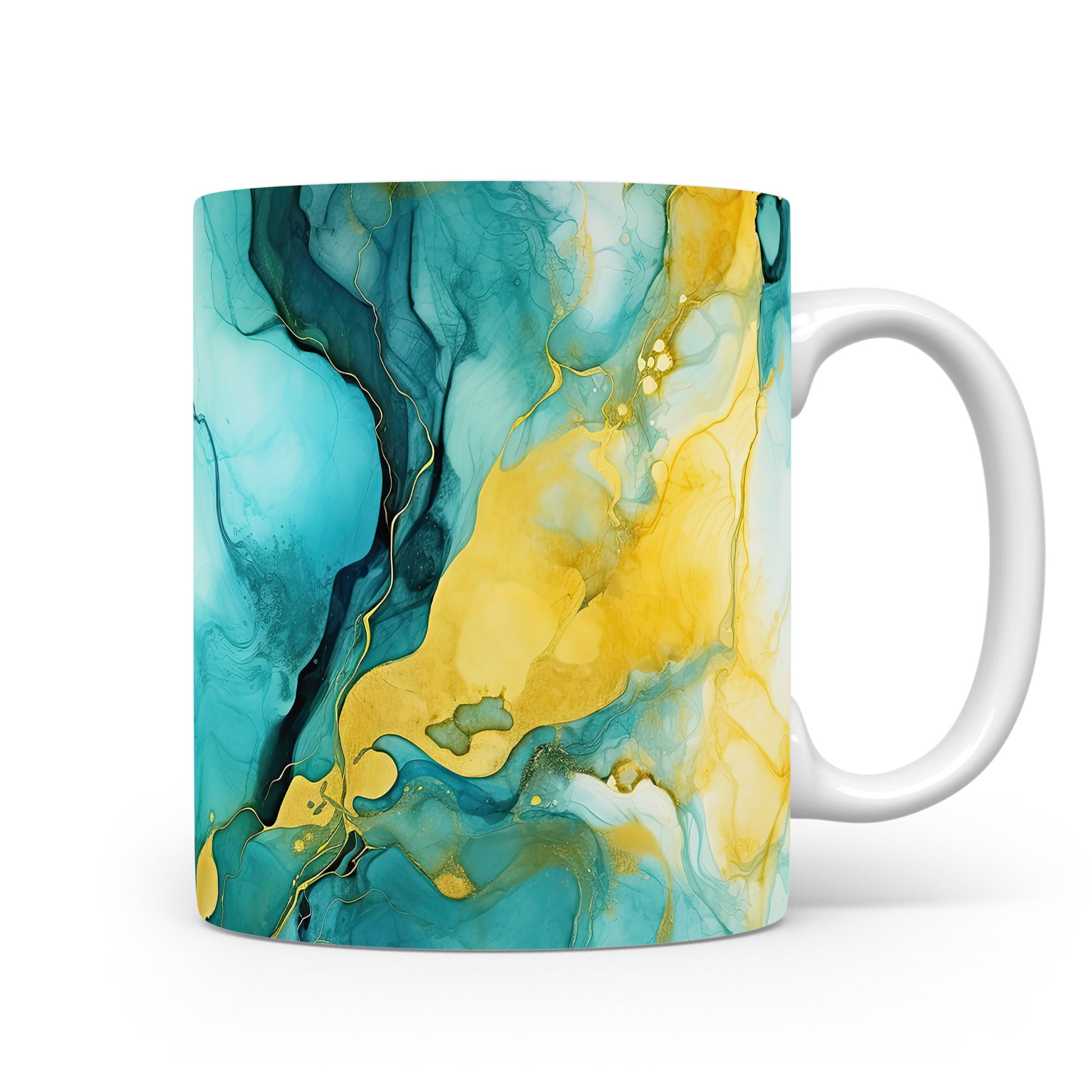 Elegantní hrnek s abstraktním modro-zlatým designem (ostatní #2)