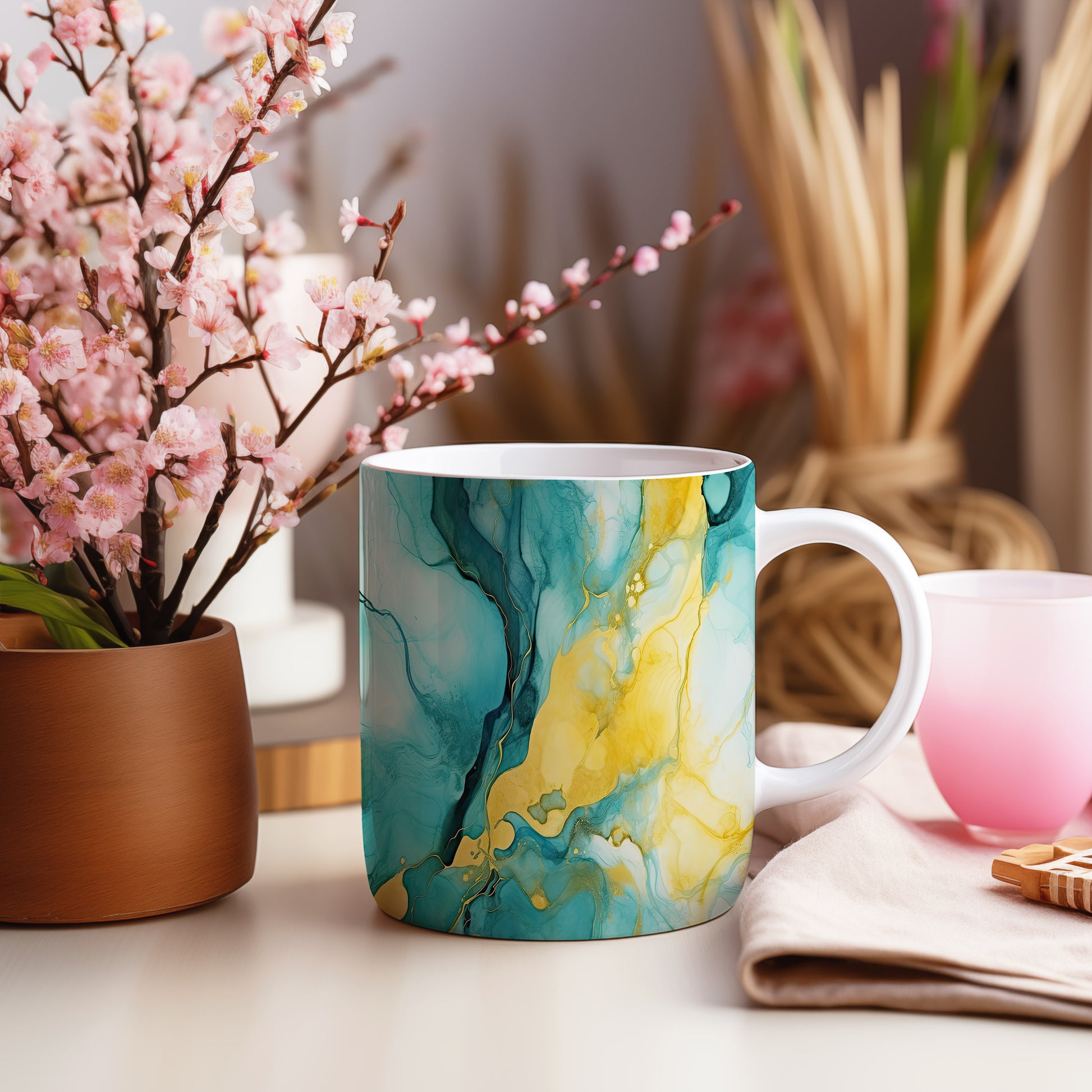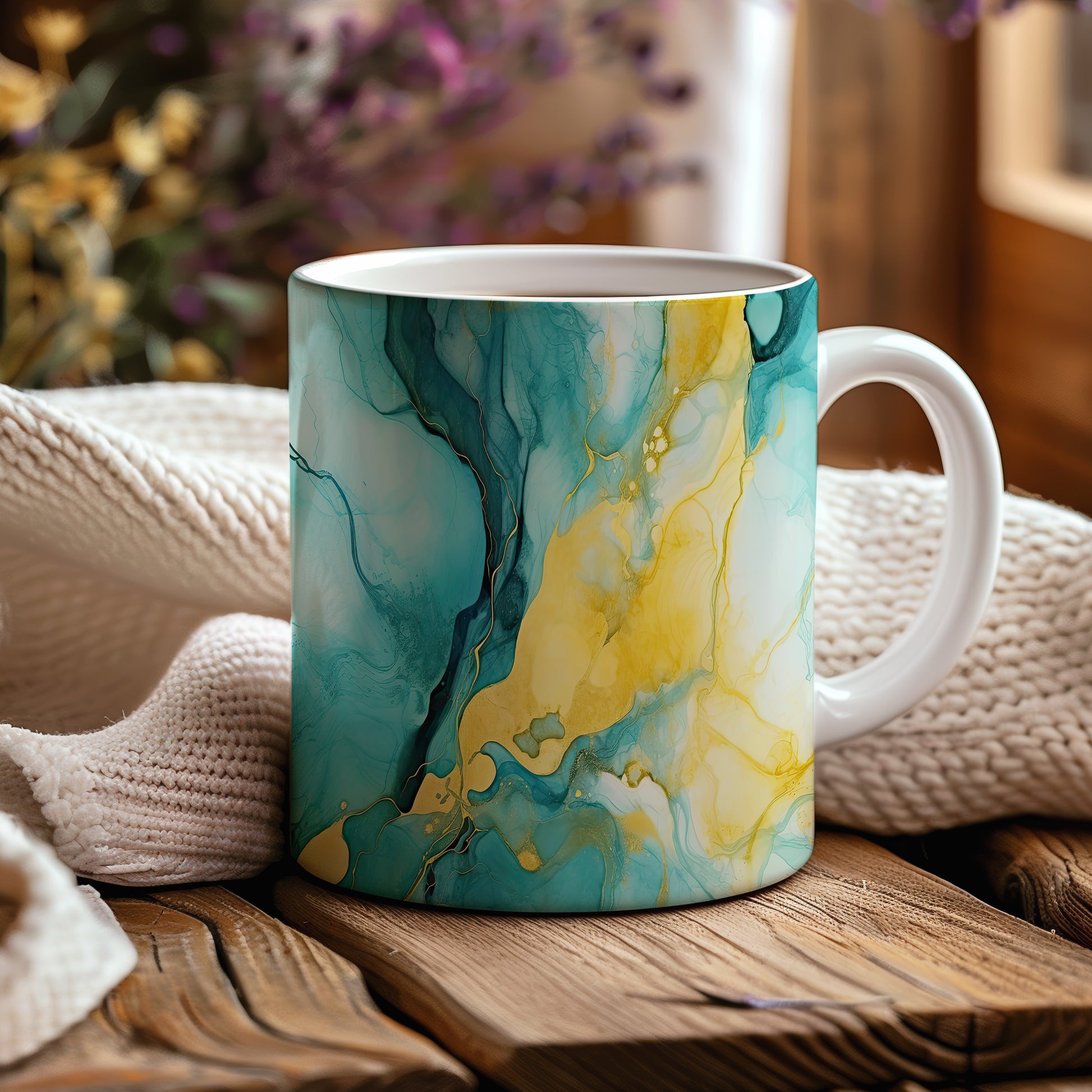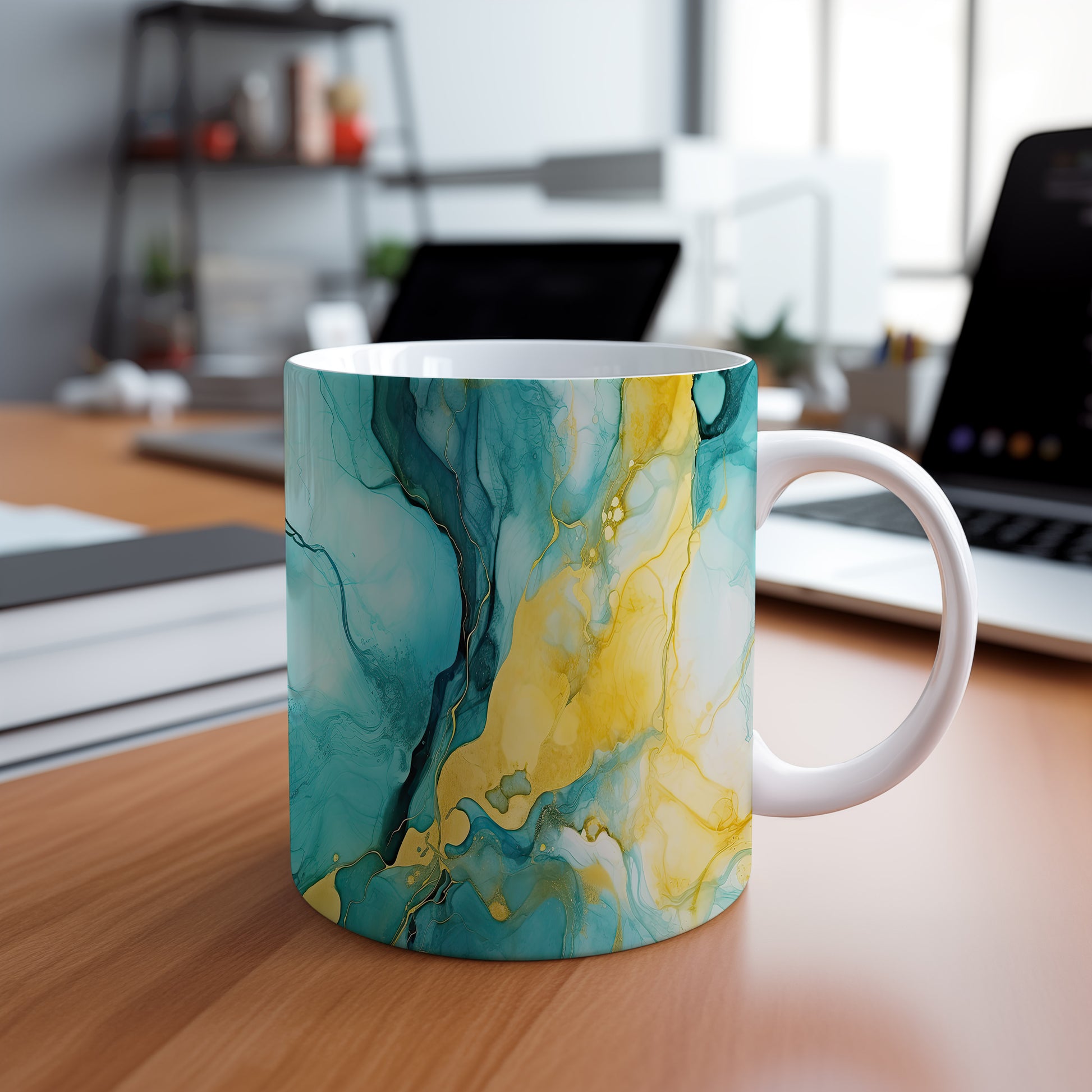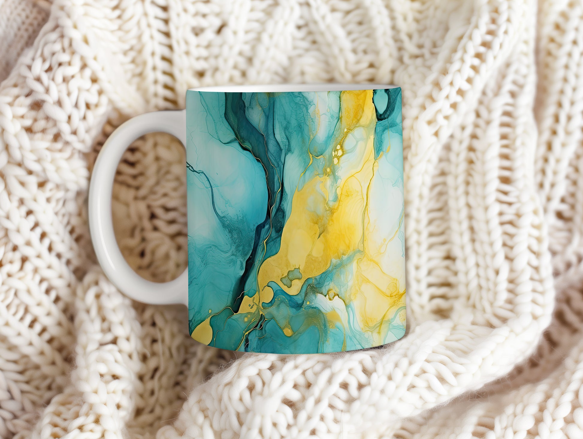 Elegantní hrnek s abstraktním modro-zlatým designem (ostatní #2)