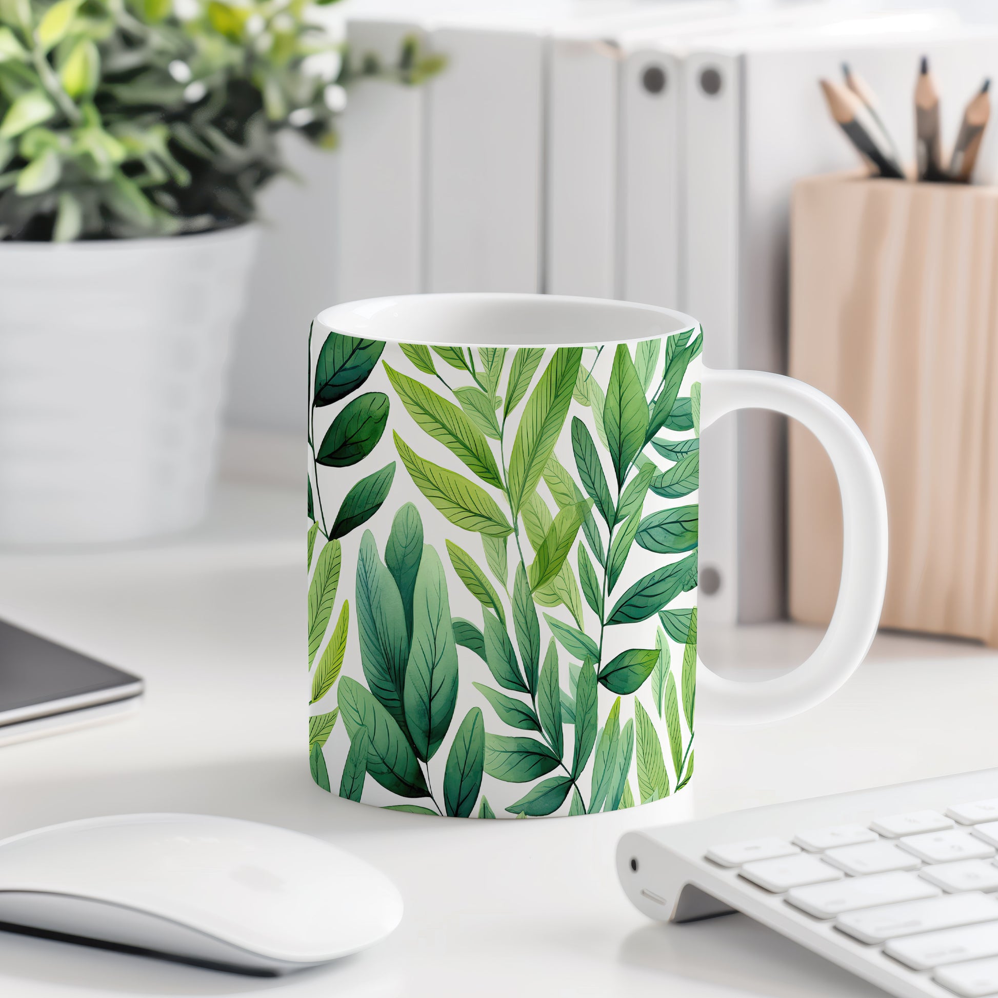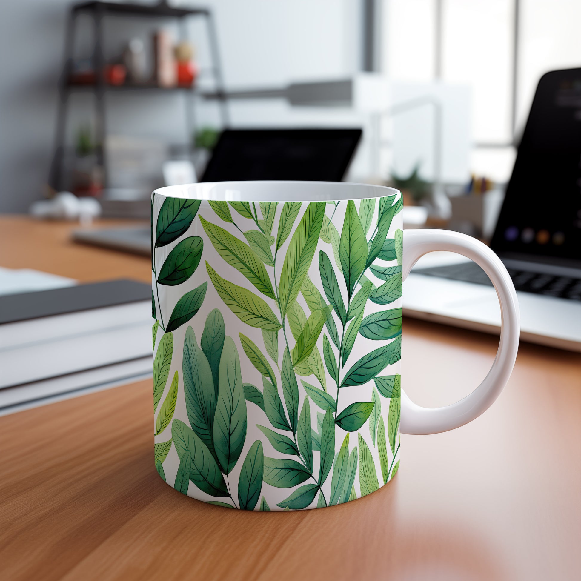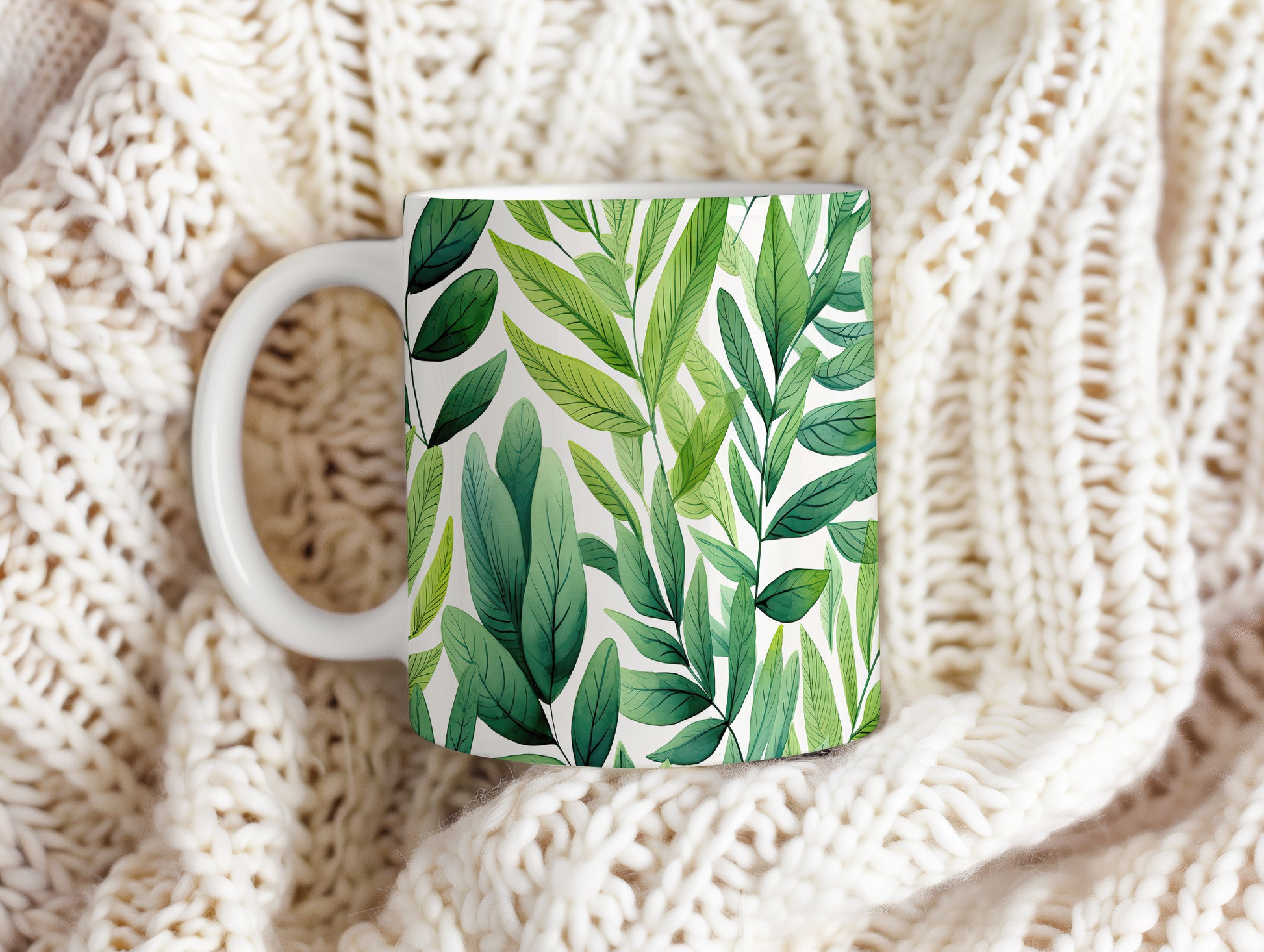 Hrnek s motivem zelených listů pro milovníky přírody
