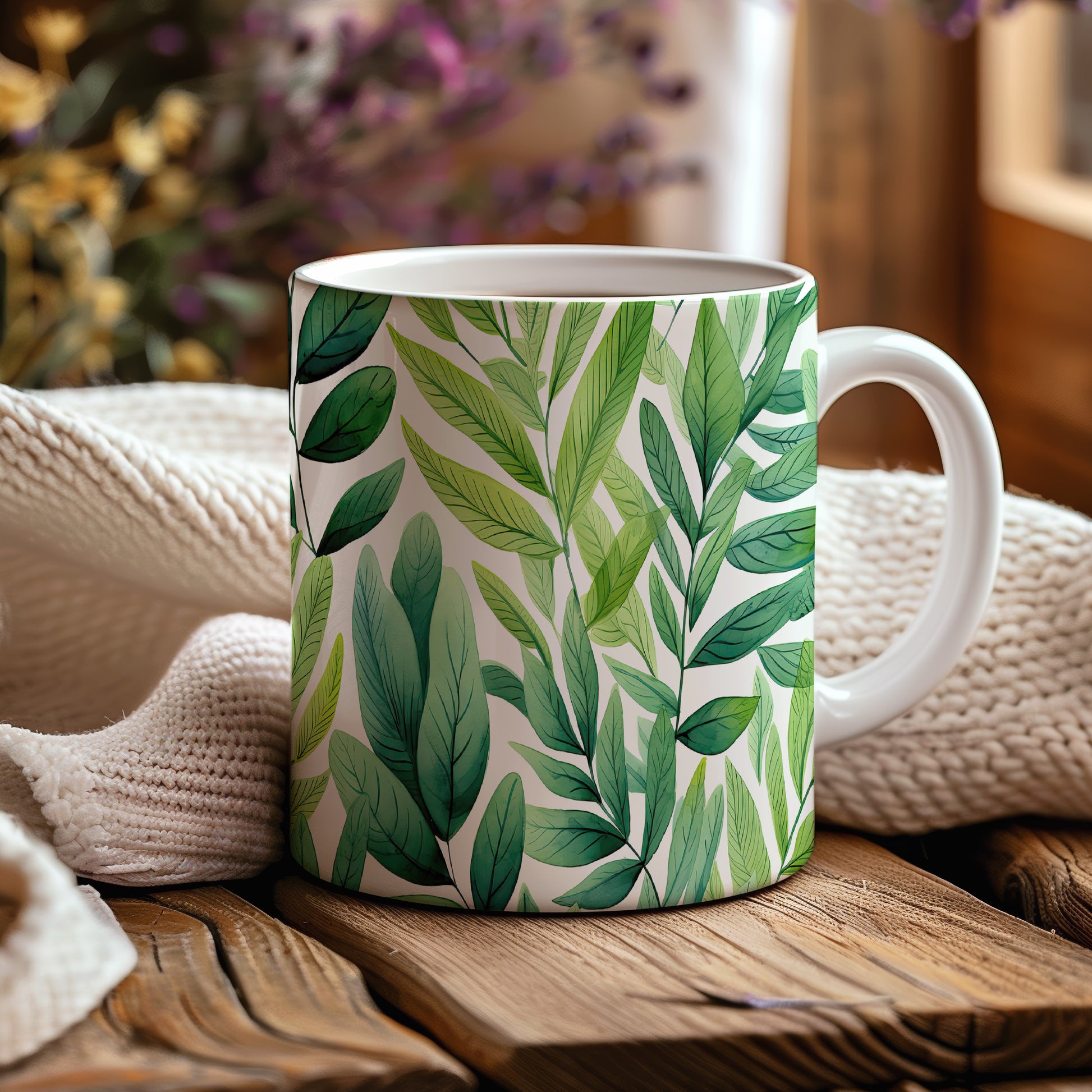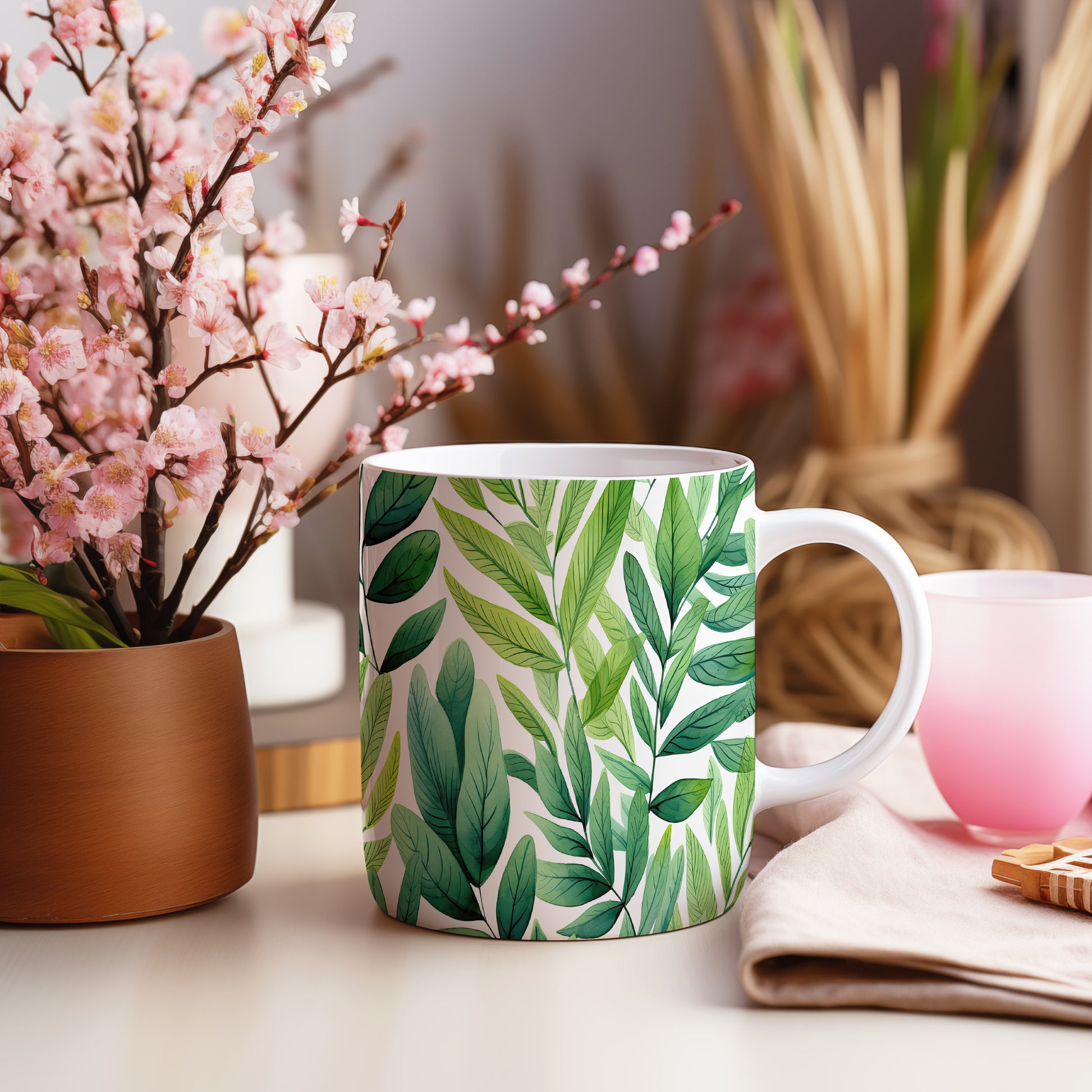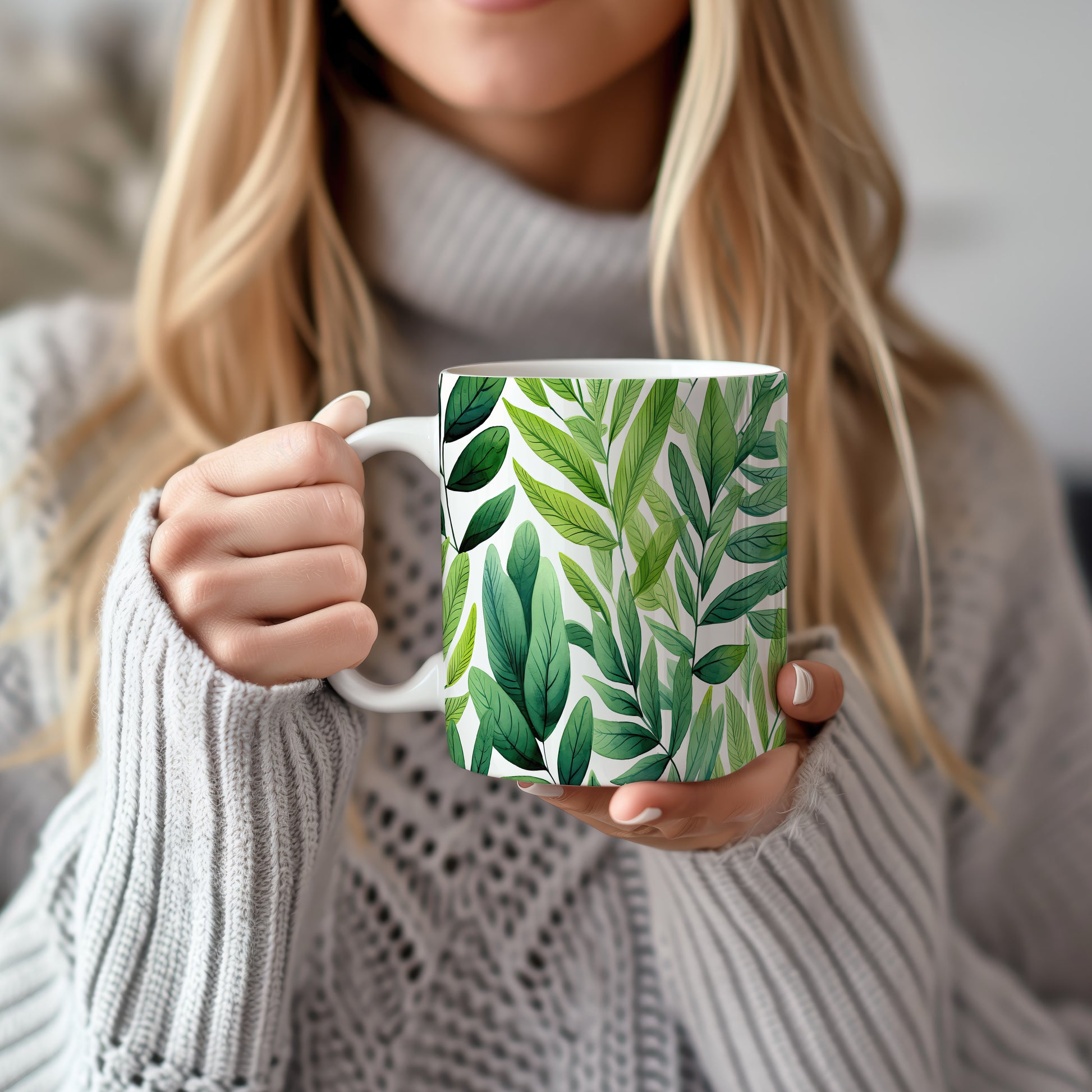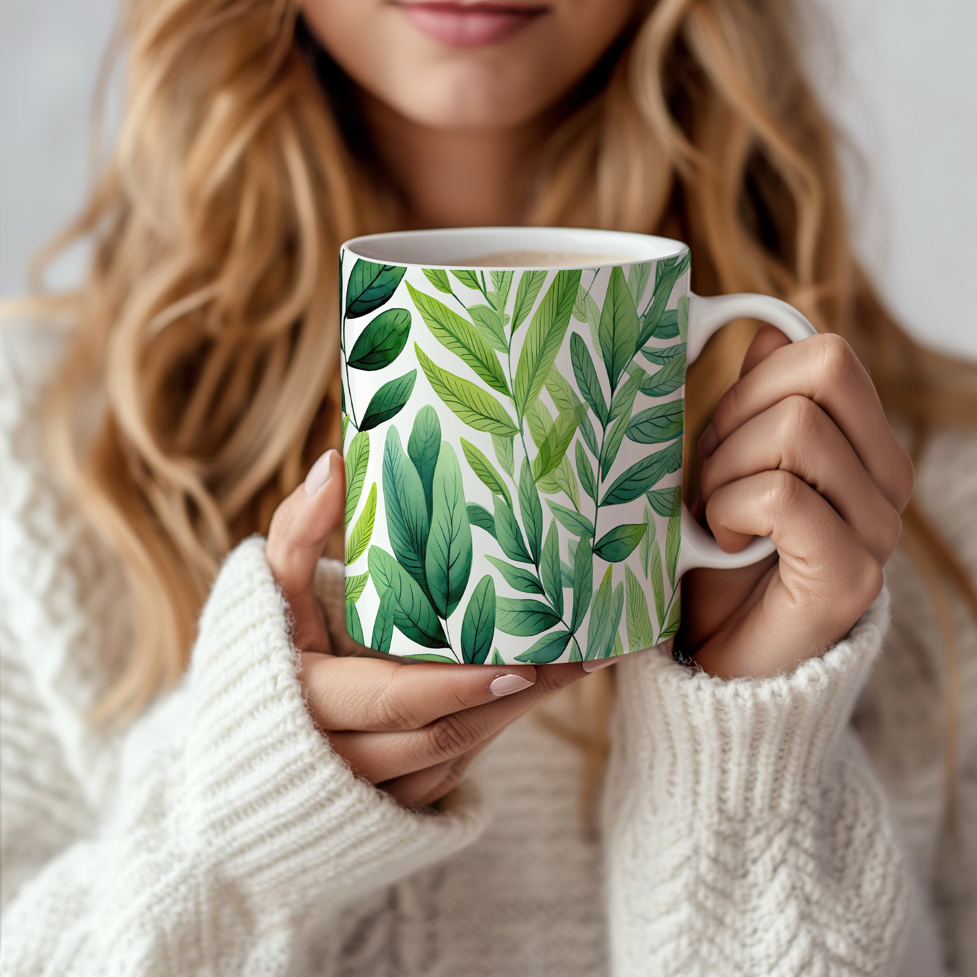 Hrnek s motivem zelených listů pro milovníky přírody