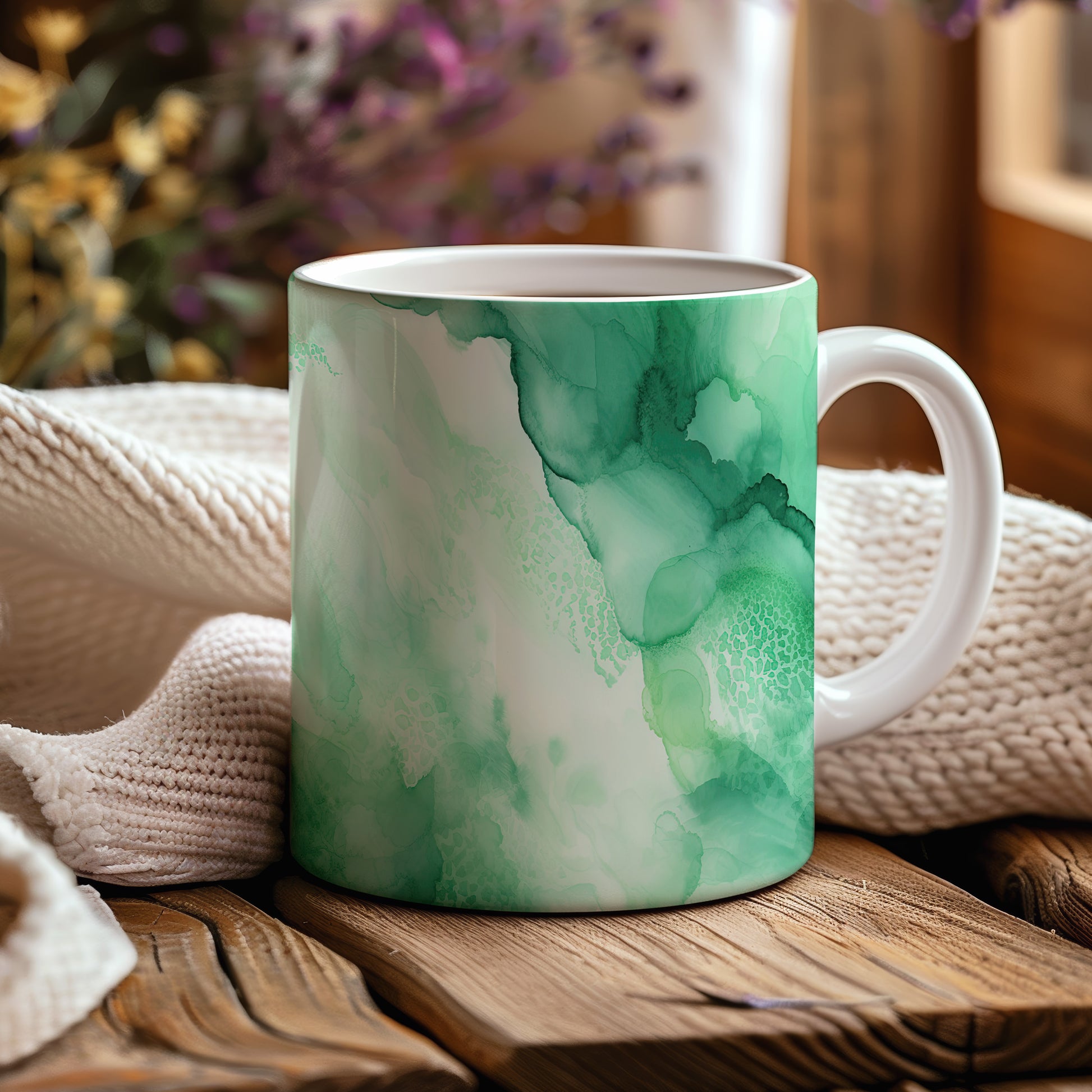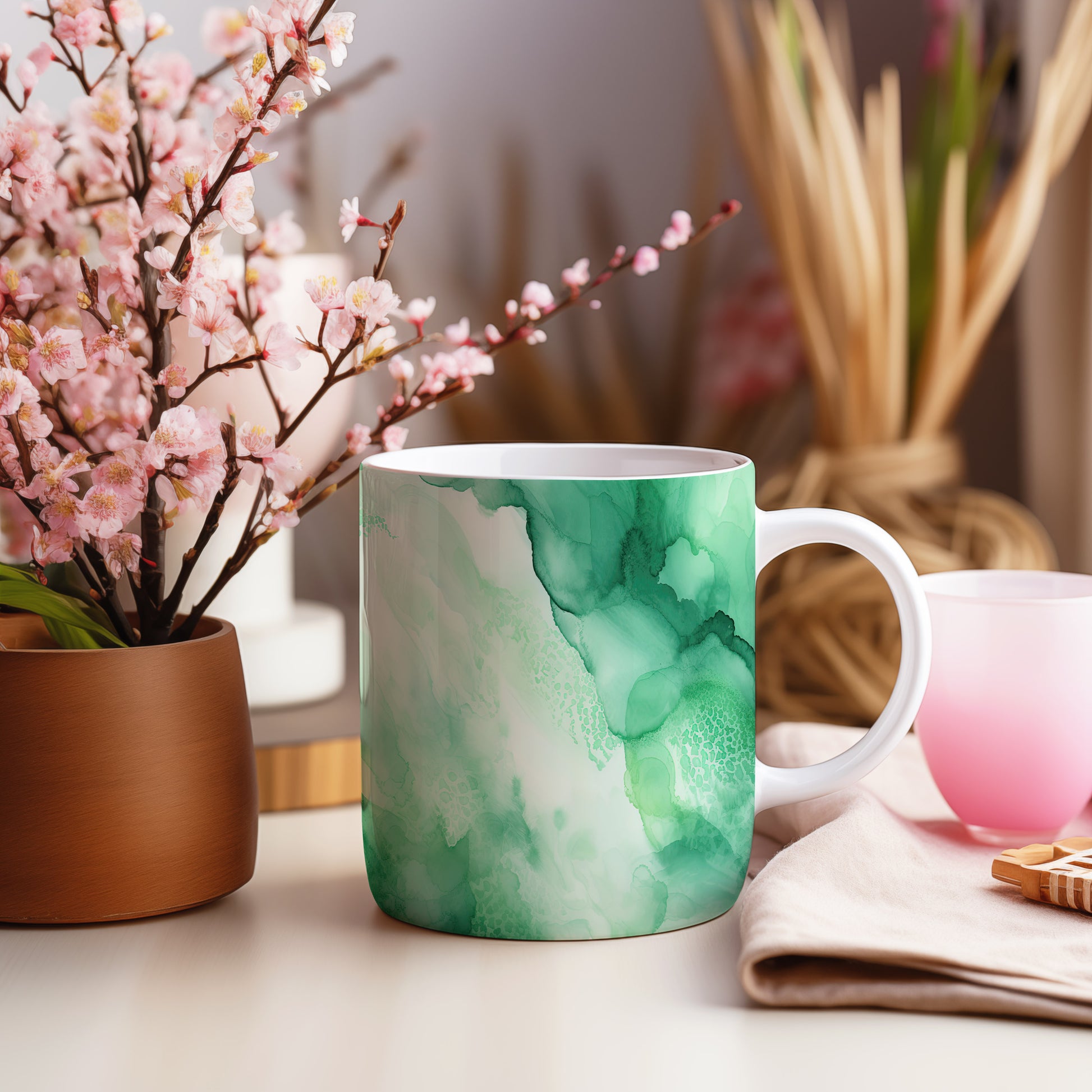 Tento hrnek s jemným zeleným designem přináší do vašeho dne svěžest a klid. Ideální pro každou příležitost, ať už si vychutnáváte kávu nebo čaj.