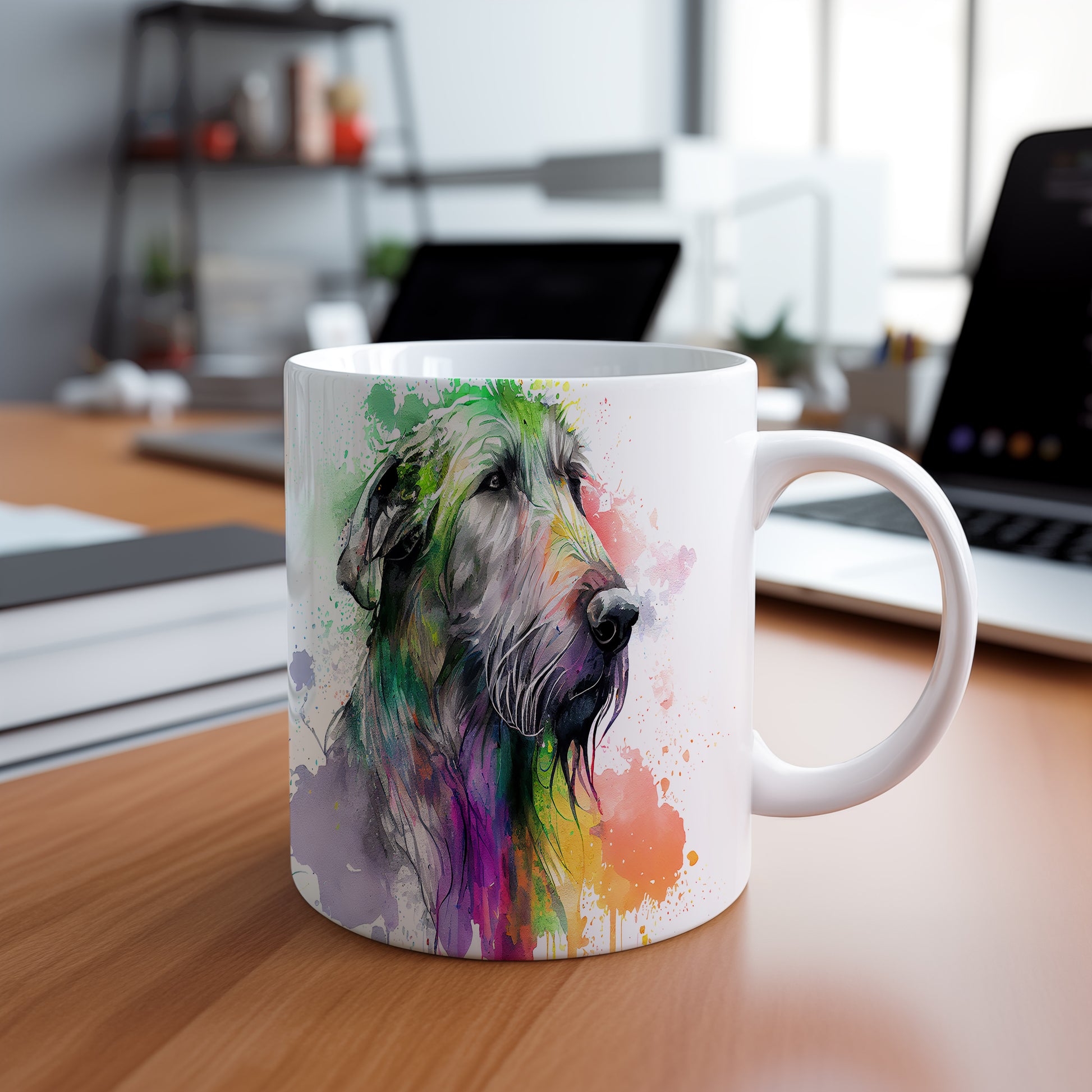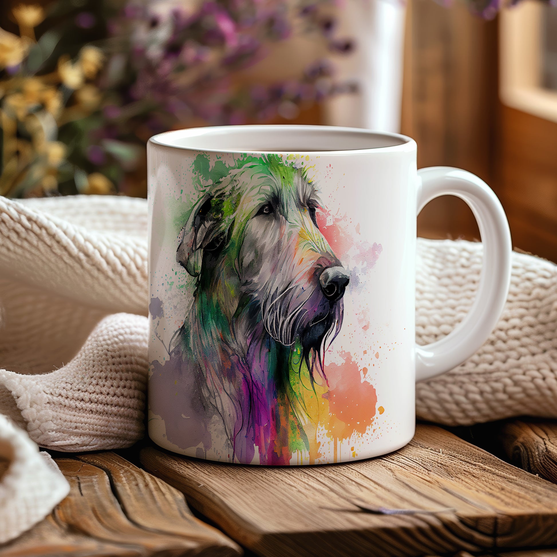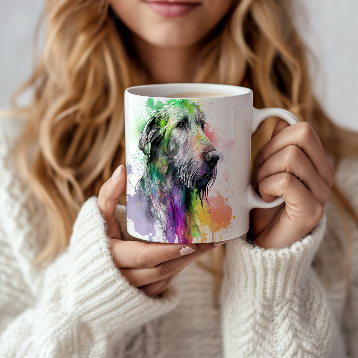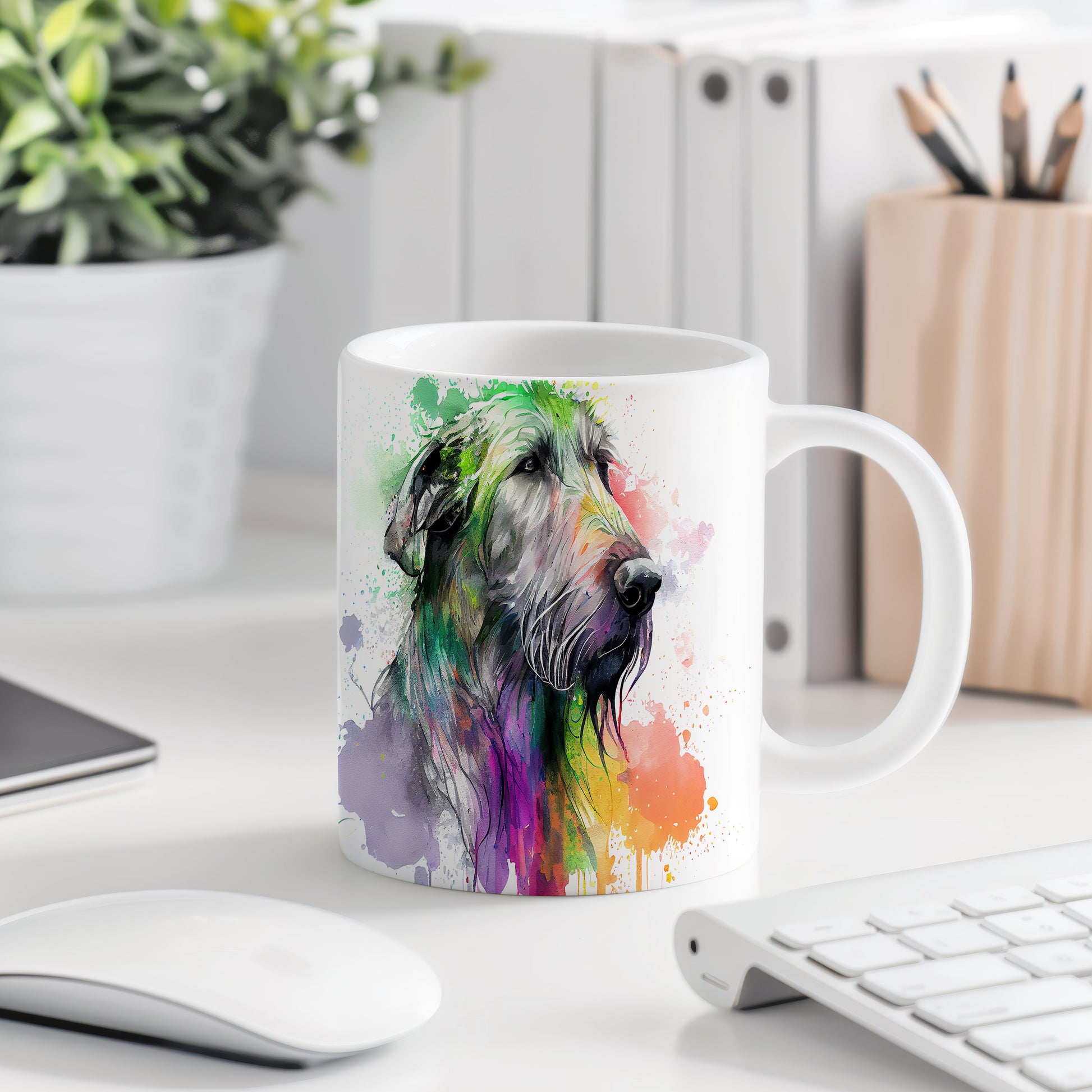 Tento originální hrnek s ilustrací irského vlkodava je ideálním doplňkem pro milovníky psů. Vyjádřete svou lásku k těmto majestátním zvířatům každodenním užíváním tohoto stylového kousku.