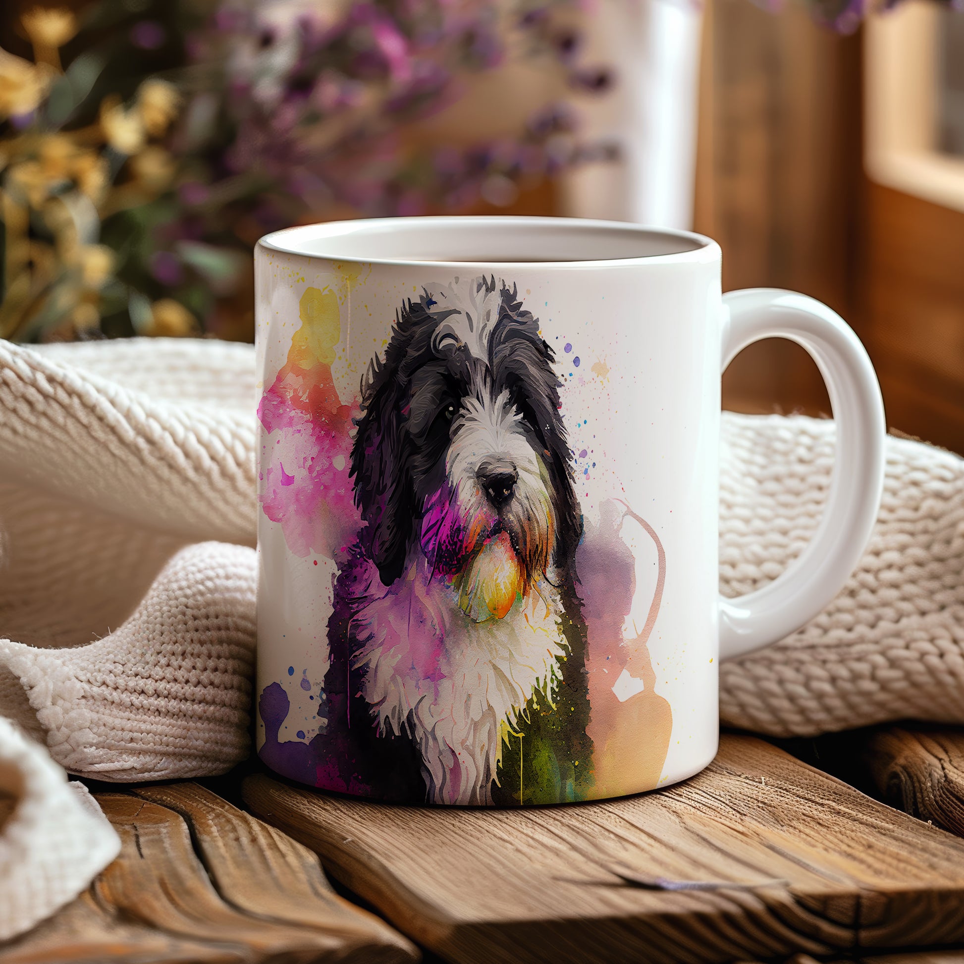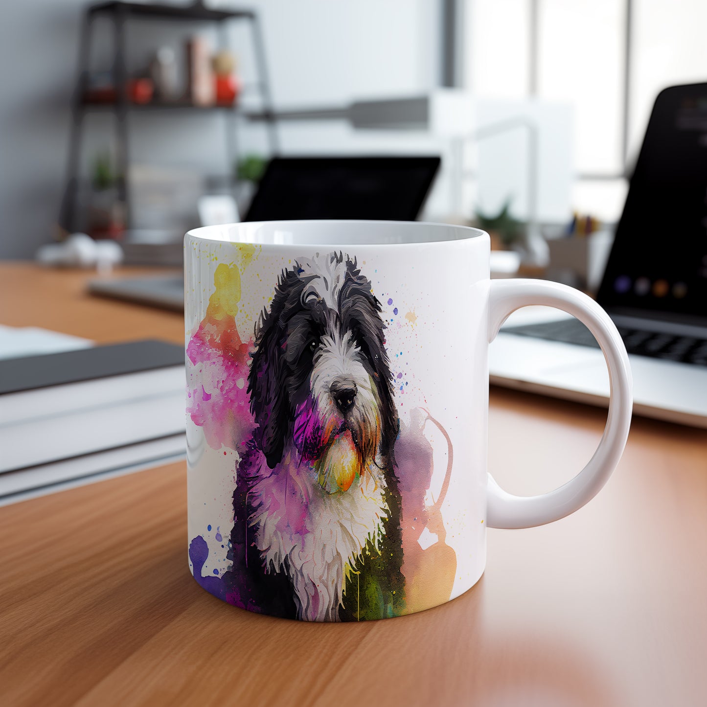 Tento hrnek zdobí půvabná ilustrace portugalského vodního psa v živých akvarelových barvách. Ideální pro milovníky psů, kteří chtějí přidat do svého dne trochu umění.