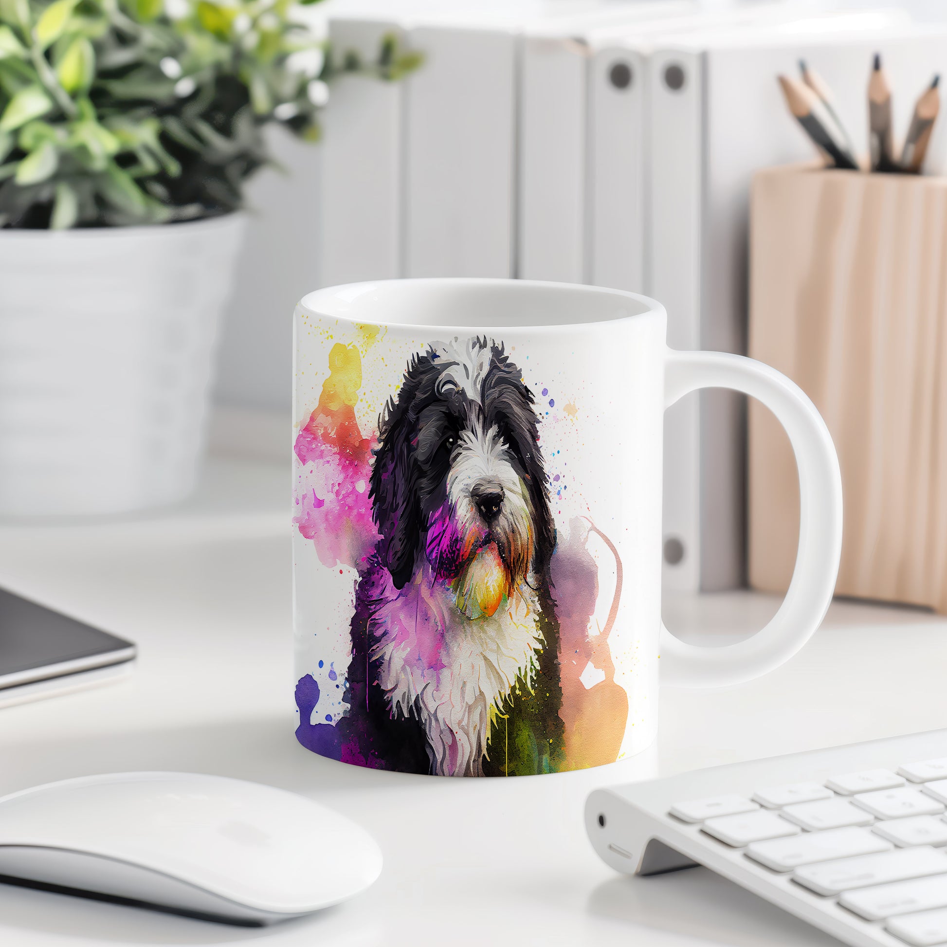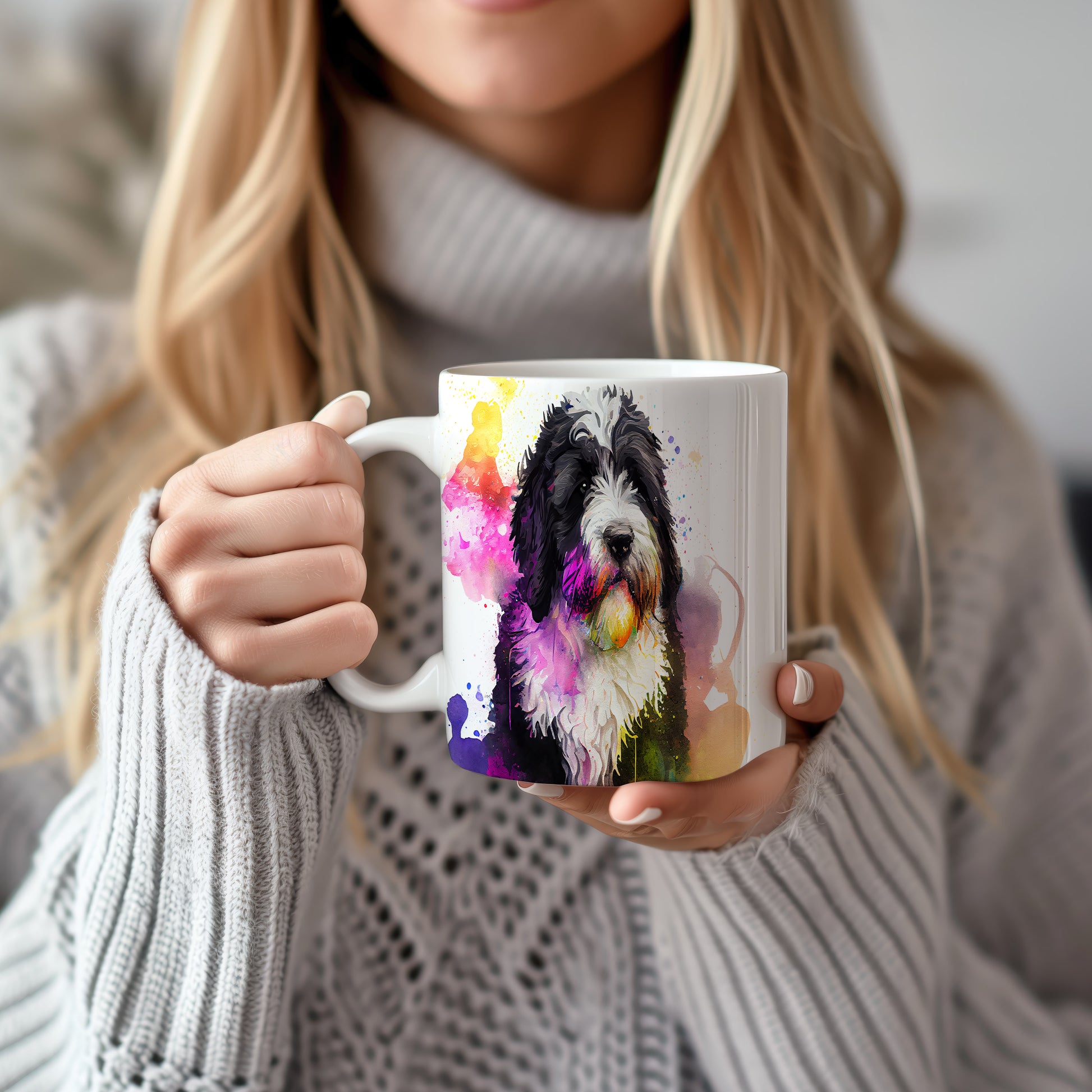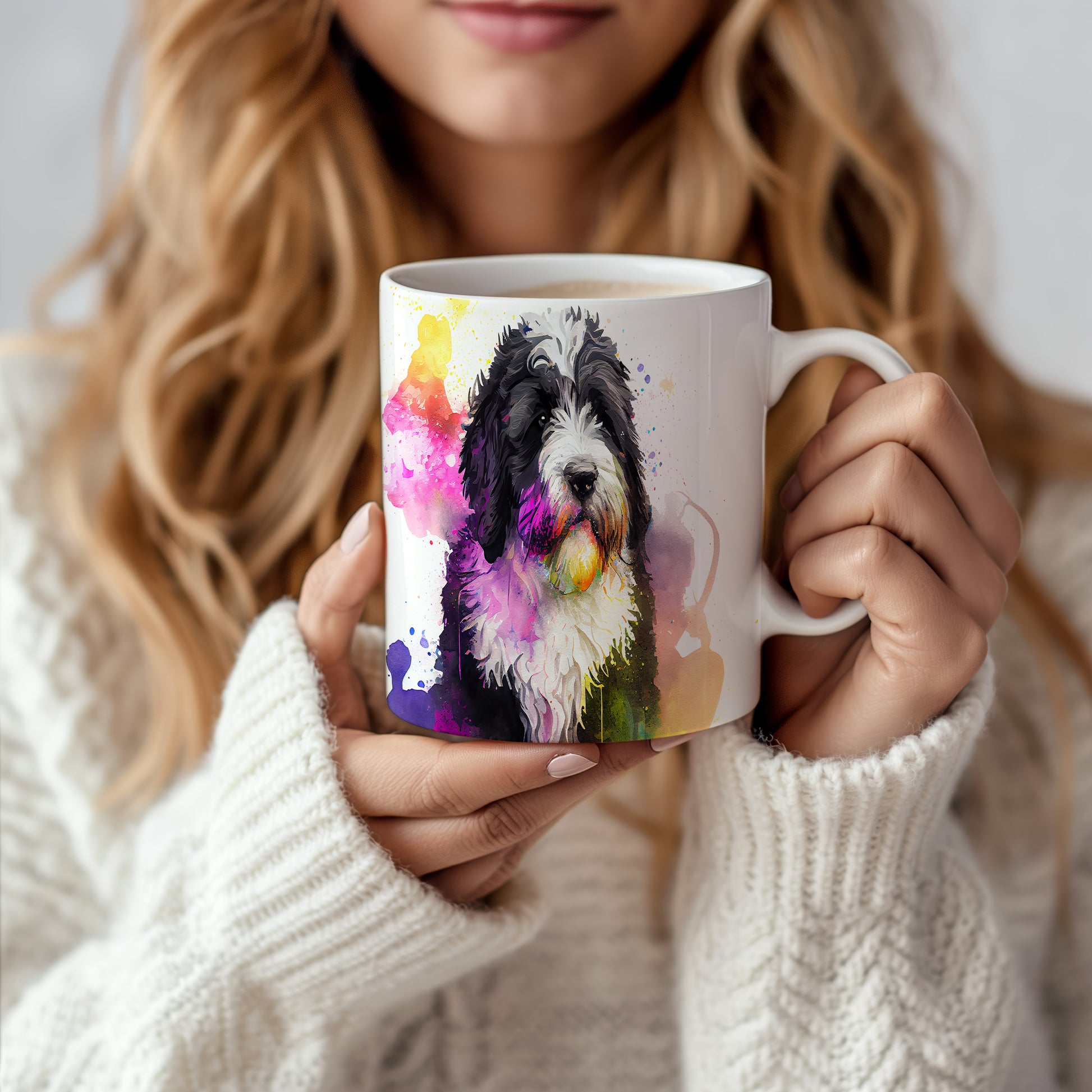 Hrnek s ilustrací psa: barevný portugalský vodní prs v akvarelovém stylu