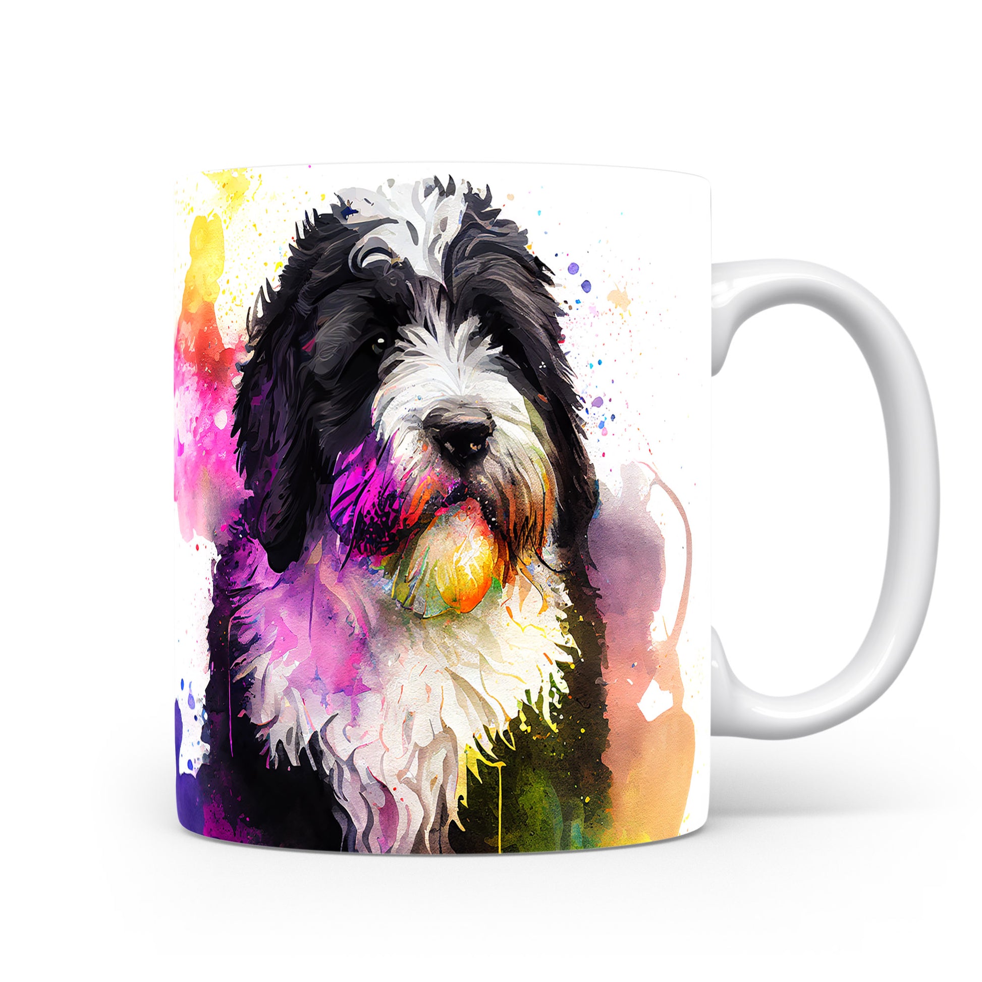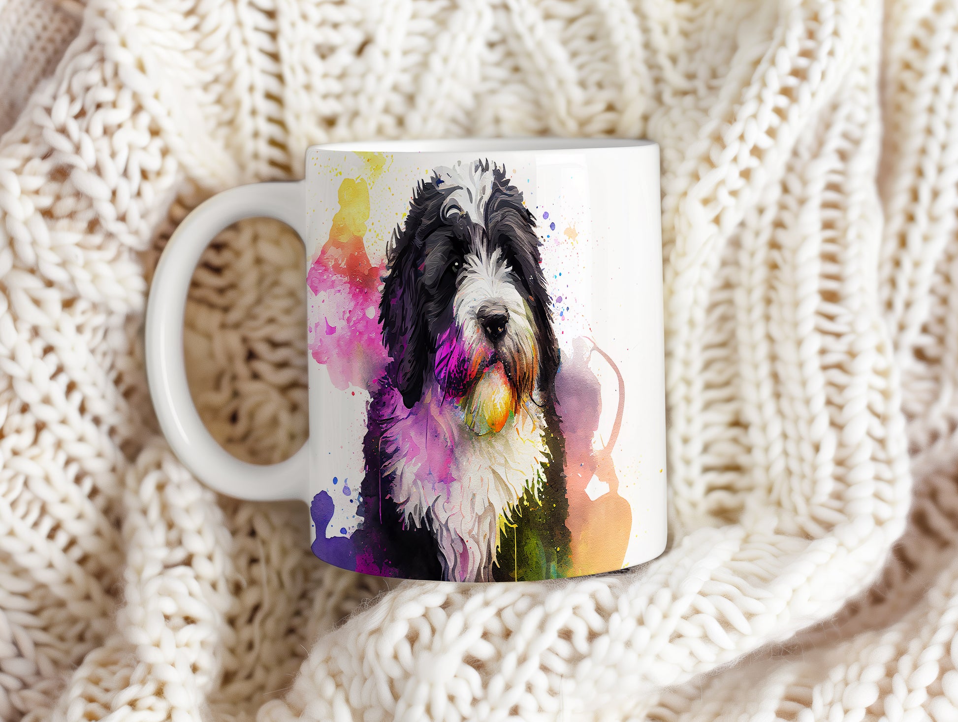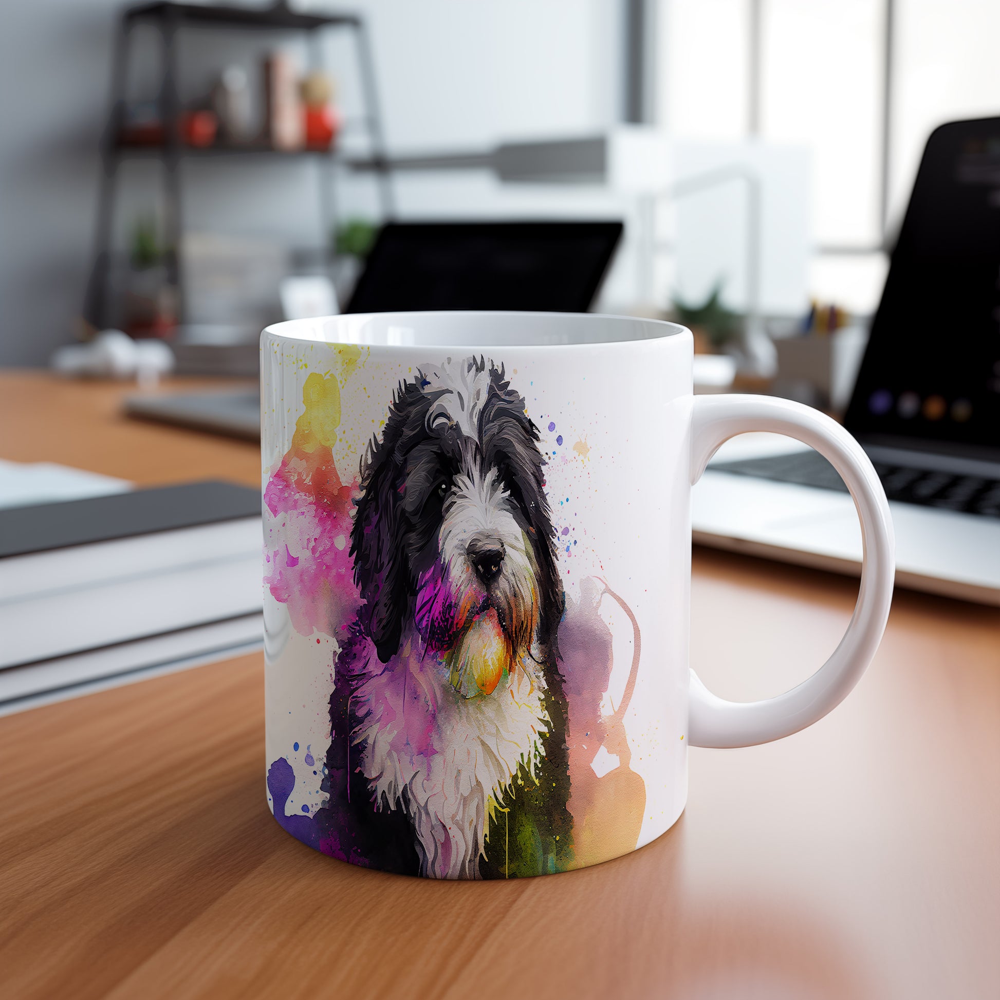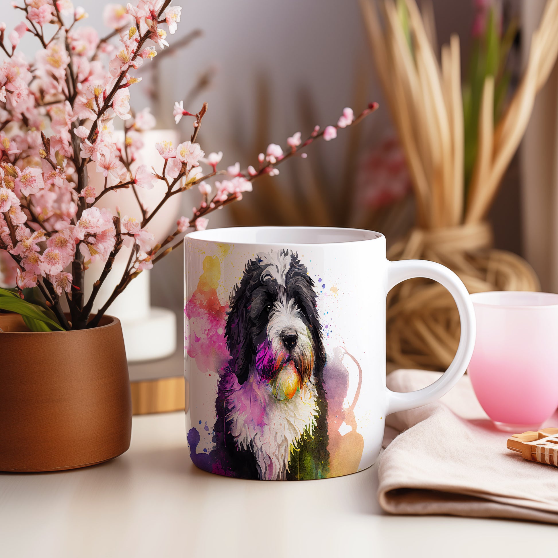 Hrnek s ilustrací psa: barevný portugalský vodní prs v akvarelovém stylu