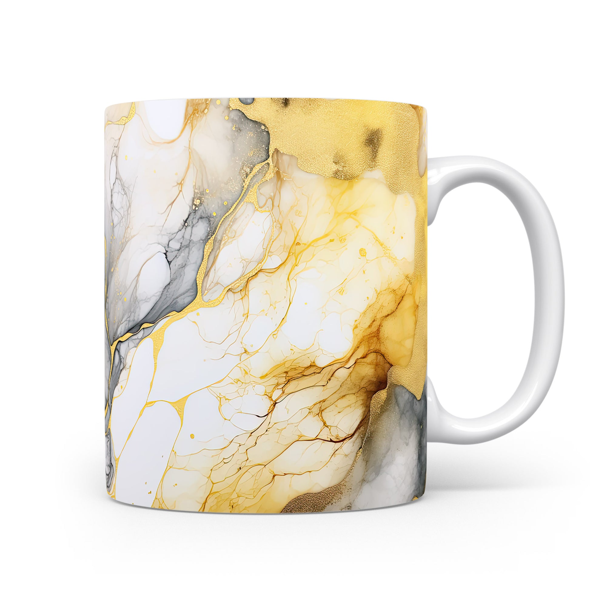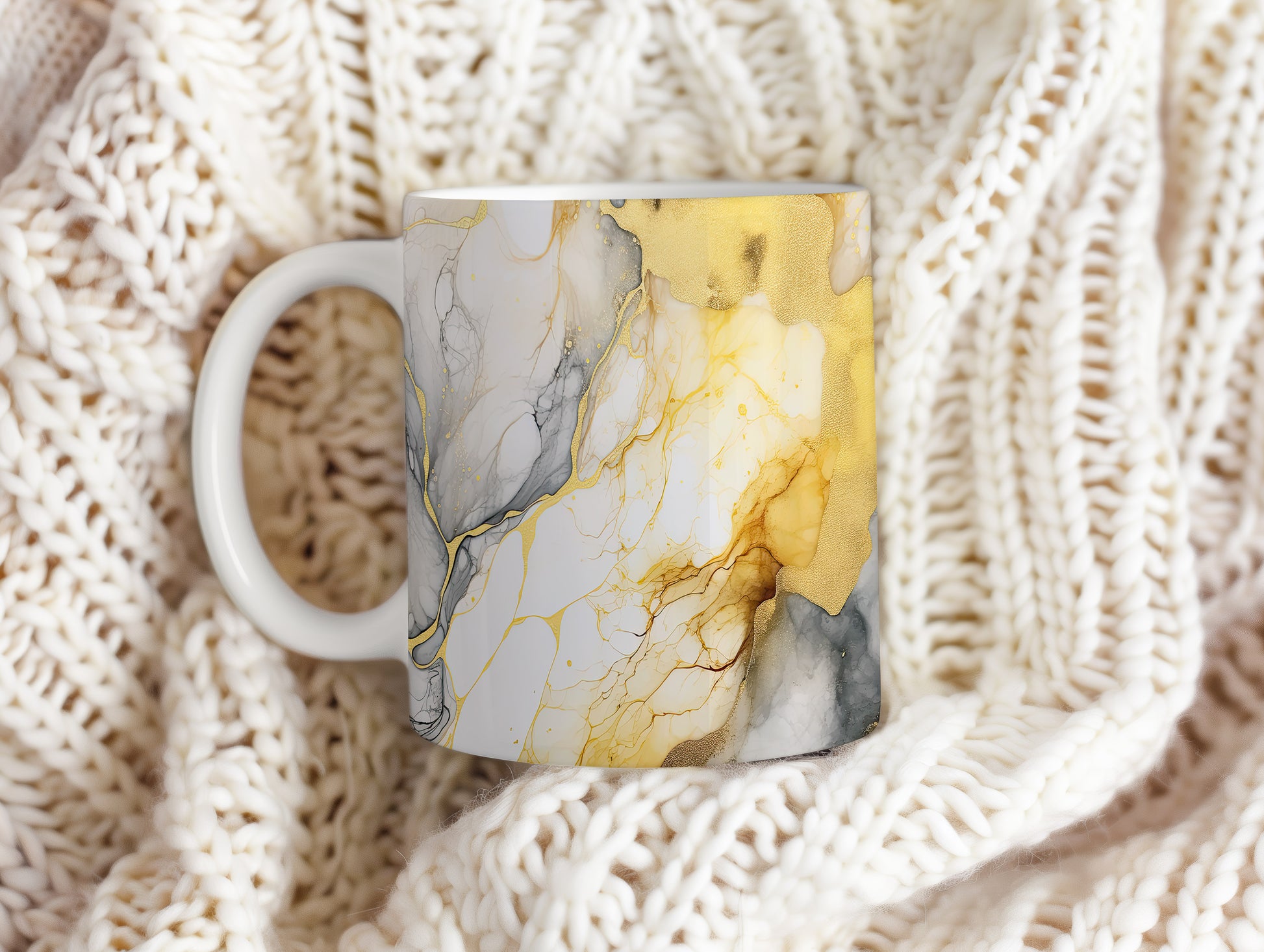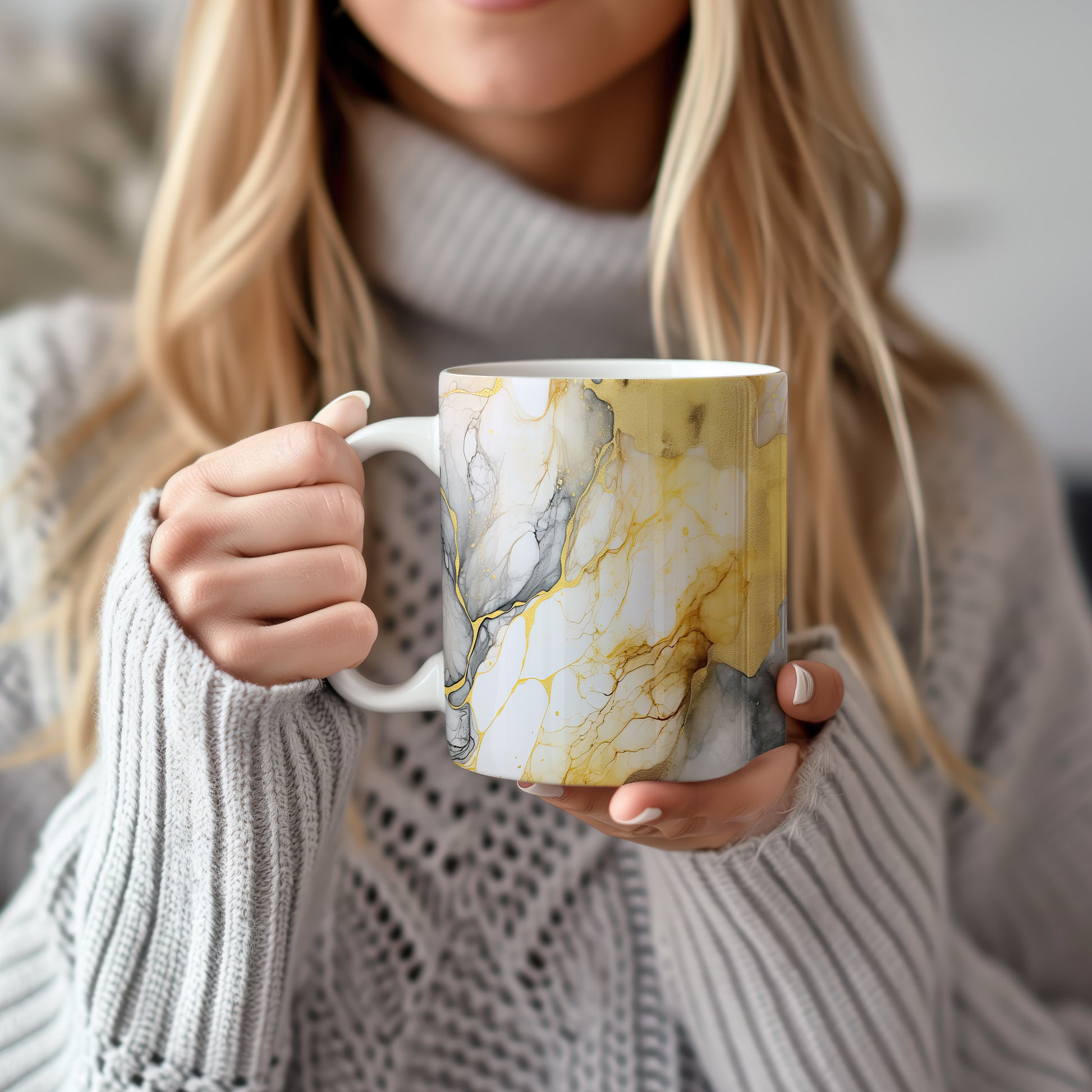 Tento hrnek s jedinečným abstraktním designem v zlatých a šedých tónech je ideální pro každodenní používání. Přidejte do svého pitného rituálu dávku elegance.