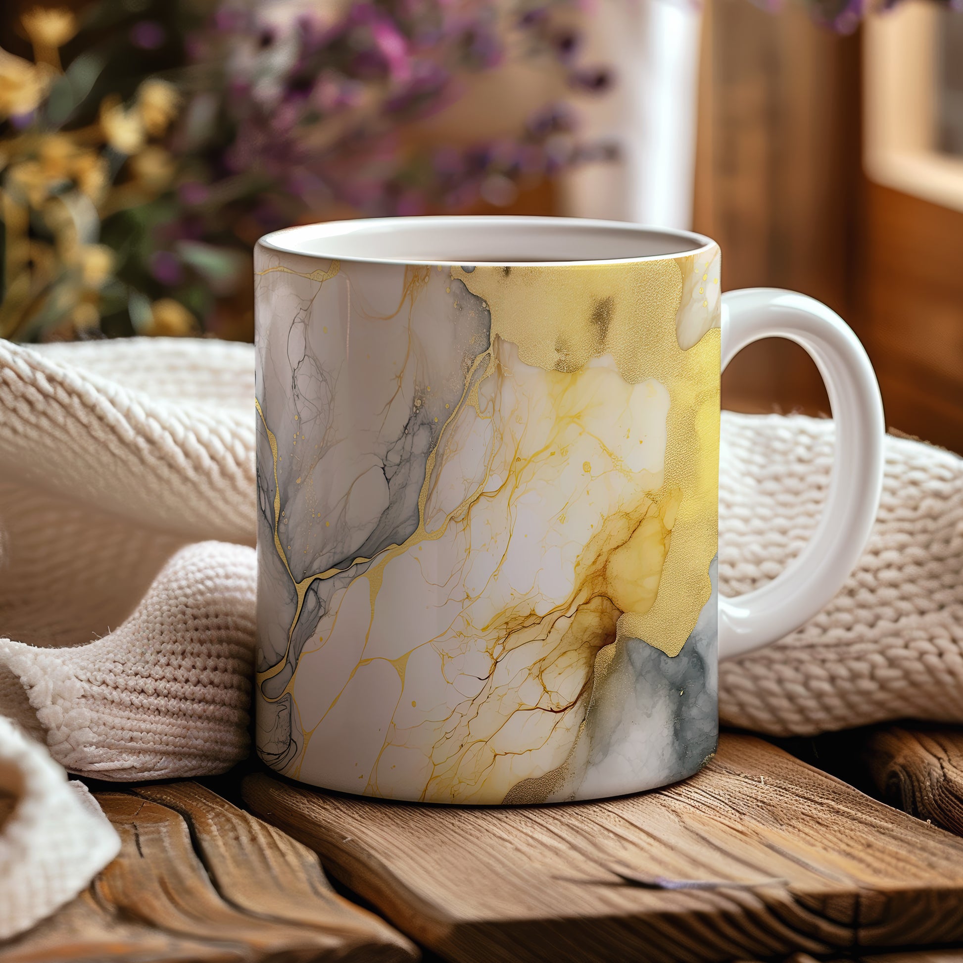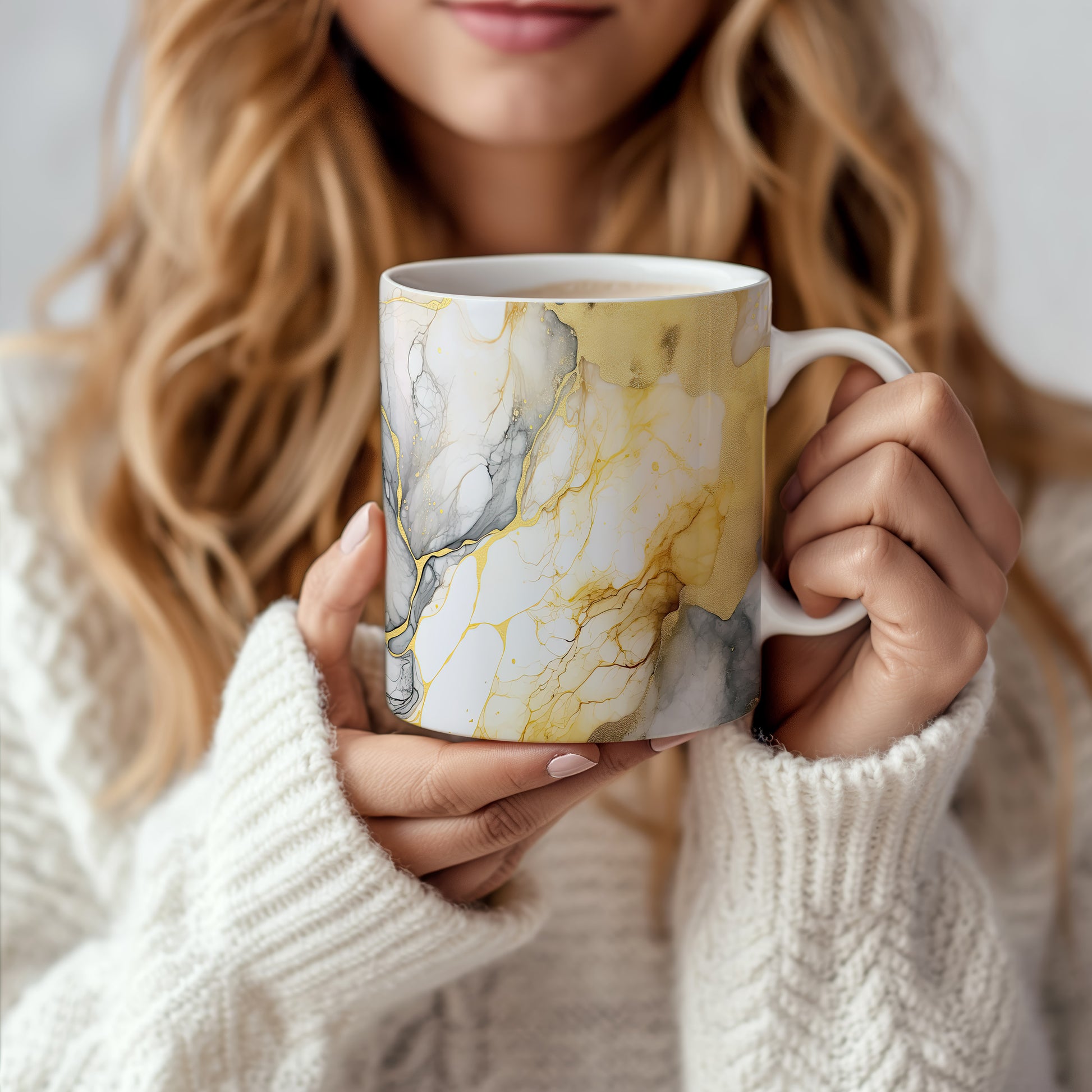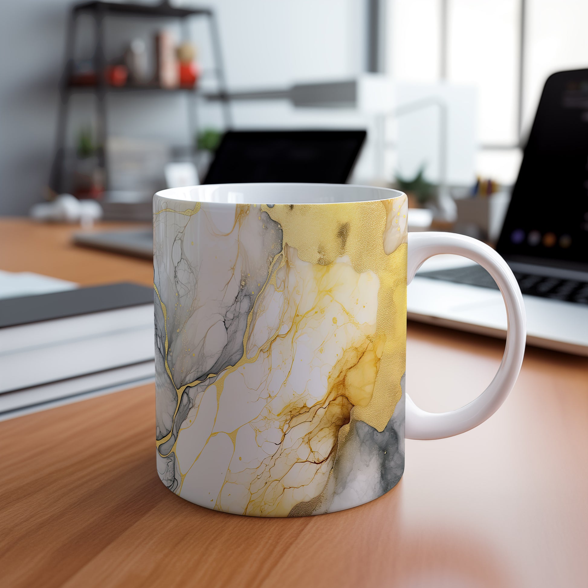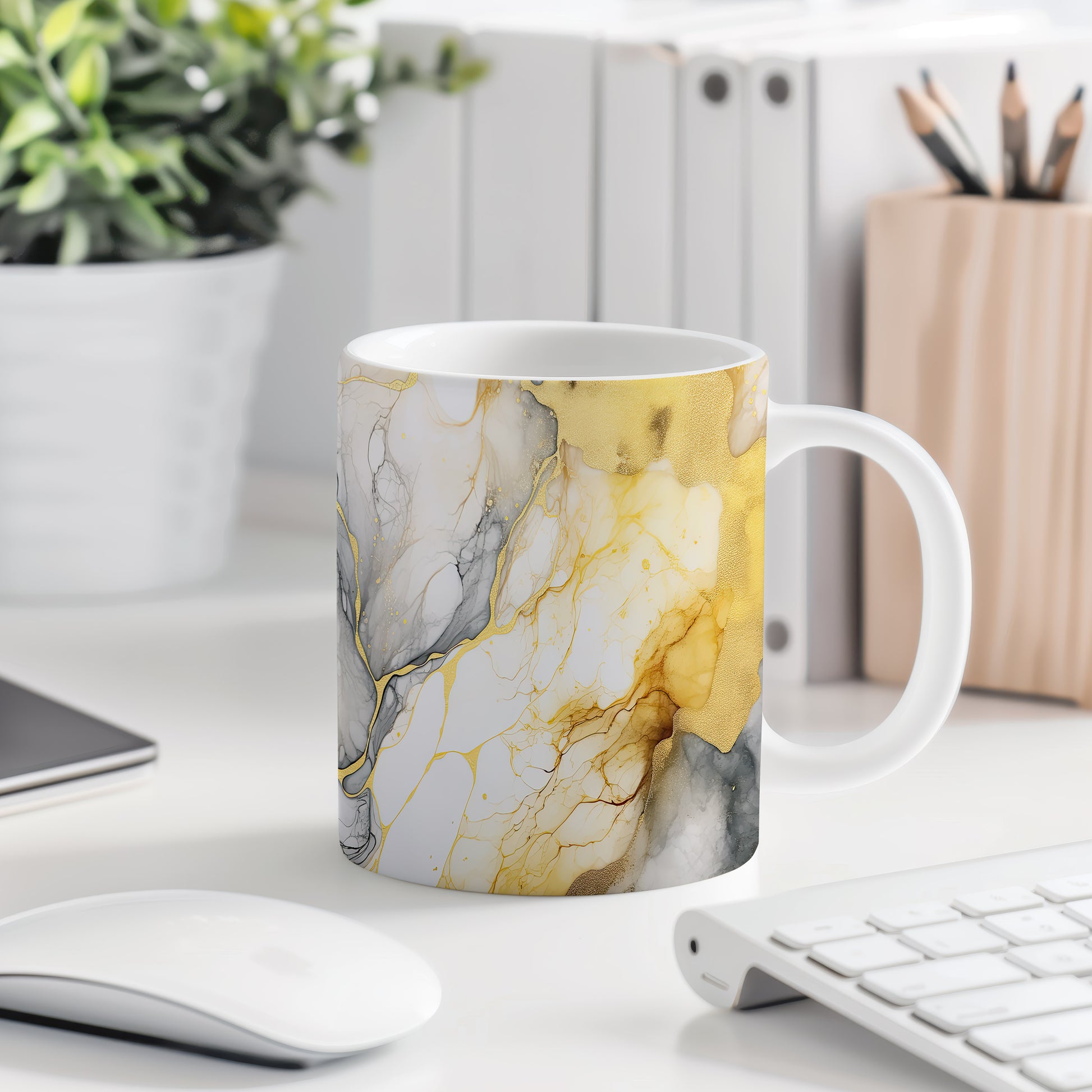 Tento hrnek s jedinečným abstraktním designem v zlatých a šedých tónech je ideální pro každodenní používání. Přidejte do svého pitného rituálu dávku elegance.