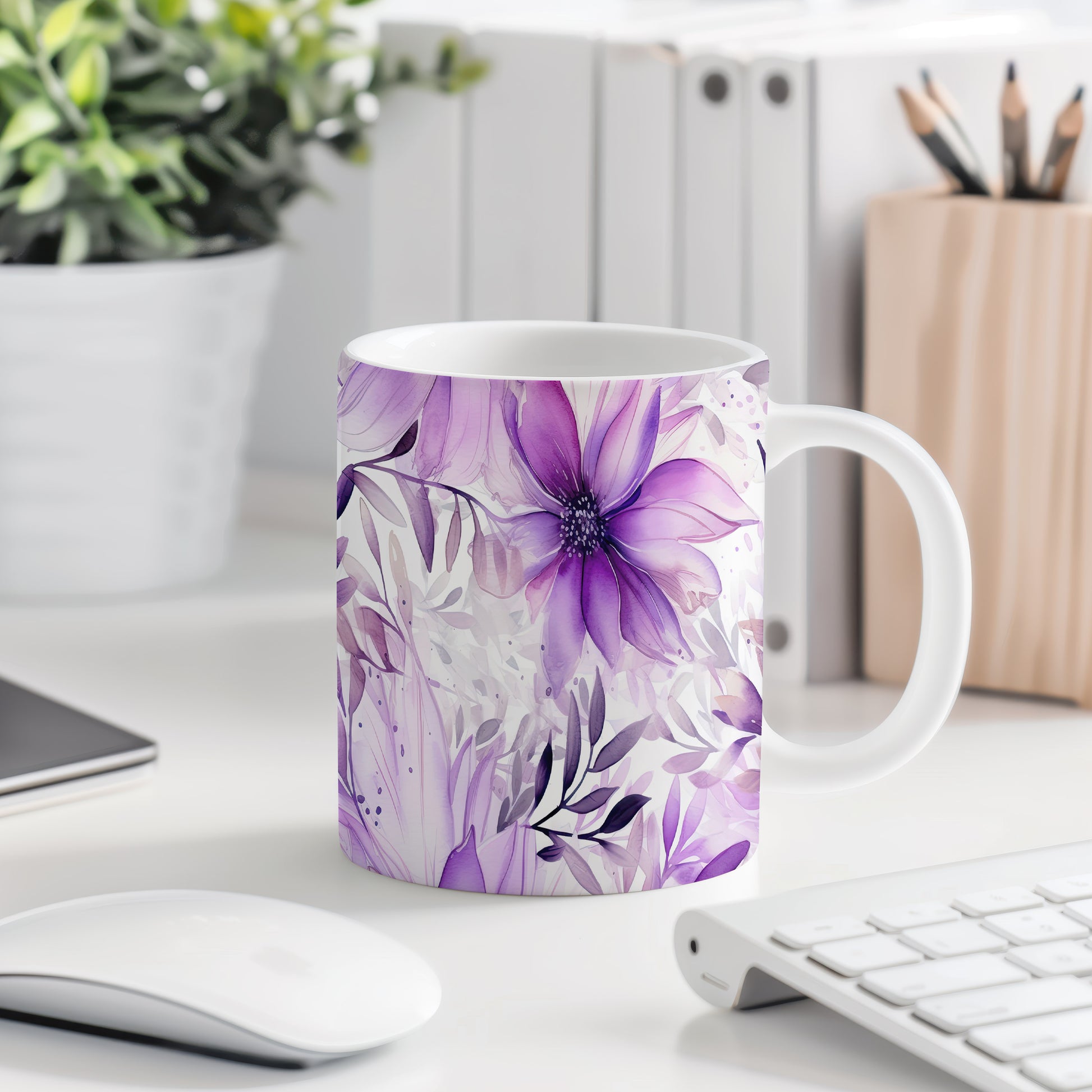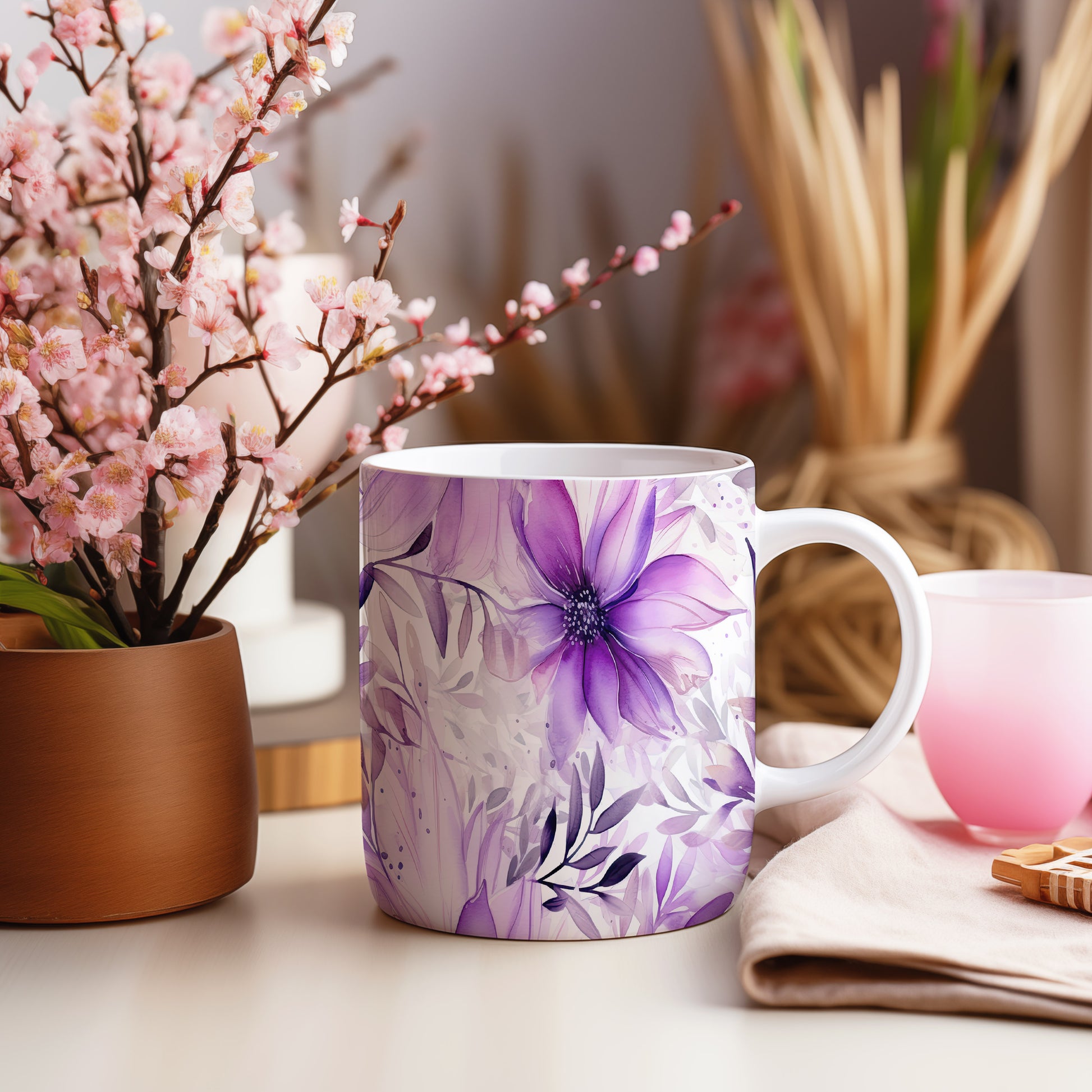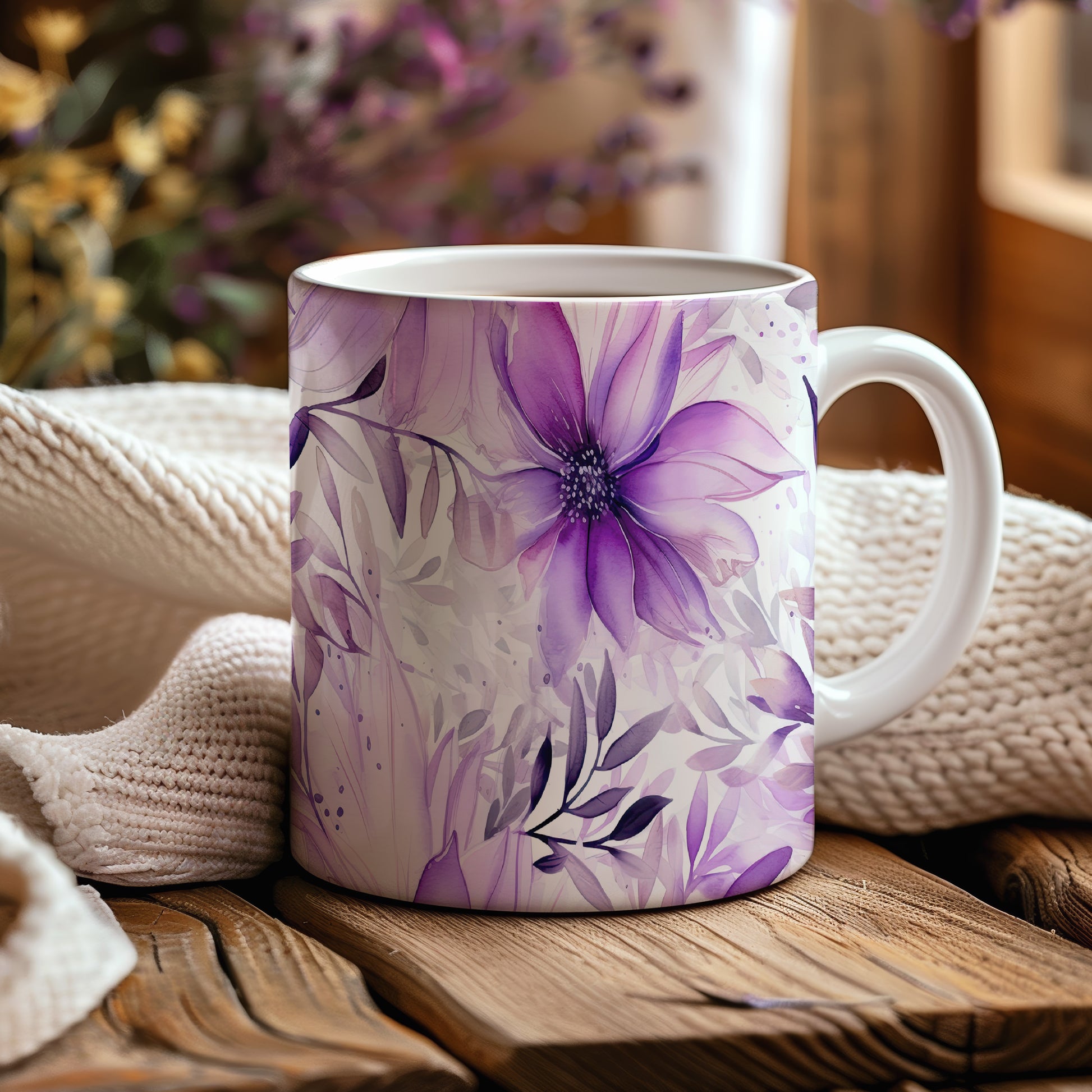 Elegantní květinový hrnek v odstínech fialové