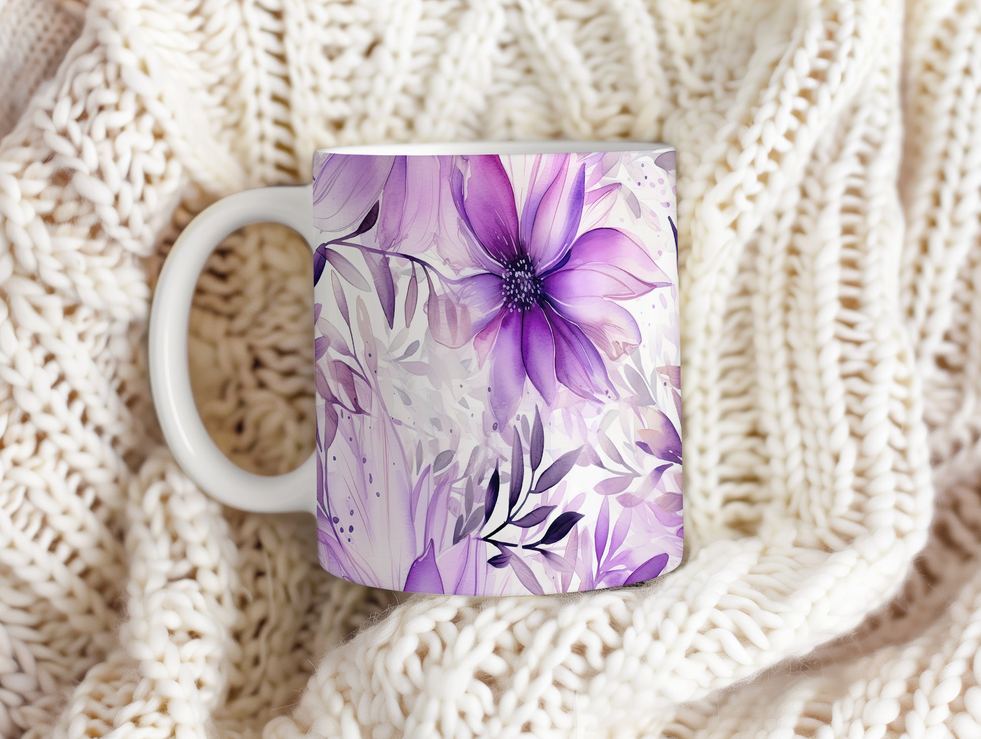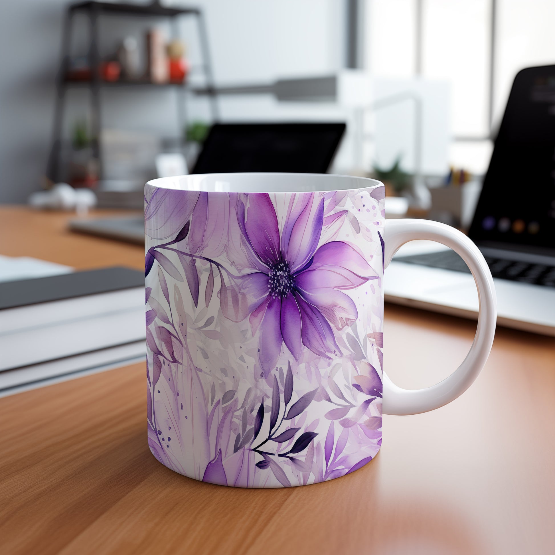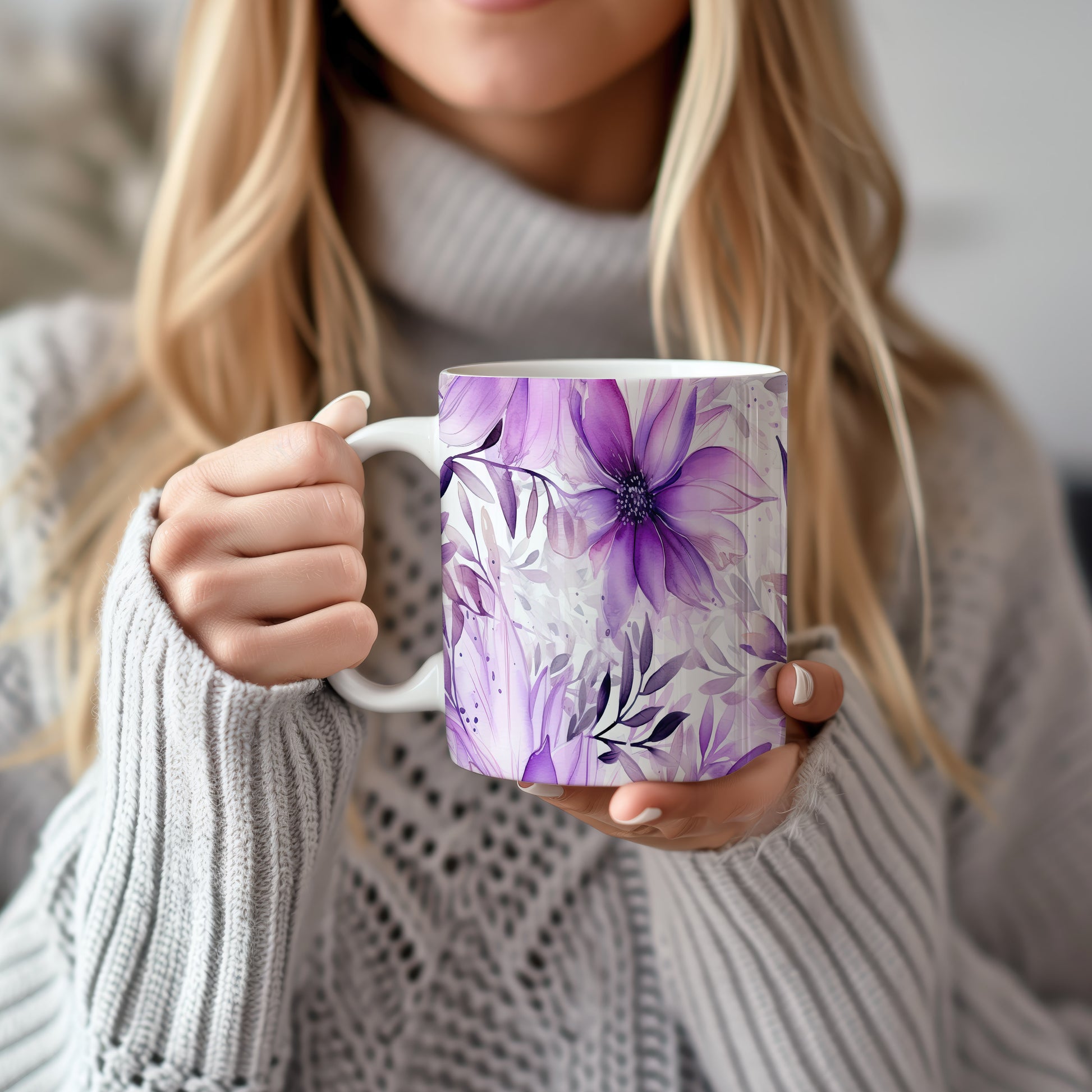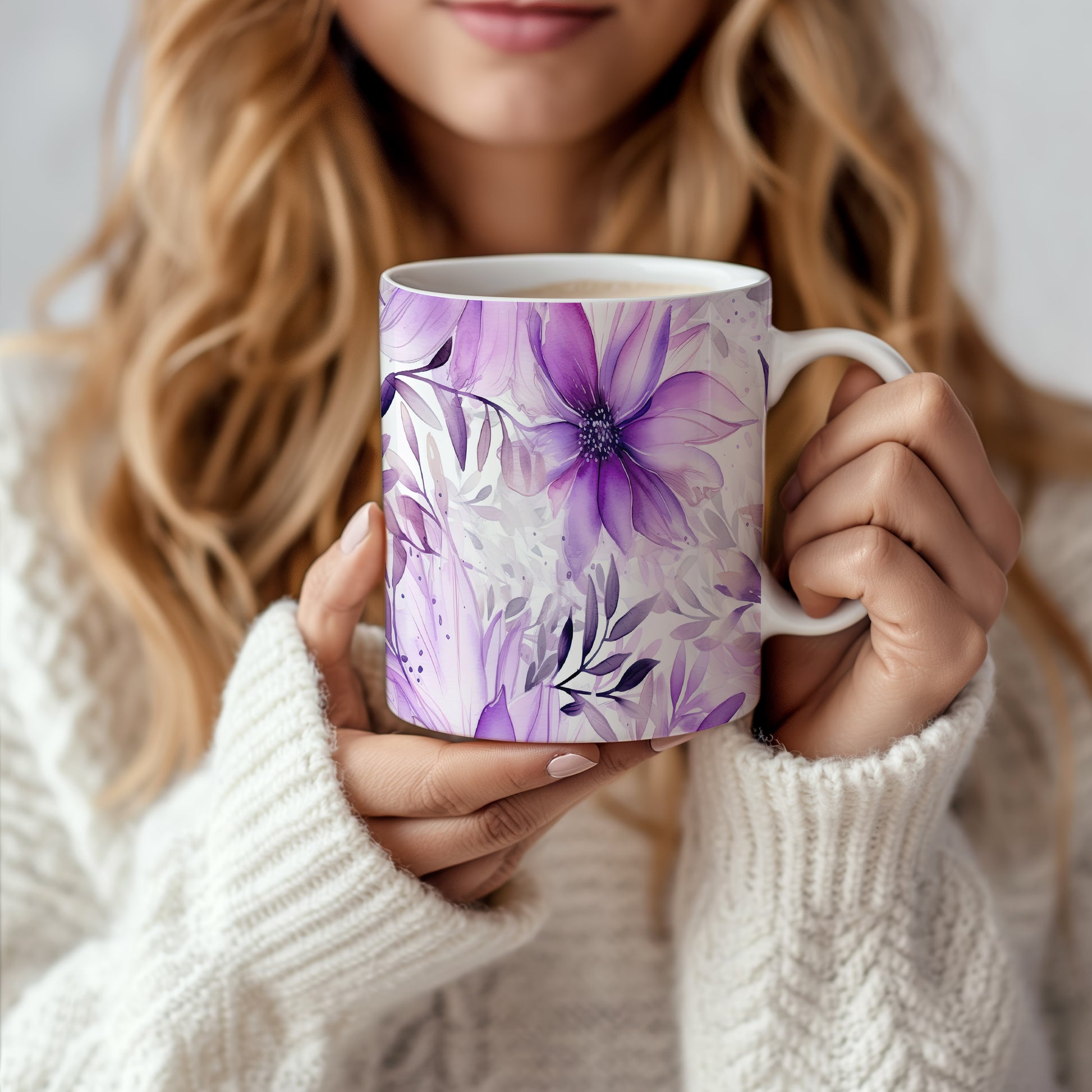 Elegantní květinový hrnek v odstínech fialové