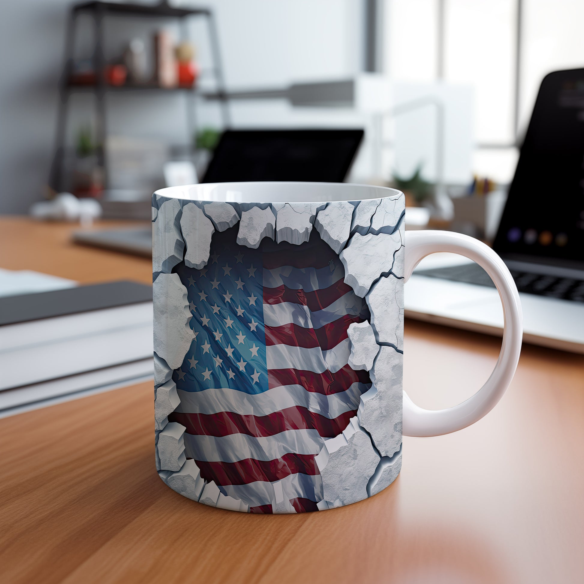 Tento keramický hrnek s motivem americké vlajky je skvělým doplňkem pro všechny milovníky USA. Je ideální jako dárek pro přátele nebo rodinu, kteří mají rádi americkou kulturu. Materiál: keramika. Objem: 330 ml. Vhodné do myčky i mikrovlnky. Díky svému designu s 3D efektem dodá vašemu pití jedinečný zážitek.