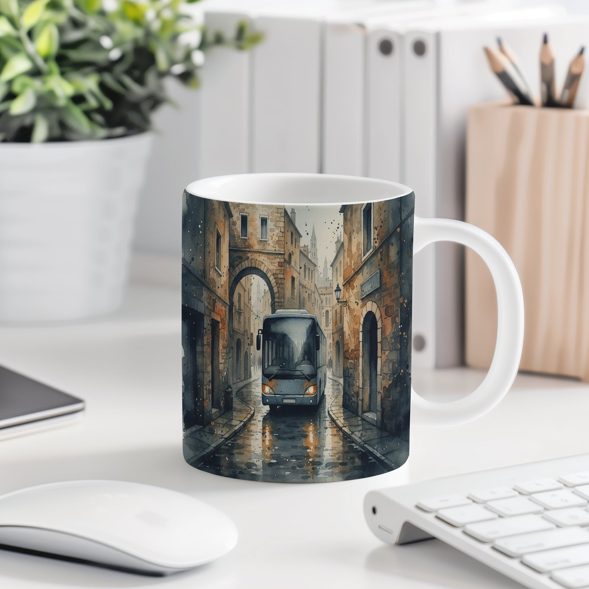 Objevte kouzlo historických uliček s naším hrnkem, který zobrazuje elegantní autobus projíždějící malebným městem. Akvarelový design dodá vaší kuchyni jedinečný šarm. Hrnek 330 ml – vhodný do myčky i mikrovlnky.