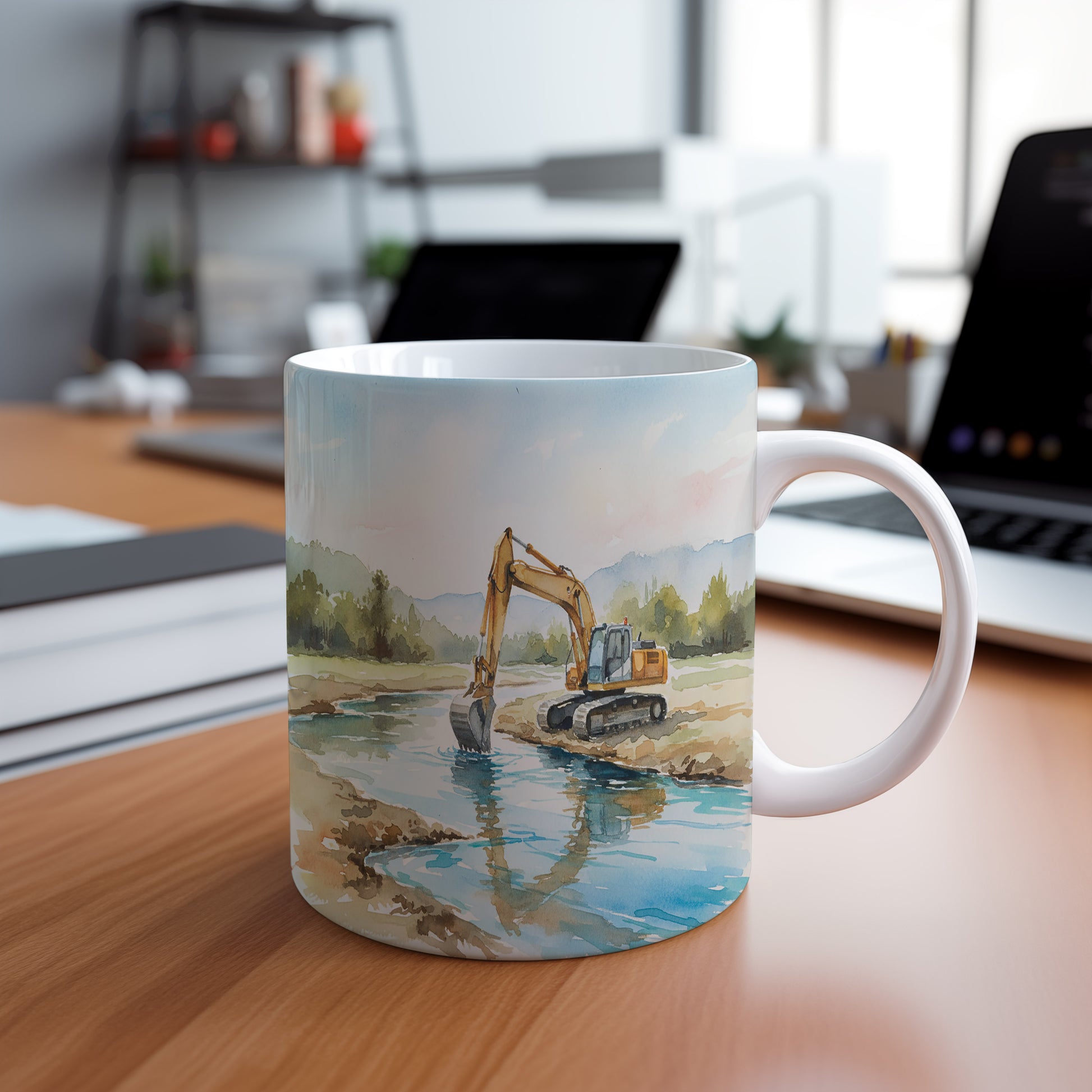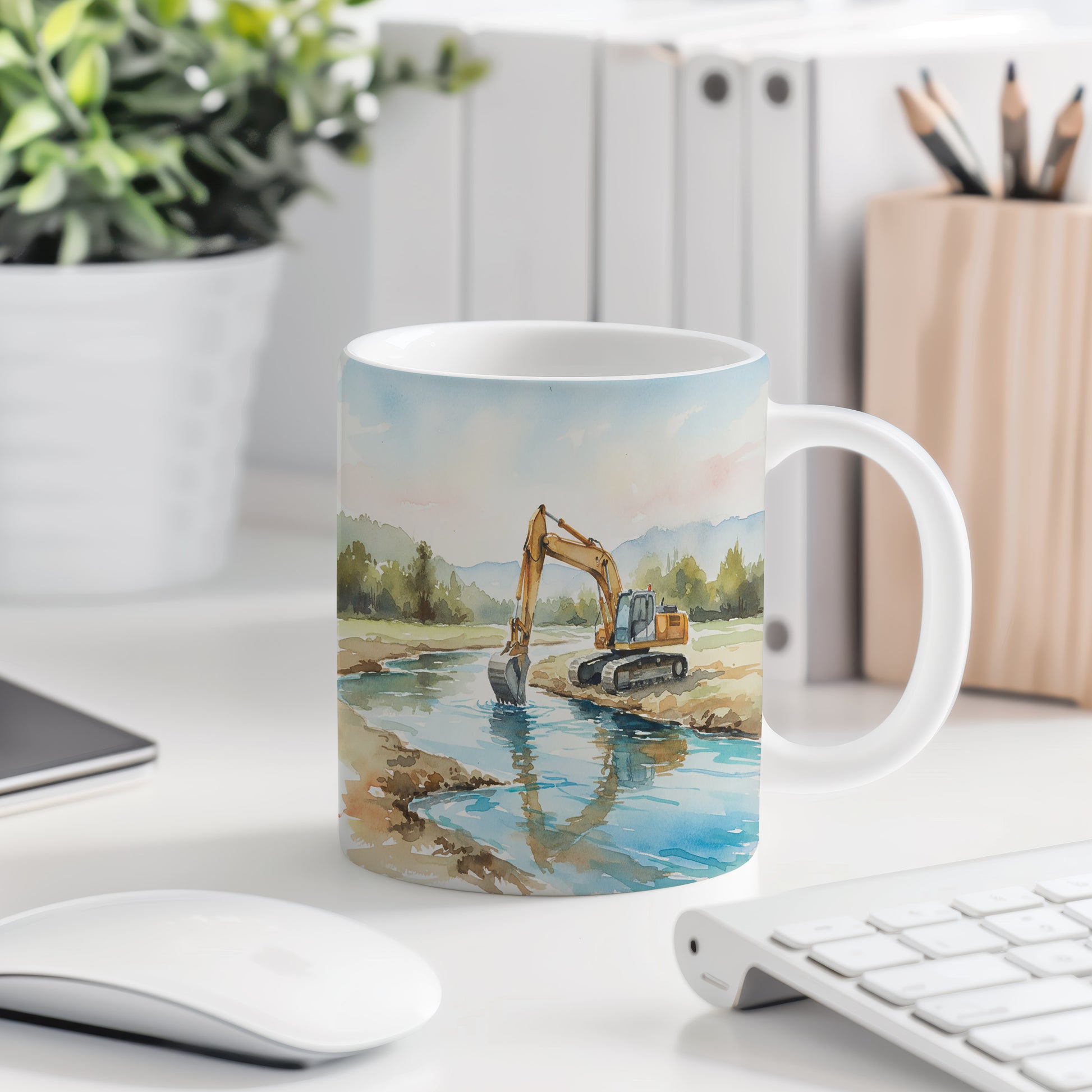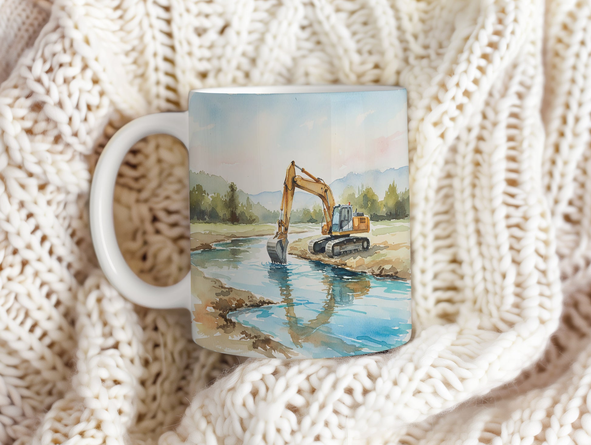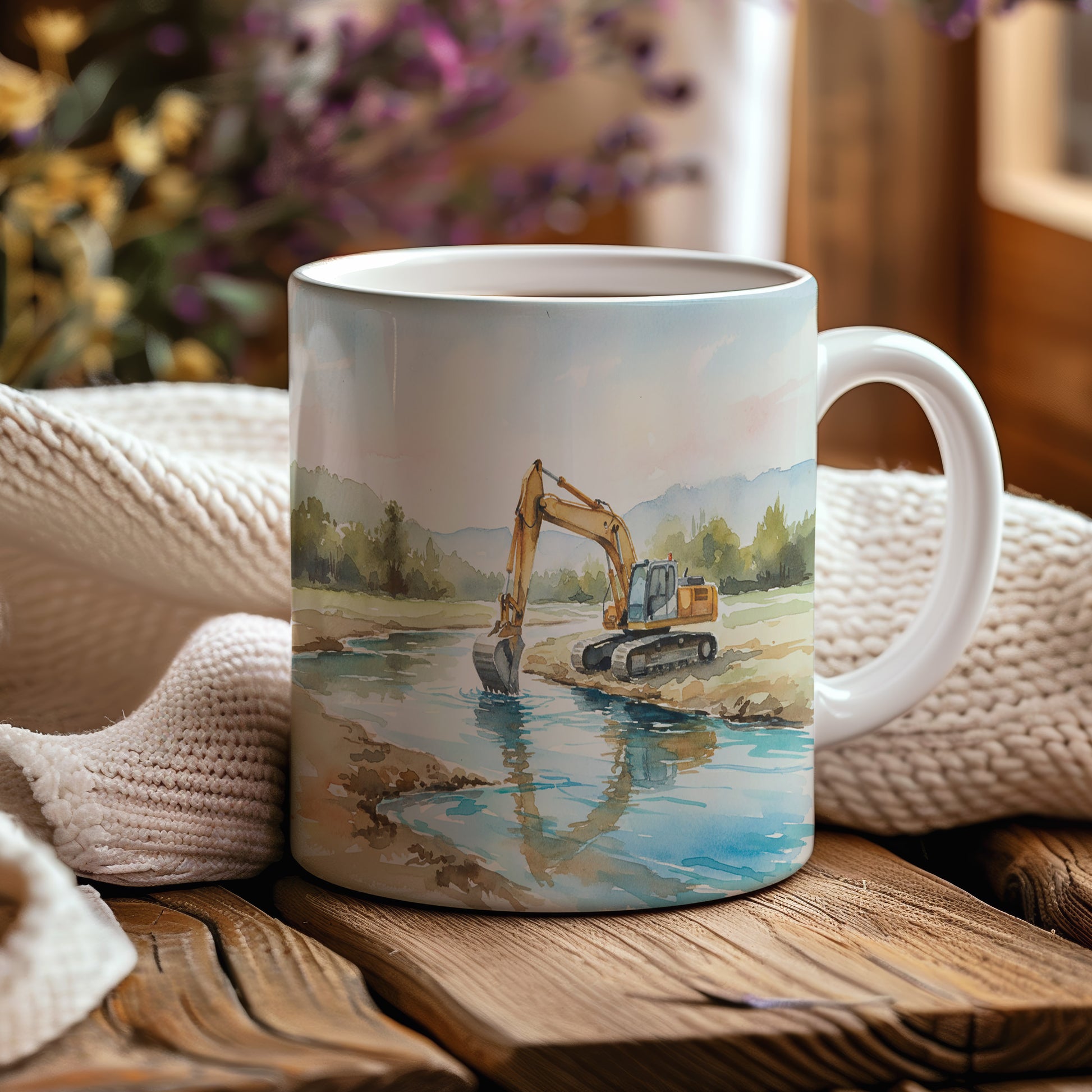 Objevte kouzlo akvarelu s bagrem u klidného potoka. Vytříbené detaily a jemné barvy přináší okamžik klidu do vašeho dne. Hrnek 330 ml – vhodný do myčky i mikrovlnky.