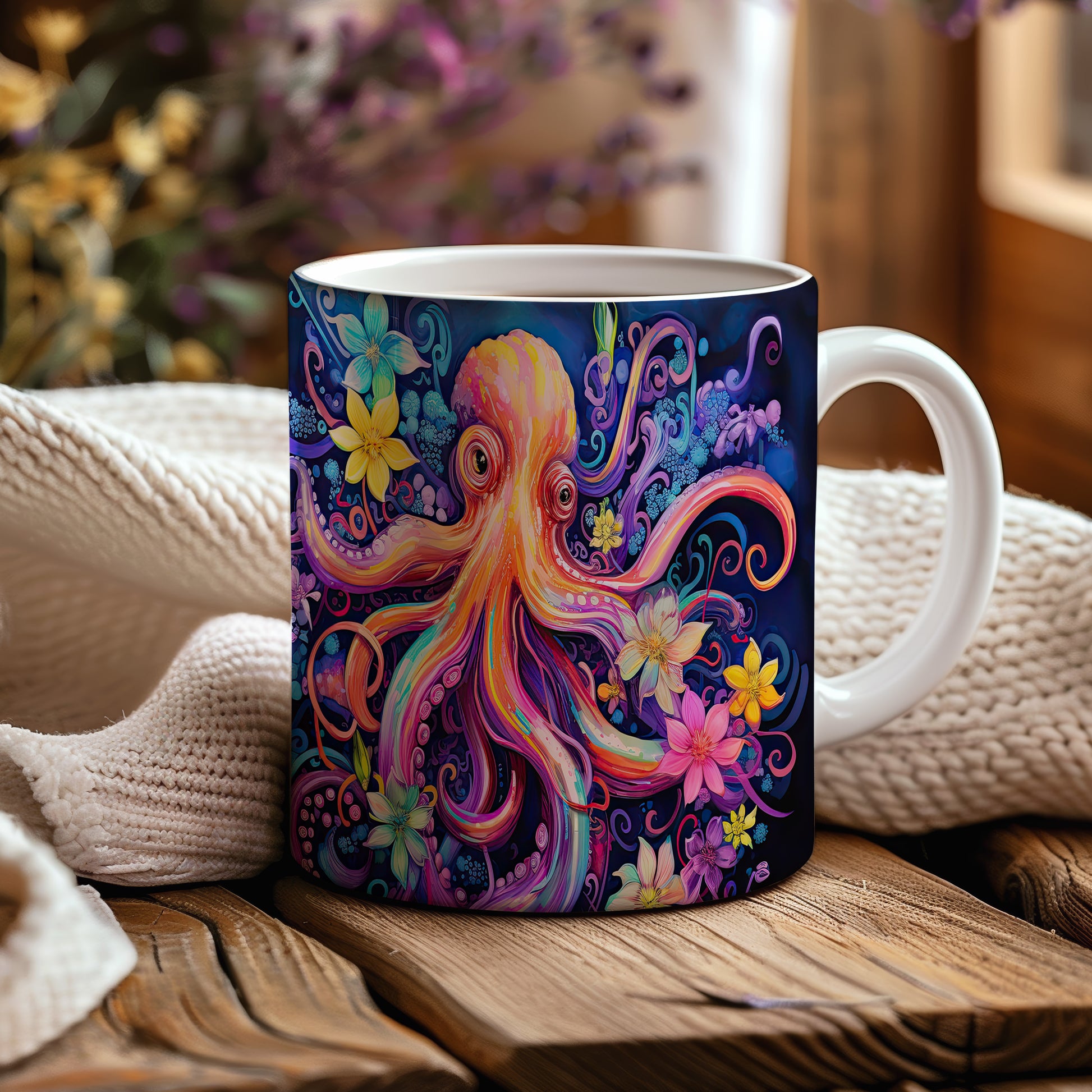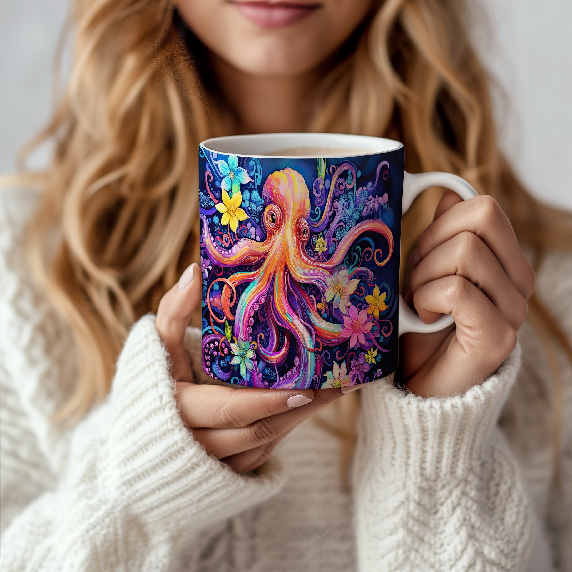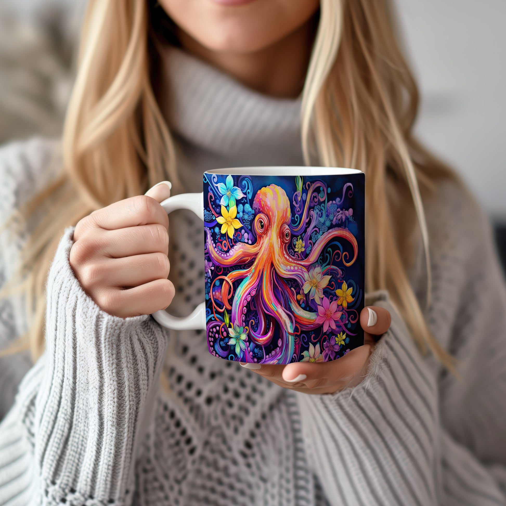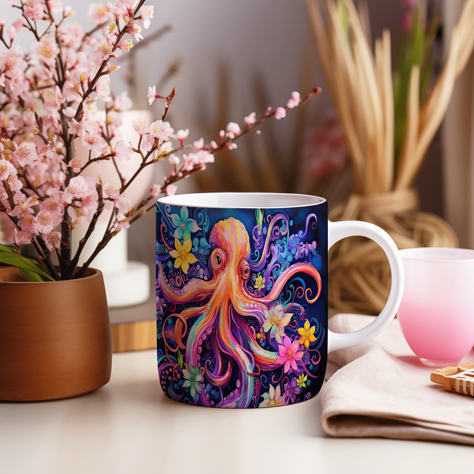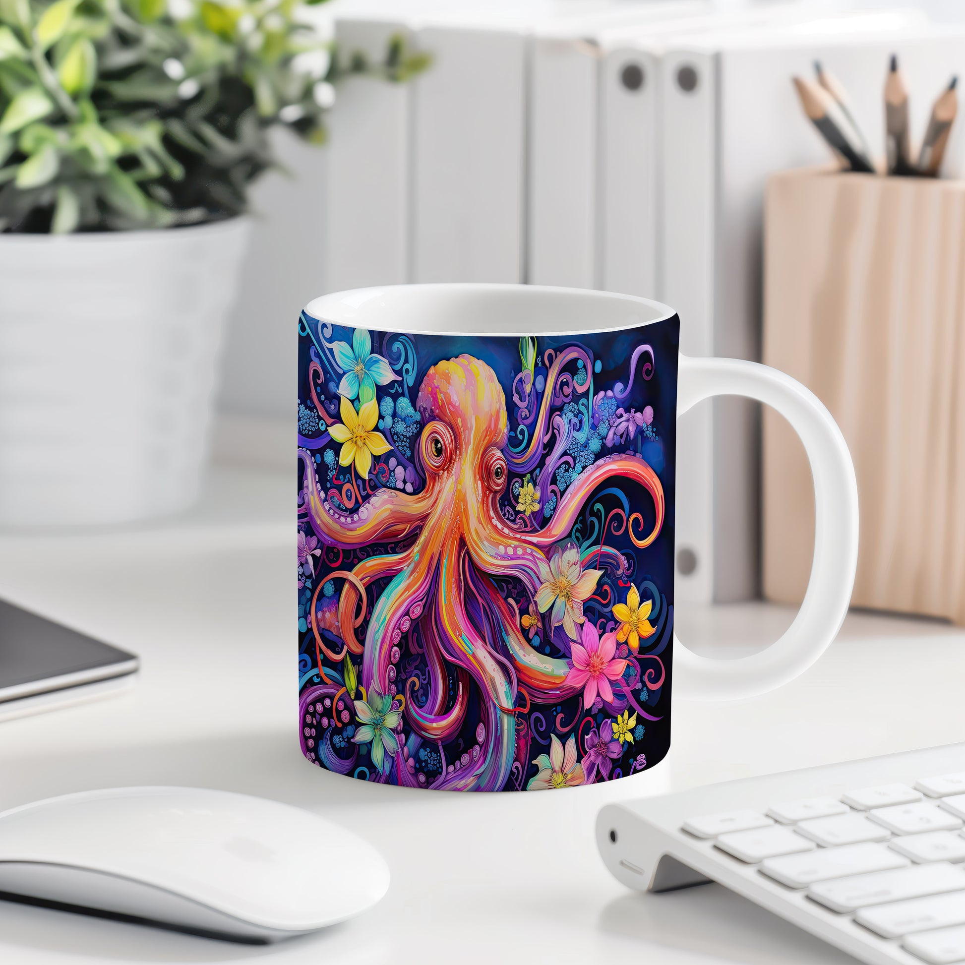 Tento keramický hrnek s motivem barevné chobotnice a květin přináší do každého dne jedinečný styl. Je ideální pro milovníky mořských živočichů a skvělým dárkem pro přátele či rodinu. Materiál: keramika. Objem: 330 ml. Vhodné do myčky i mikrovlnky. Díky svému designu dodá vašemu pití osobitý šarm.