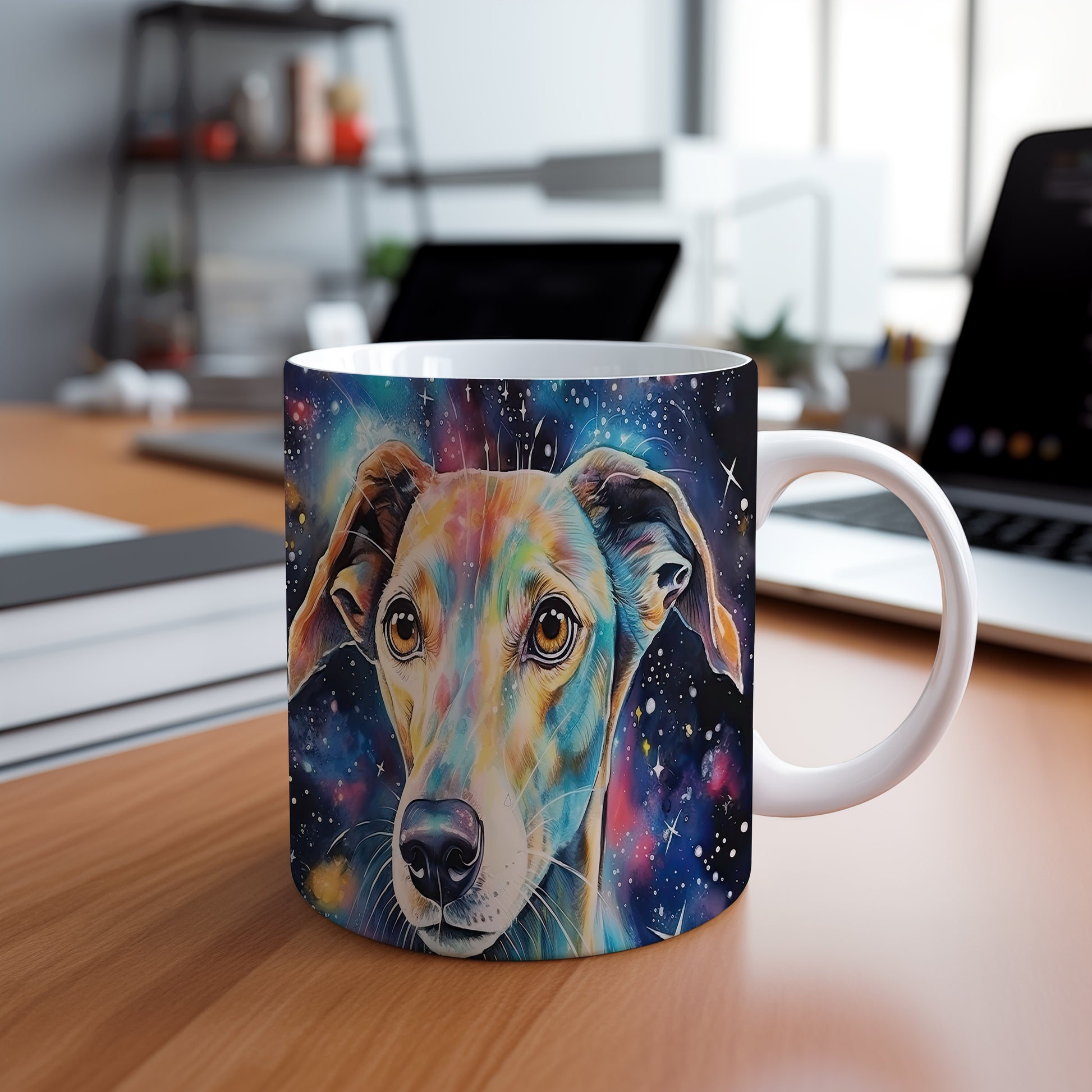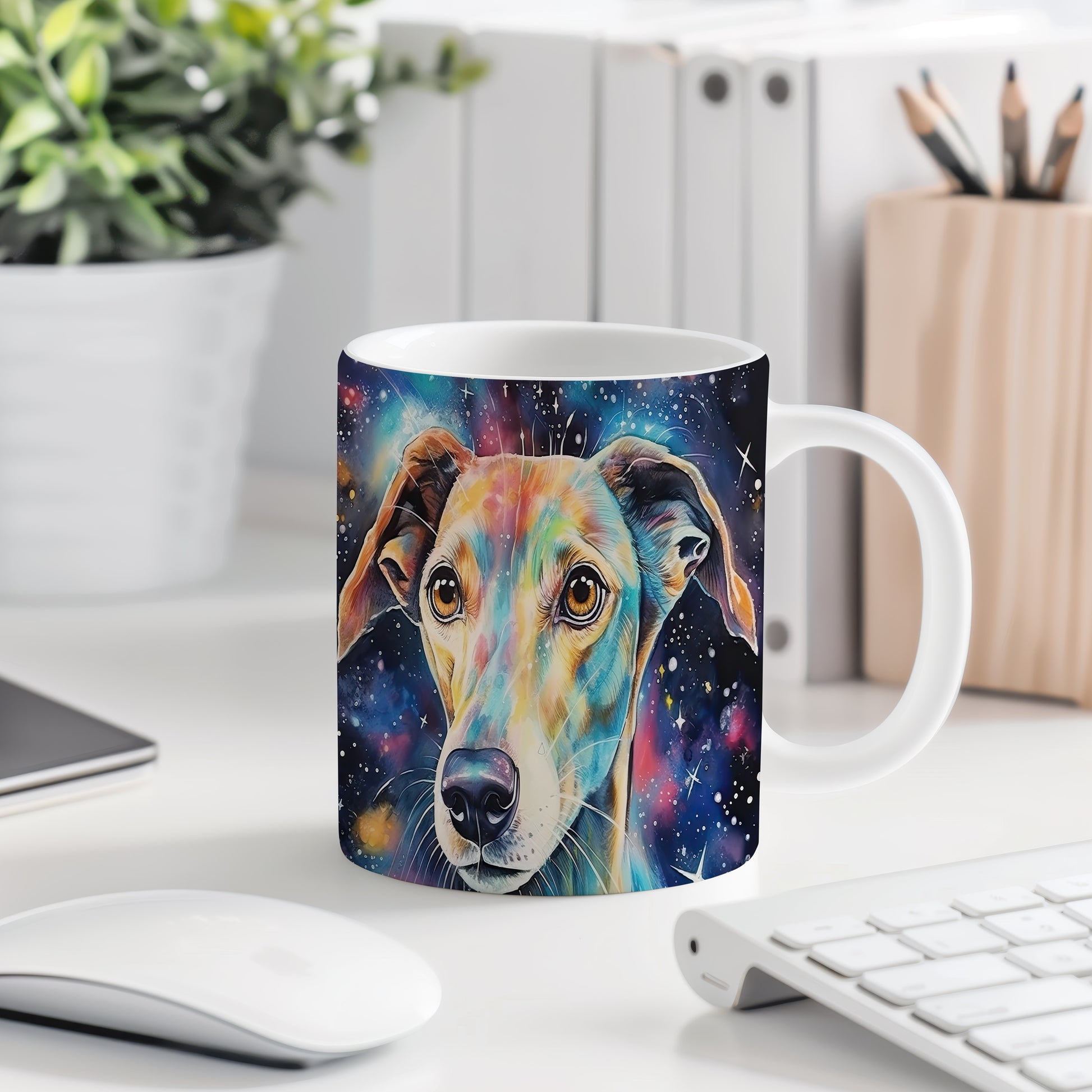 Tento úchvatný hrnek s realisticky ztvárněnou hlavou psa v galaktickém designu potěší každého milovníka psů. Je skvělým dárkem pro přátele a rodinu, kteří ocení originální kousek do své sbírky. Materiál: keramika. Objem: 330 ml. Vhodné do myčky i mikrovlnky. Díky svému jedinečnému vzhledu přináší do každodenního pití radost a styl.