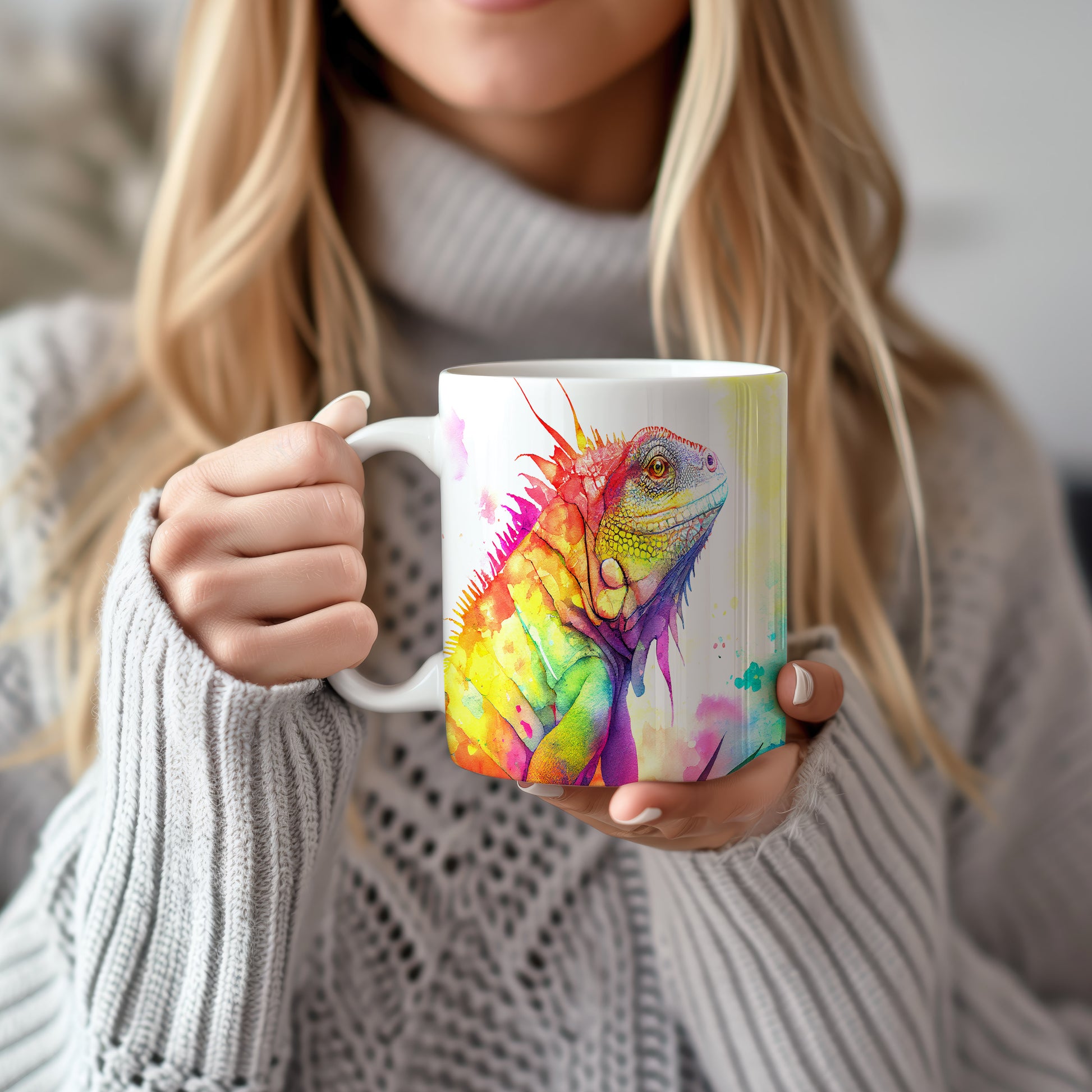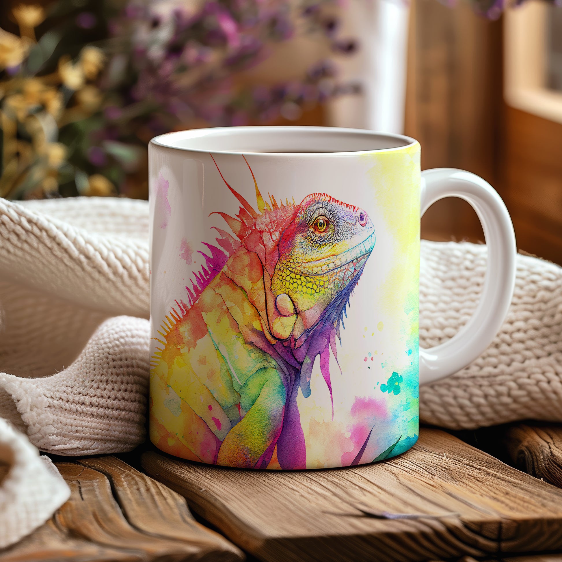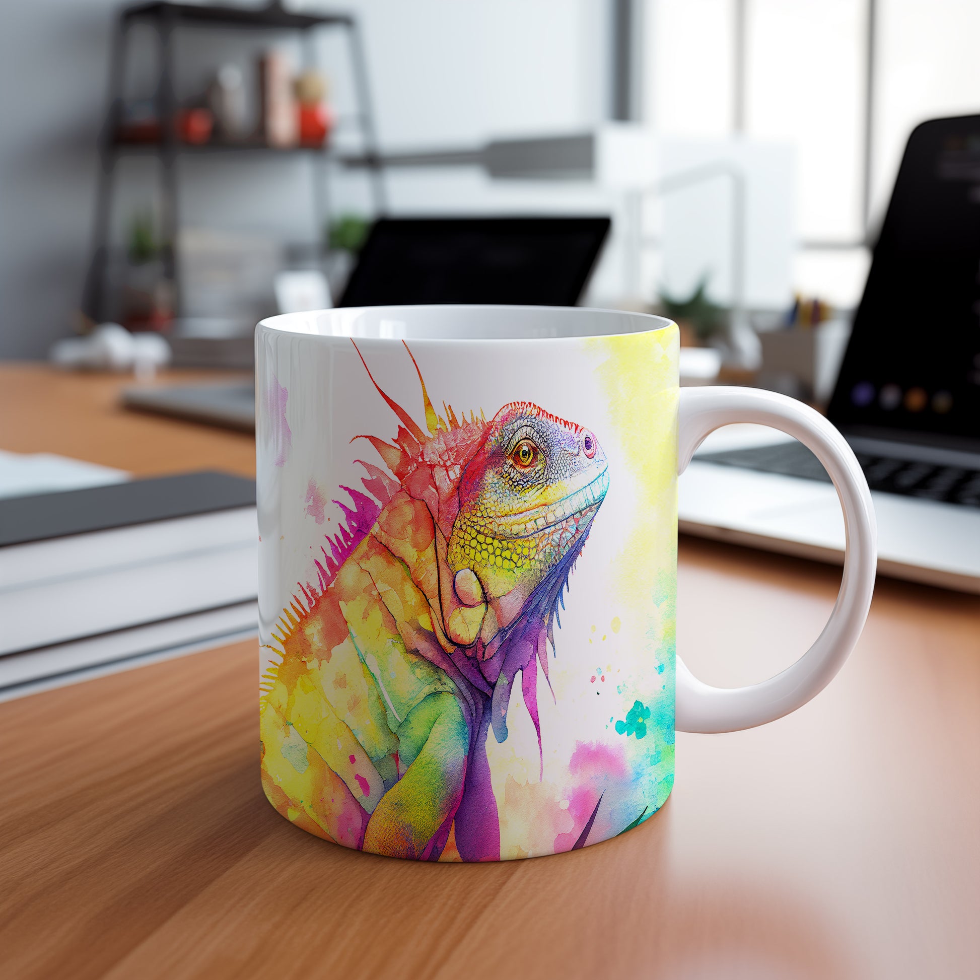 Hrnek s barevnou iguanou – akvarelovým motivem