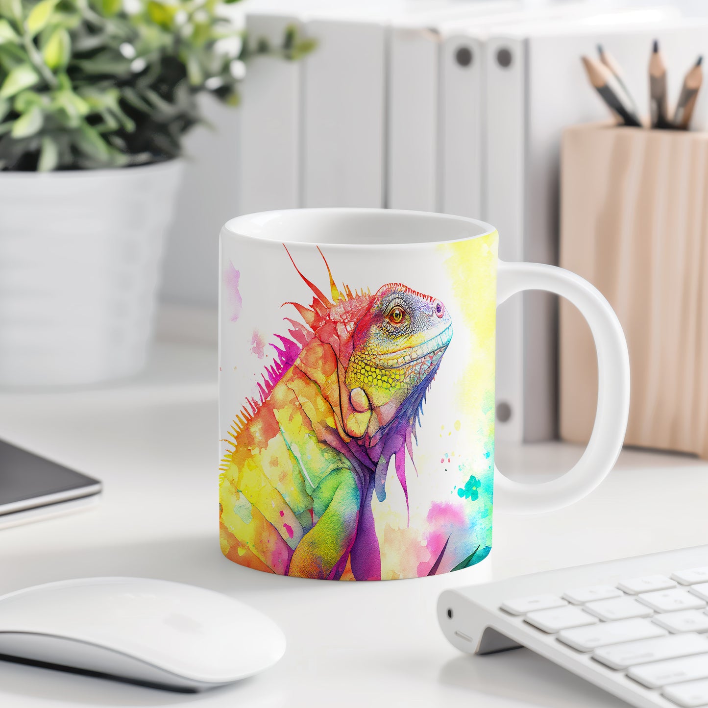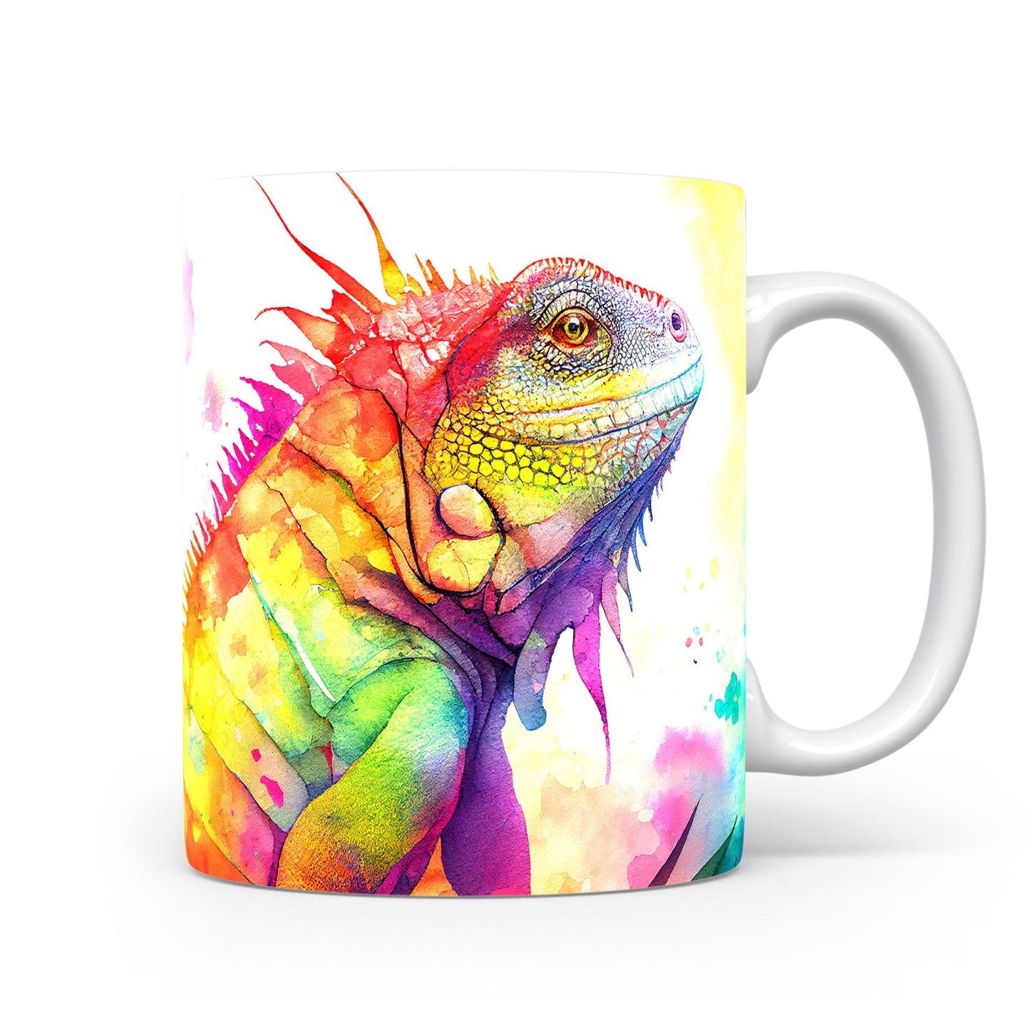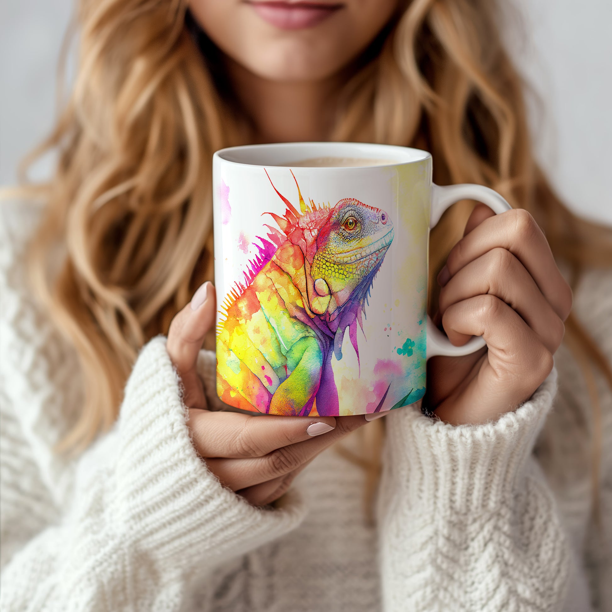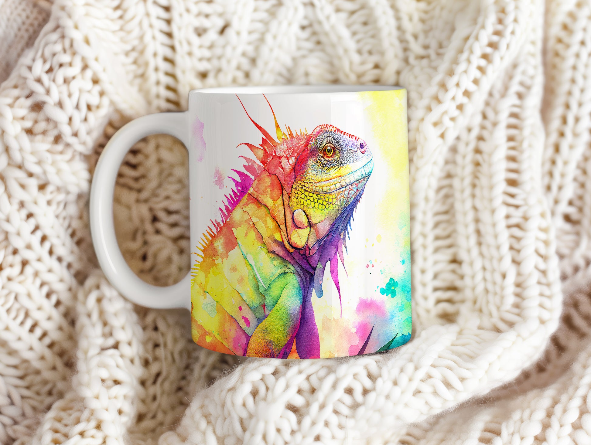 Hrnek s barevnou iguanou – akvarelovým motivem