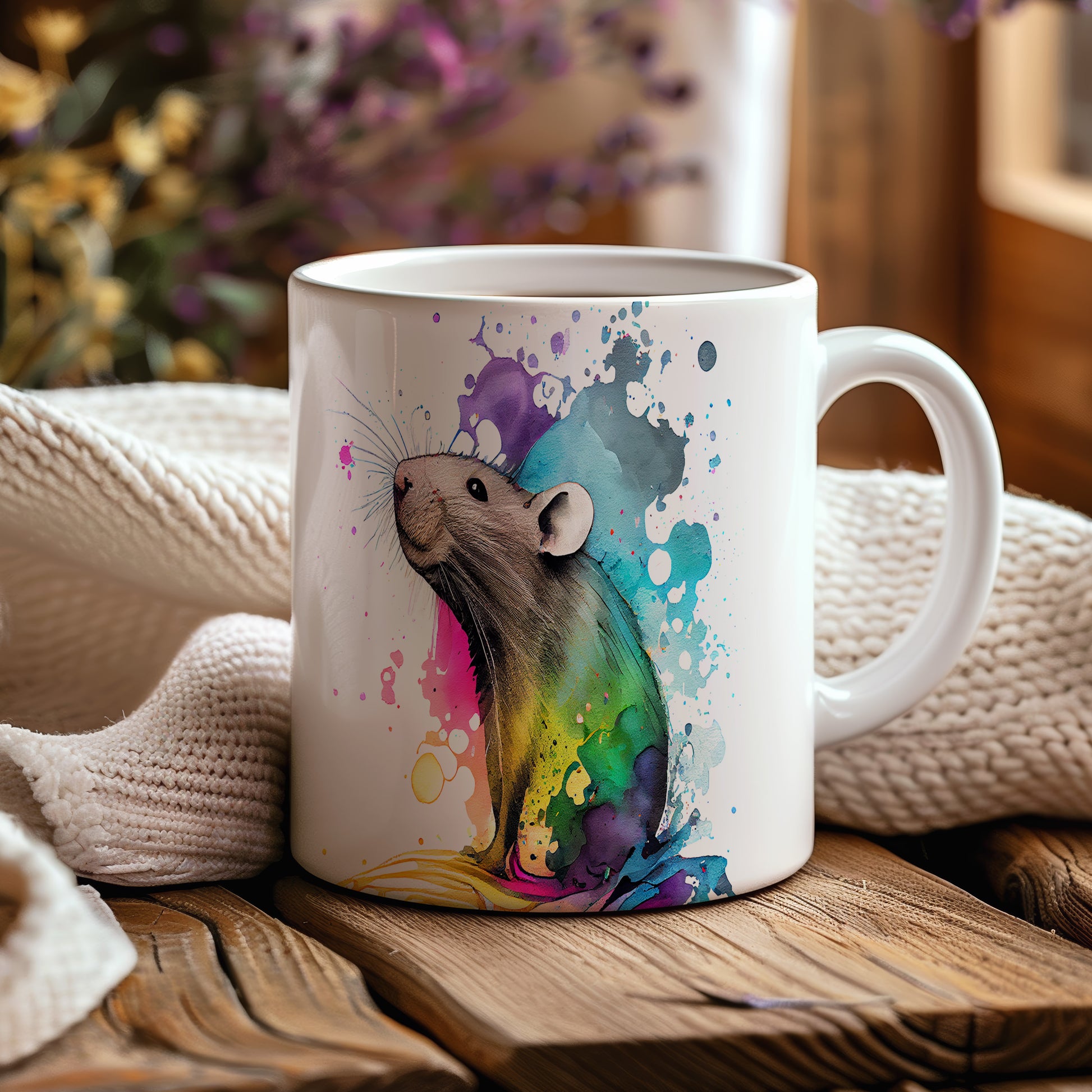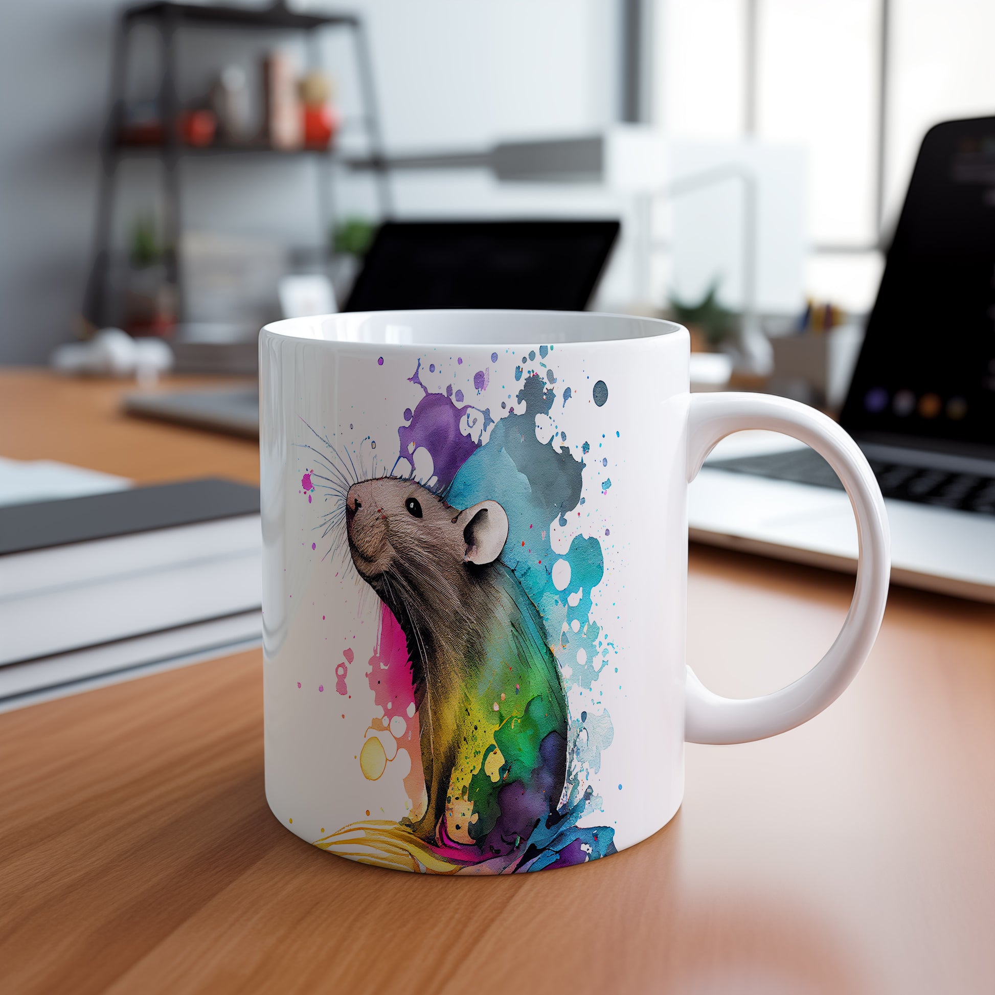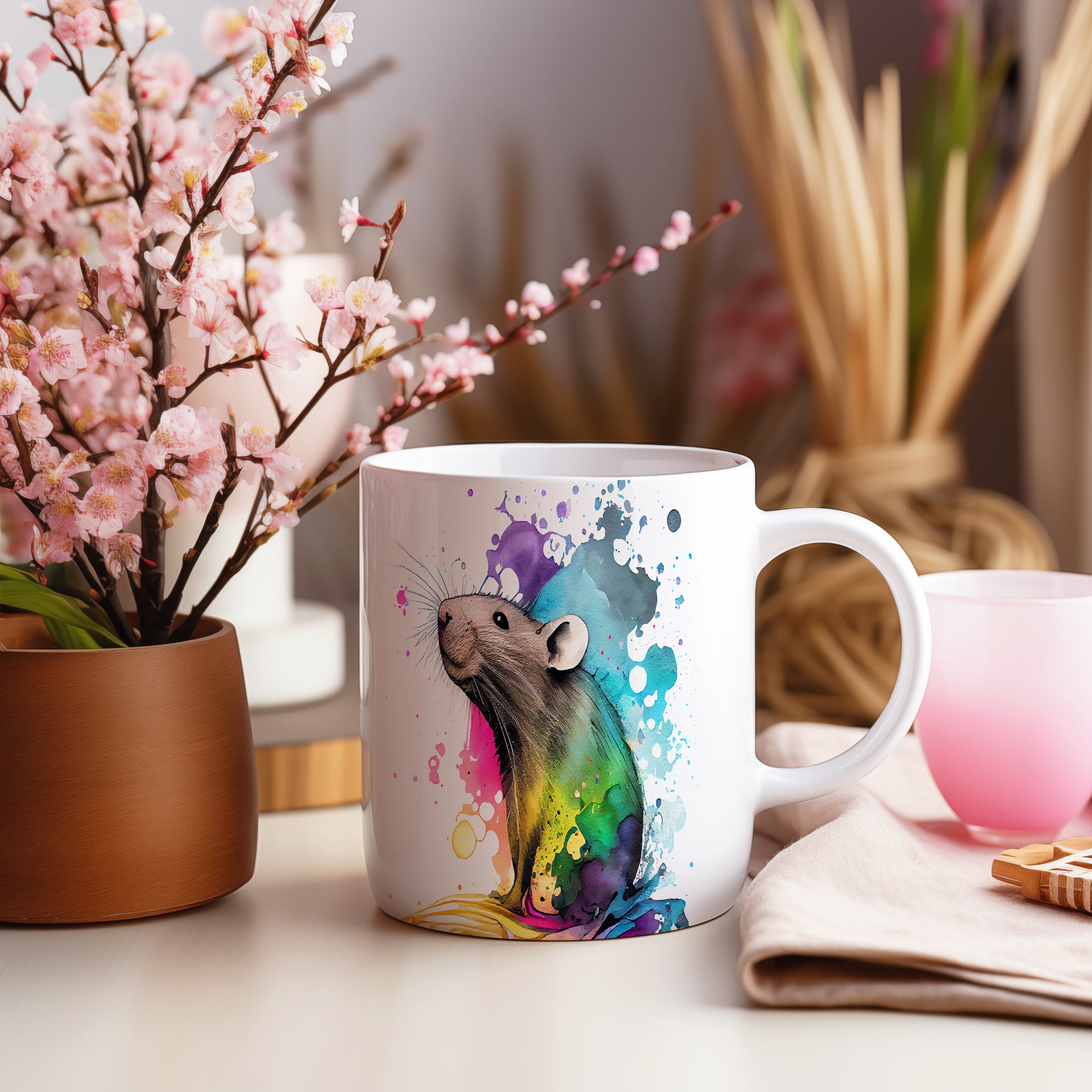 Tento hrnek zobrazuje živou ilustraci myši s akvarelovými skvrnami. Je ideální pro milovníky zvířat a kreativních motivů, skvěle poslouží jako dárek pro děti i dospělé. Materiál: keramika. Objem: 330 ml. Vhodné do myčky i mikrovlnky. Díky svému designu přináší do každodenního pití radost a barevnost.