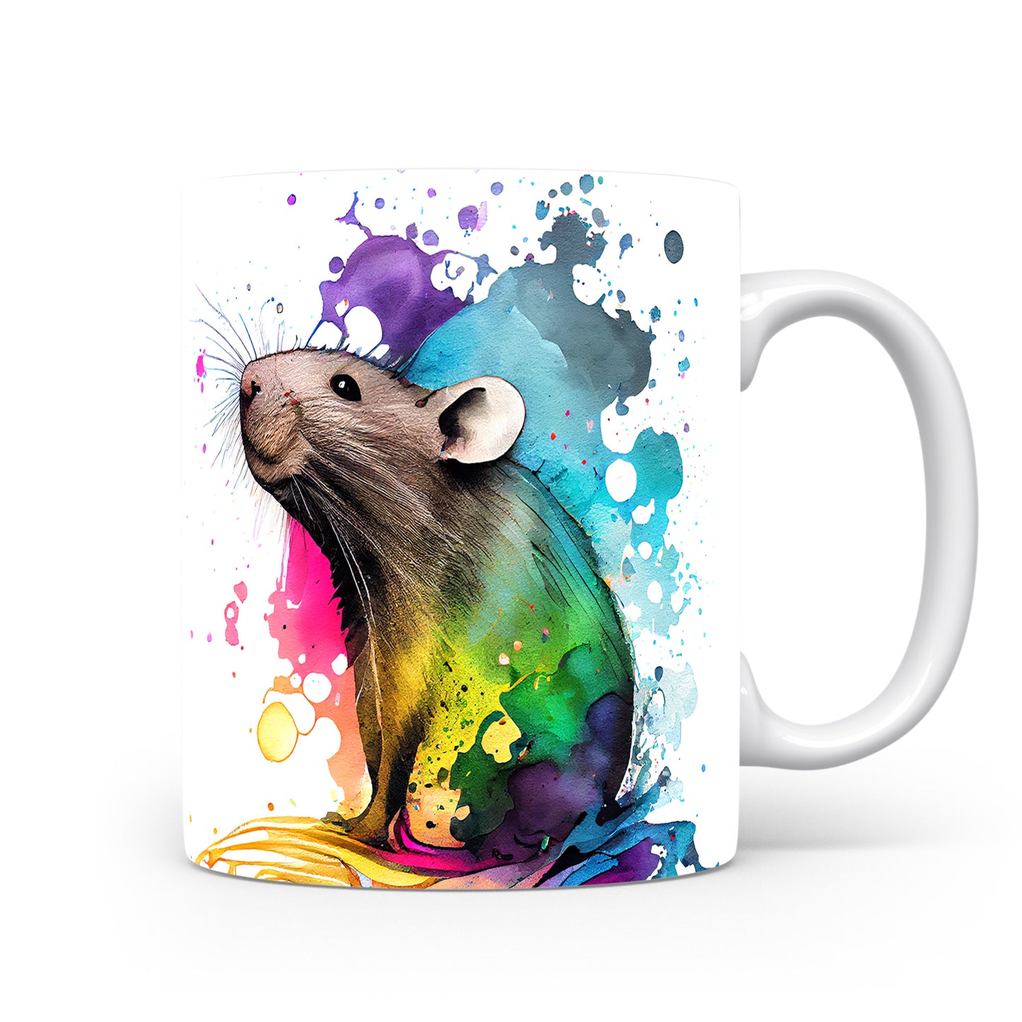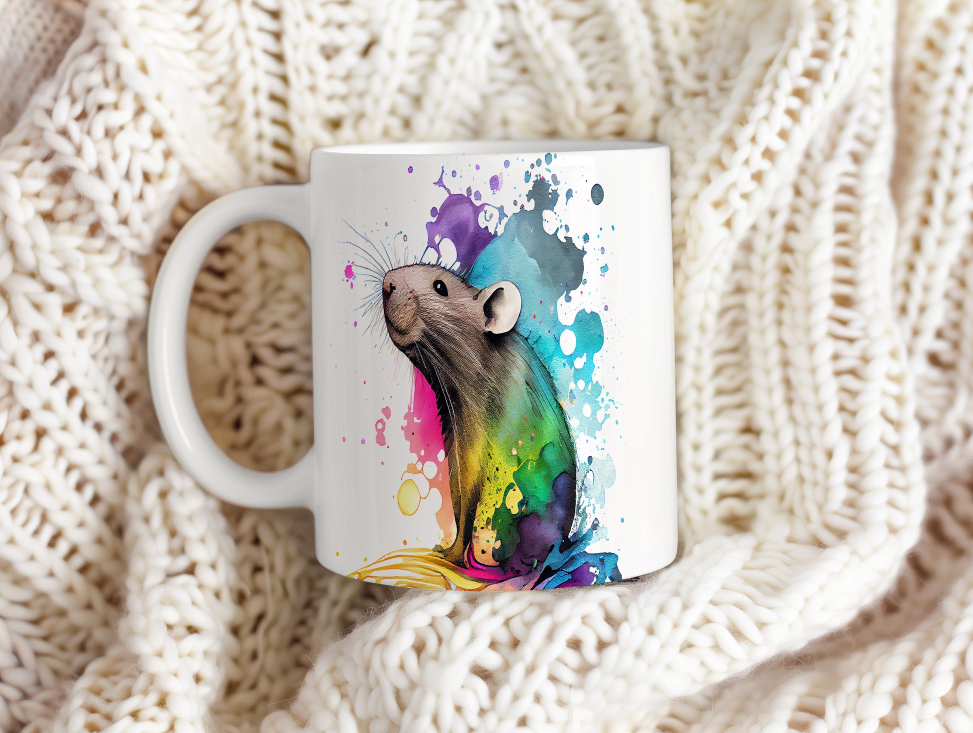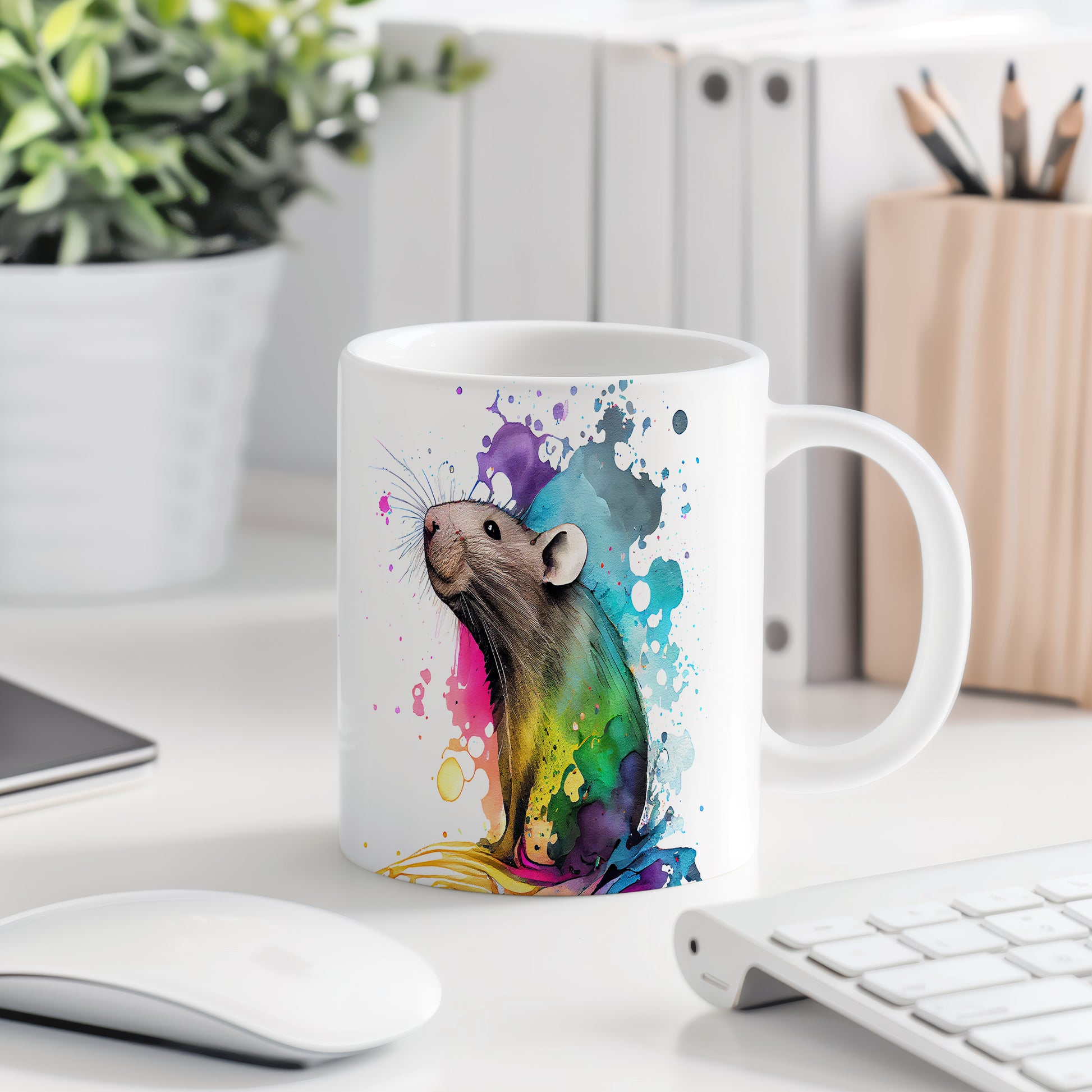 Tento hrnek zobrazuje živou ilustraci myši s akvarelovými skvrnami. Je ideální pro milovníky zvířat a kreativních motivů, skvěle poslouží jako dárek pro děti i dospělé. Materiál: keramika. Objem: 330 ml. Vhodné do myčky i mikrovlnky. Díky svému designu přináší do každodenního pití radost a barevnost.