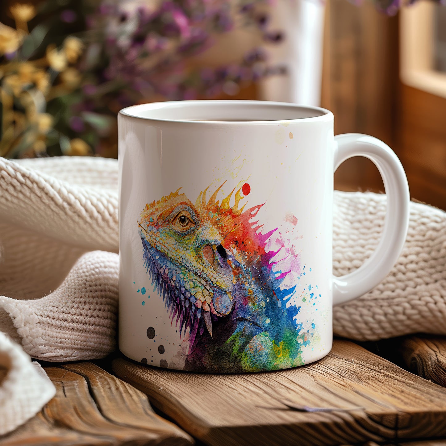Tento originální hrnek s detailním malovaným motivem barevné ještěrky je skvělým doplňkem pro milovníky přírody a exotických zvířat. Je ideální jako dárek pro přátele nebo rodinu, kteří ocení jedinečný design. Materiál: keramika. Objem: 330 ml. Vhodné do myčky i mikrovlnky. Používáním tohoto hrnku si užijete nejen stylový vzhled, ale i praktické vlastnosti.