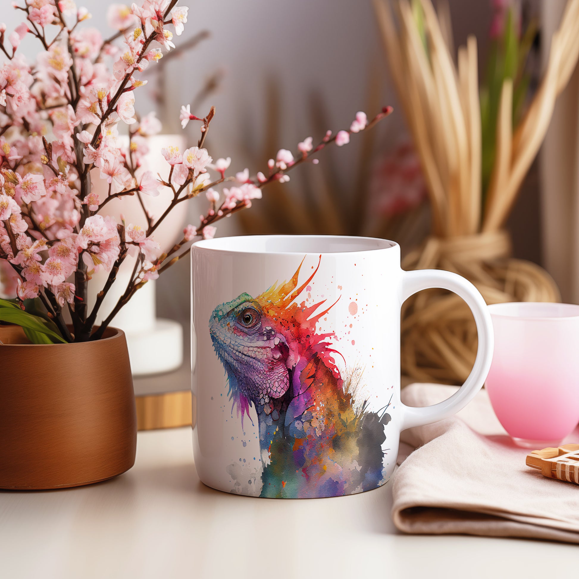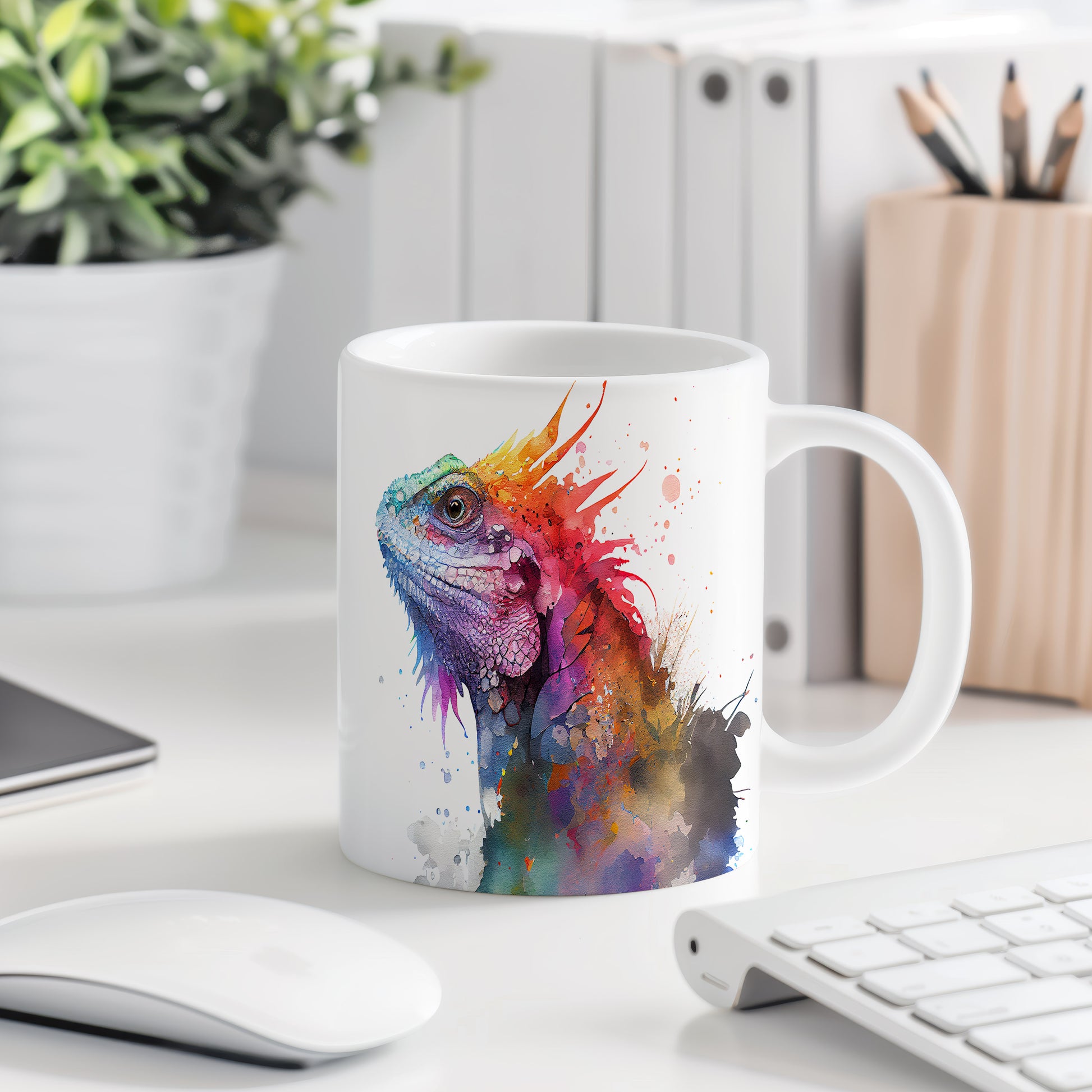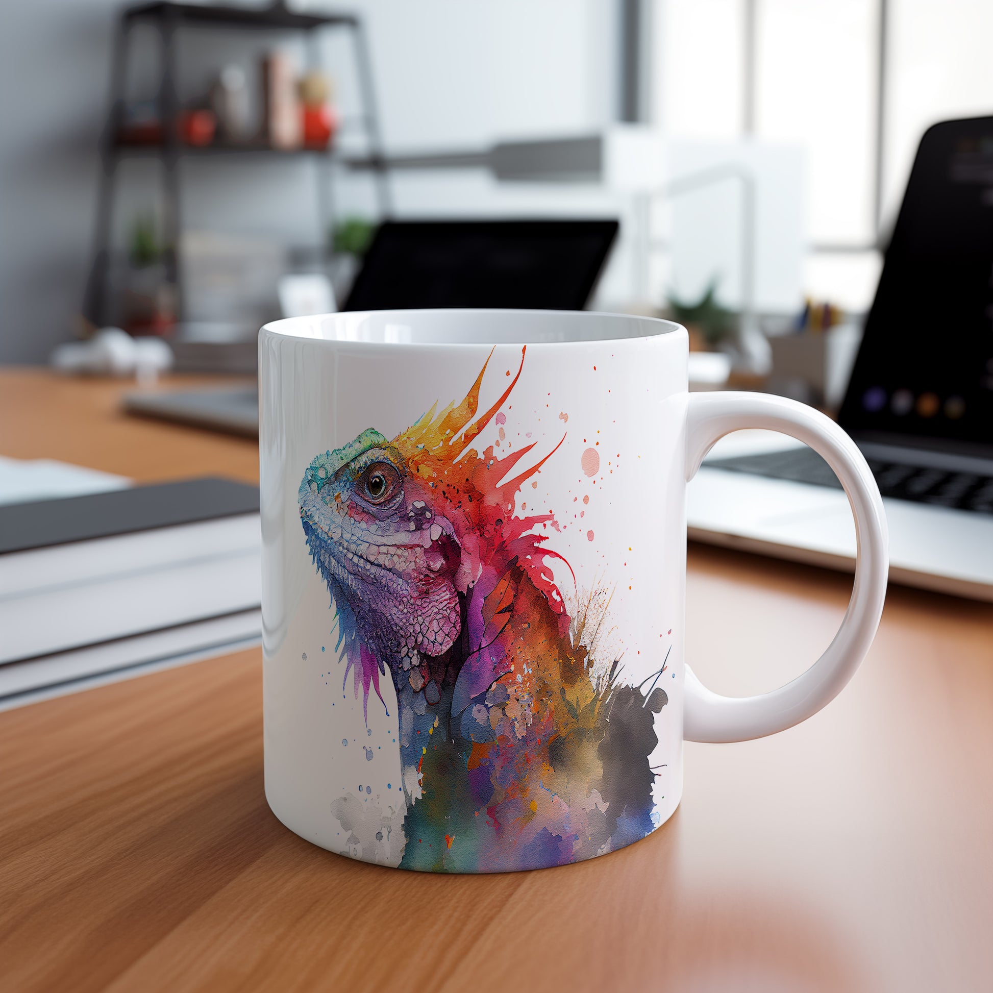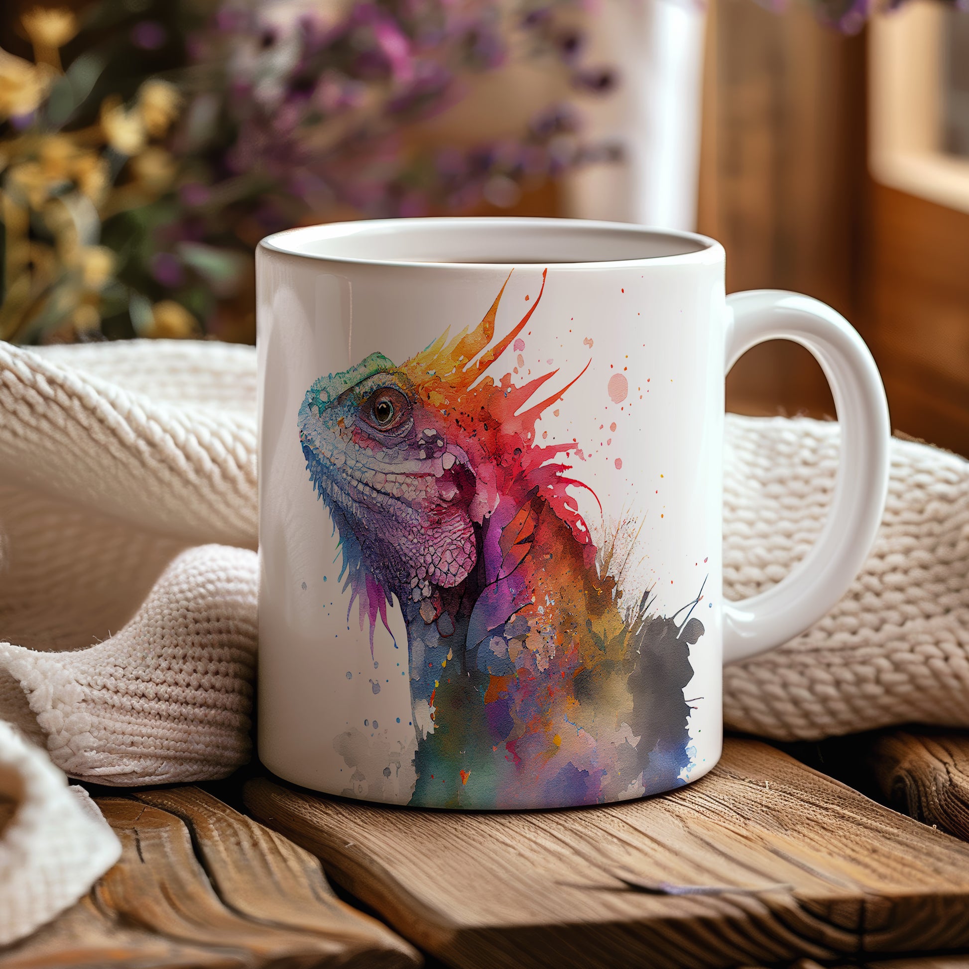 Tento keramický hrnek s motivem barevné ještěrky je skvělým kouskem pro milovníky přírody a originálního designu. Je ideální jako dárek pro přátele nebo rodinu, kteří ocení jedinečné umělecké kousky. Materiál: keramika. Objem: 330 ml. Vhodné do myčky i mikrovlnky. Díky svému jedinečnému vzhledu přinese radost do každého dne.