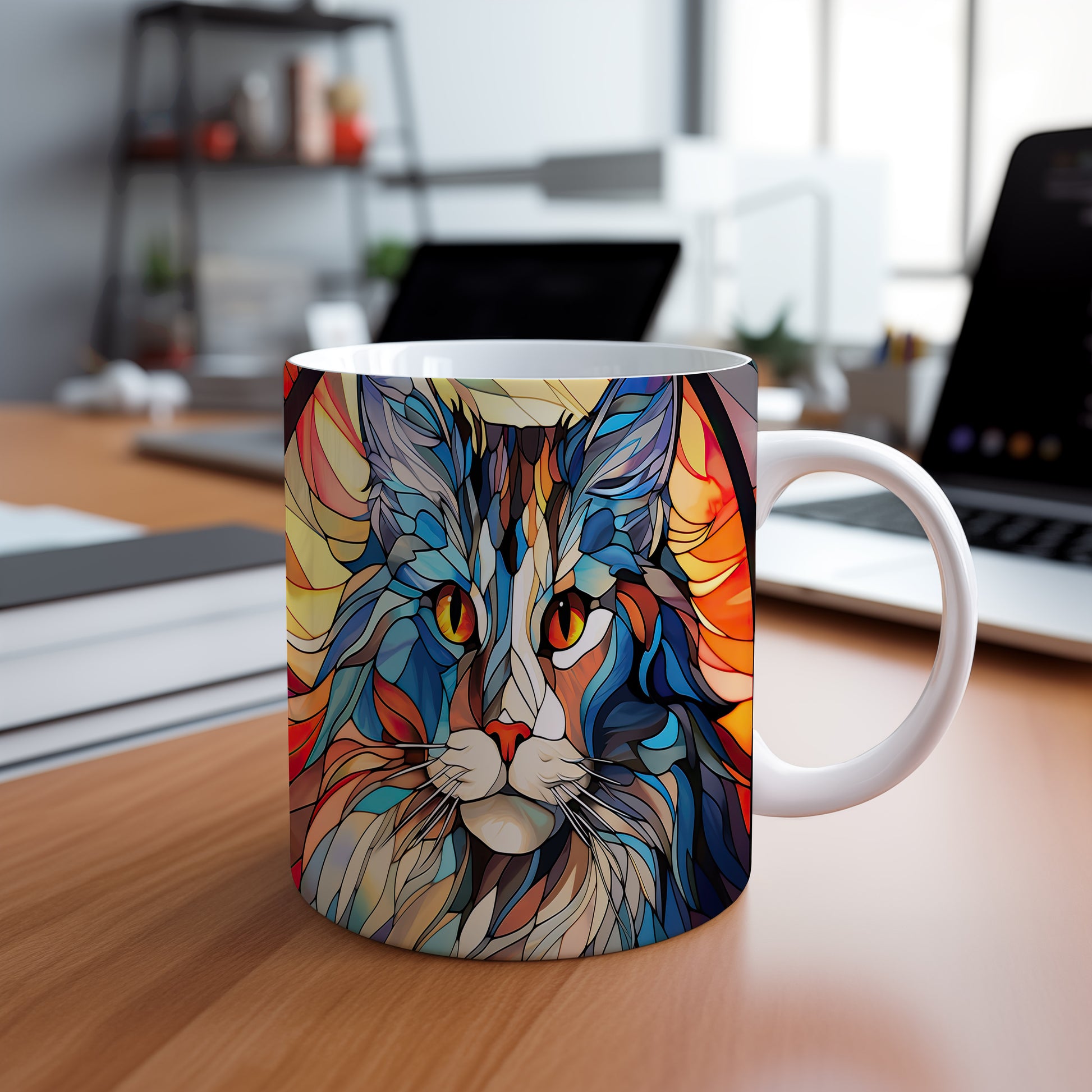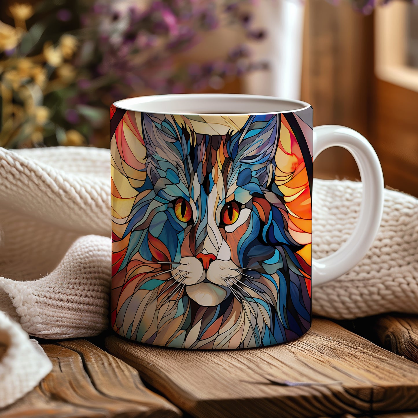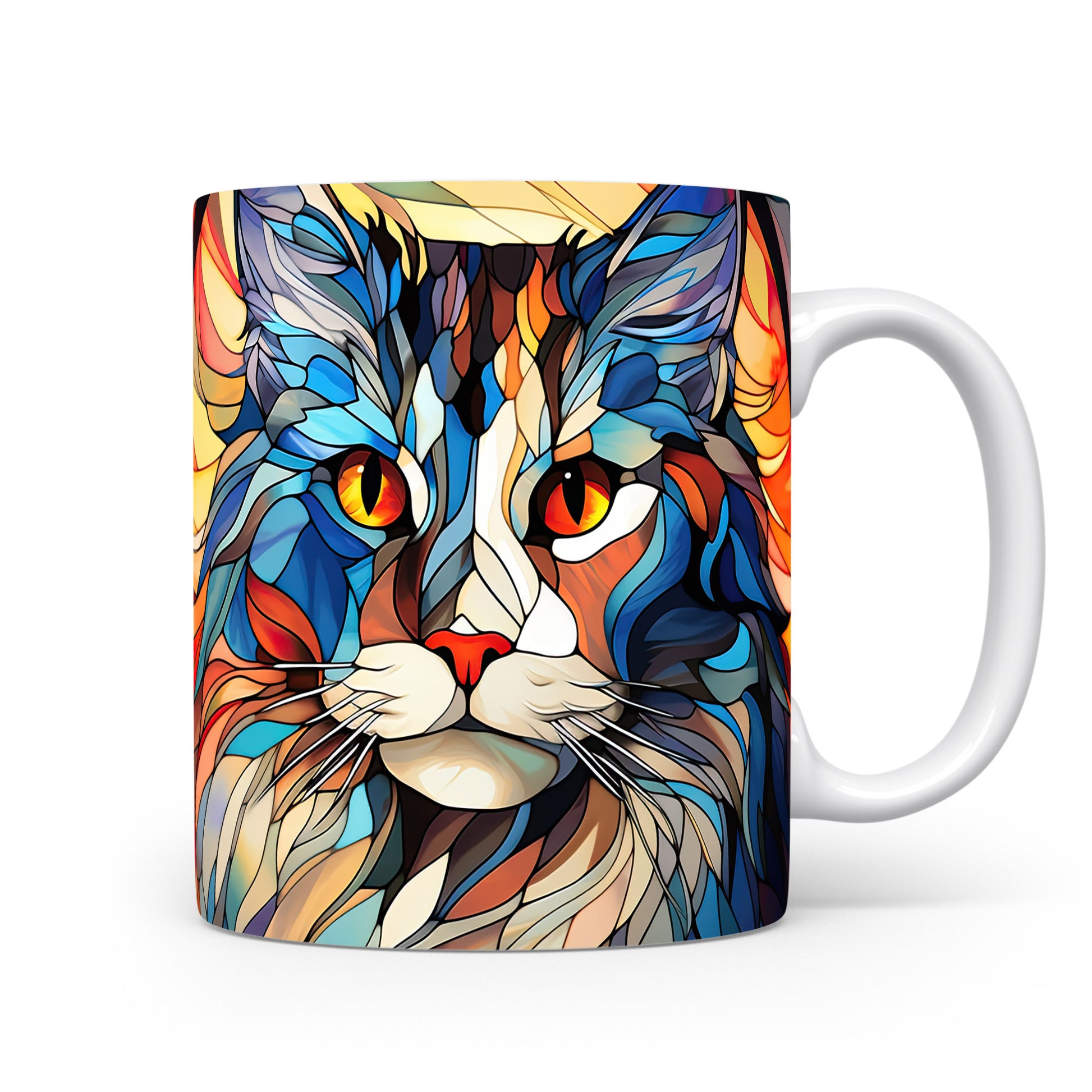 Tento hrnek zobrazuje barevnou kočku s detailními vzory na srsti, ideální pro milovníky domácích zvířat a koček. Skvělý tip na dárek pro přátele nebo rodinu, kteří mají rádi zvířata. Materiál: keramika. Objem: 330 ml. Vhodné do myčky i mikrovlnky. Používání tohoto hrnku přináší radost a oživí každé pití.
