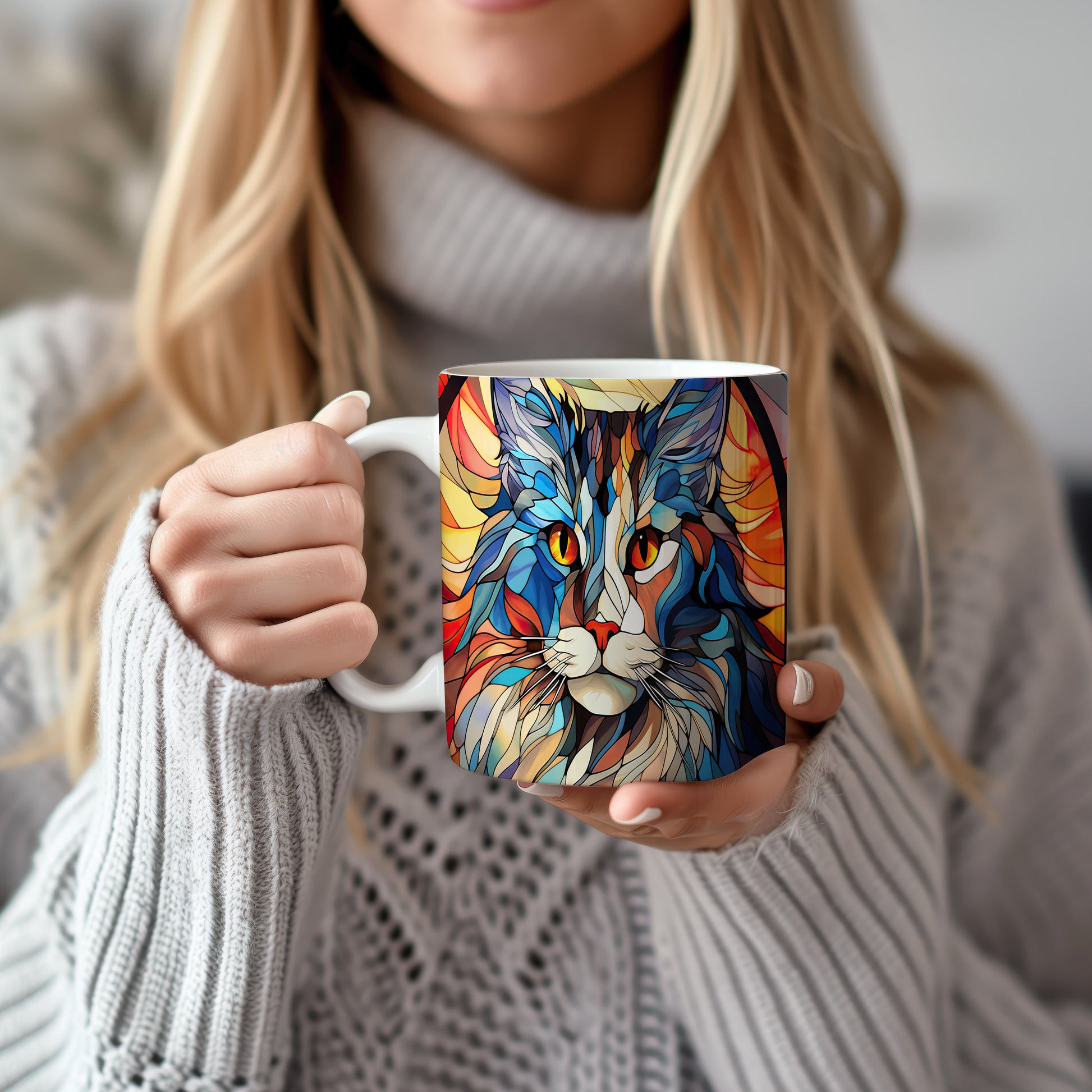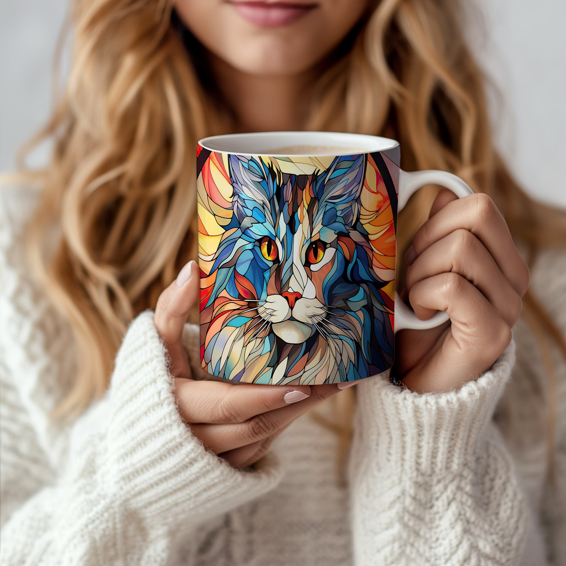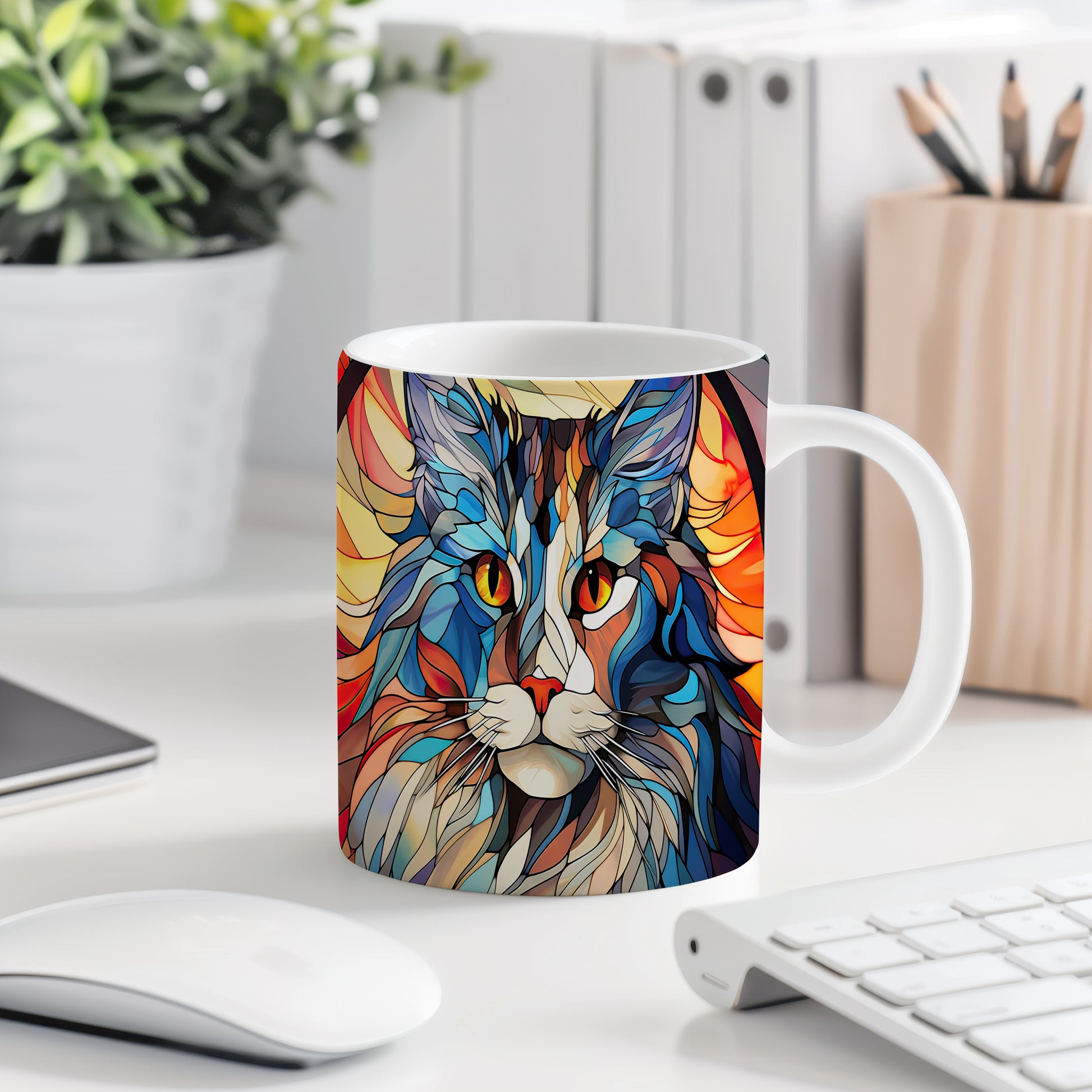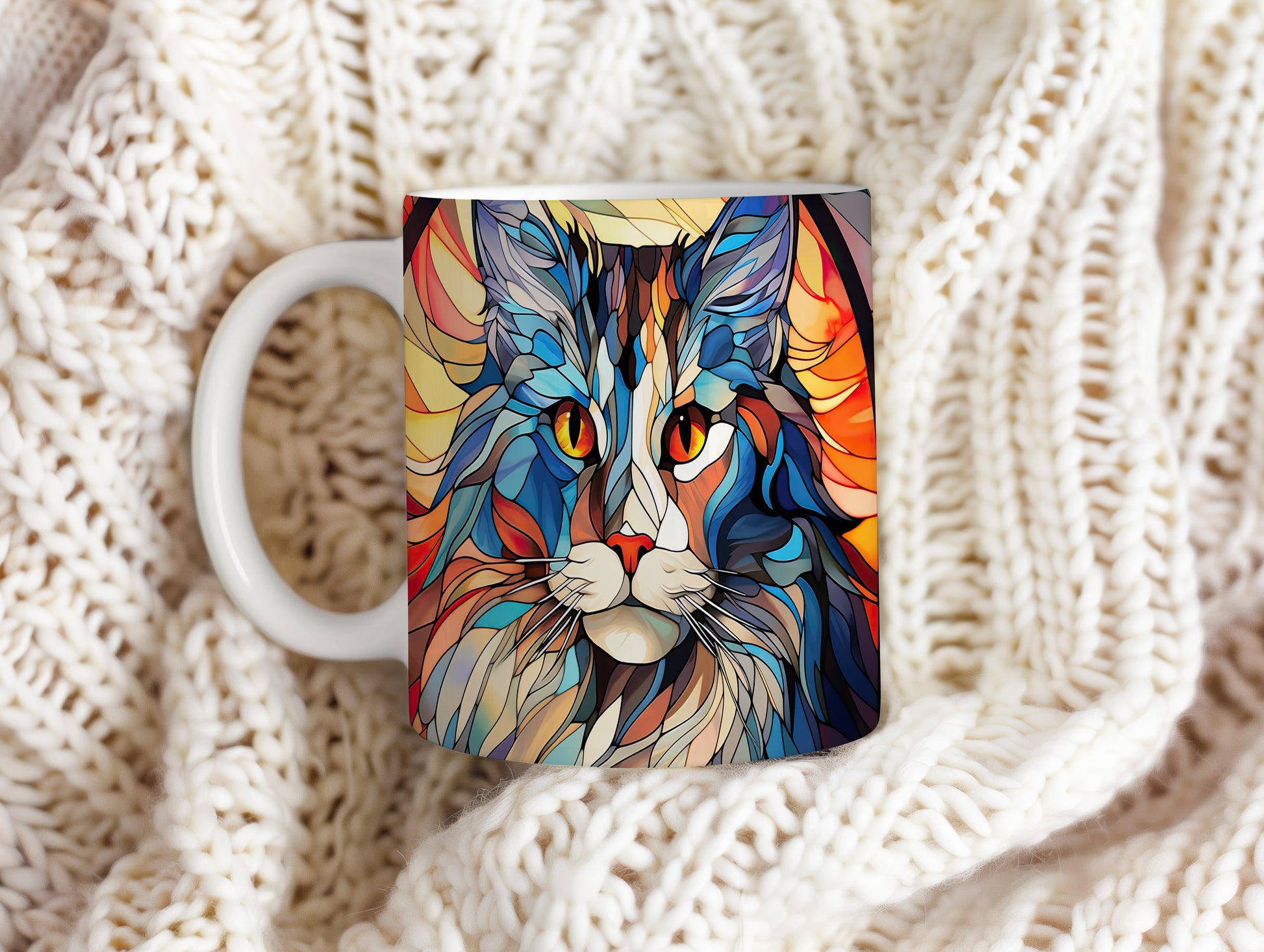 Tento hrnek zobrazuje barevnou kočku s detailními vzory na srsti, ideální pro milovníky domácích zvířat a koček. Skvělý tip na dárek pro přátele nebo rodinu, kteří mají rádi zvířata. Materiál: keramika. Objem: 330 ml. Vhodné do myčky i mikrovlnky. Používání tohoto hrnku přináší radost a oživí každé pití.