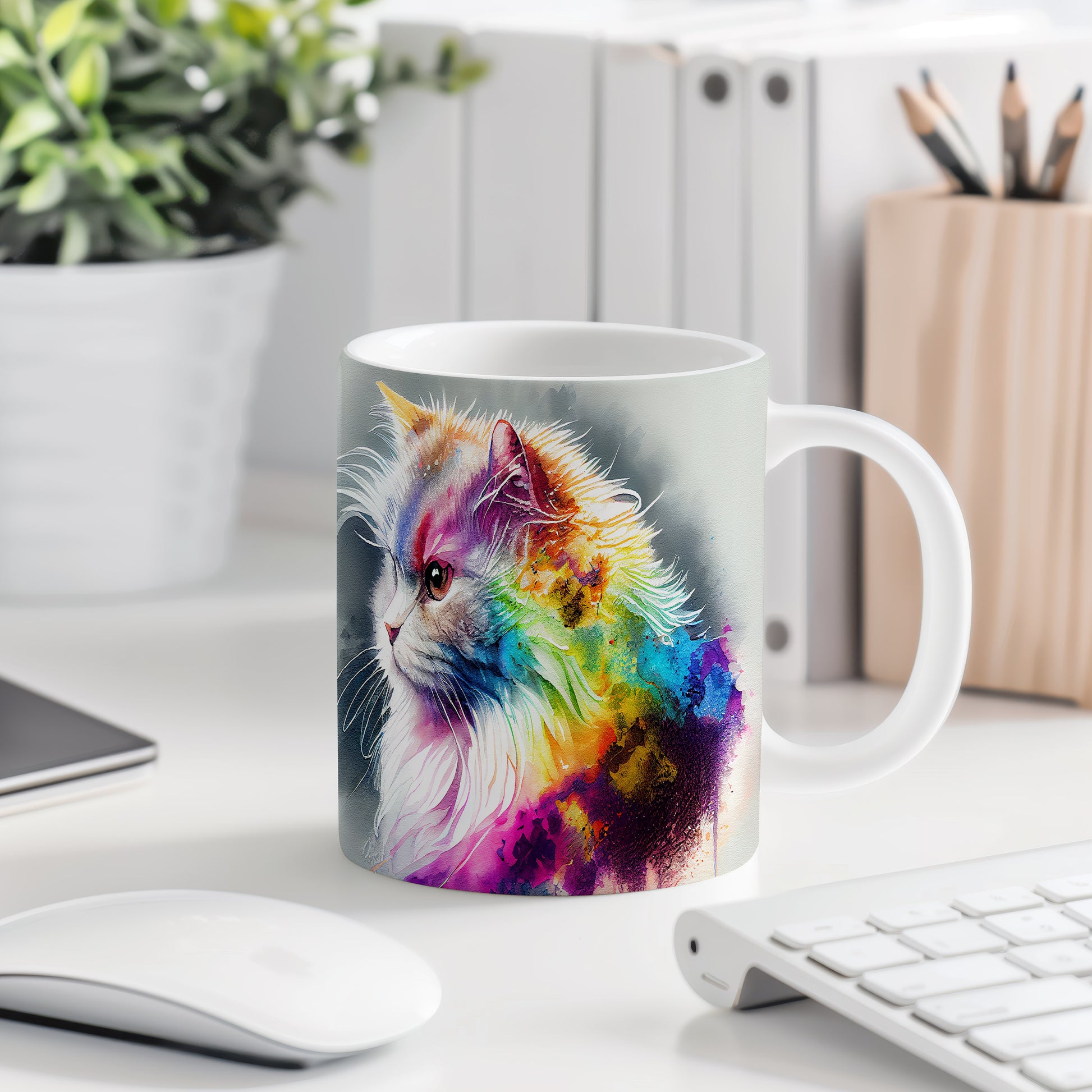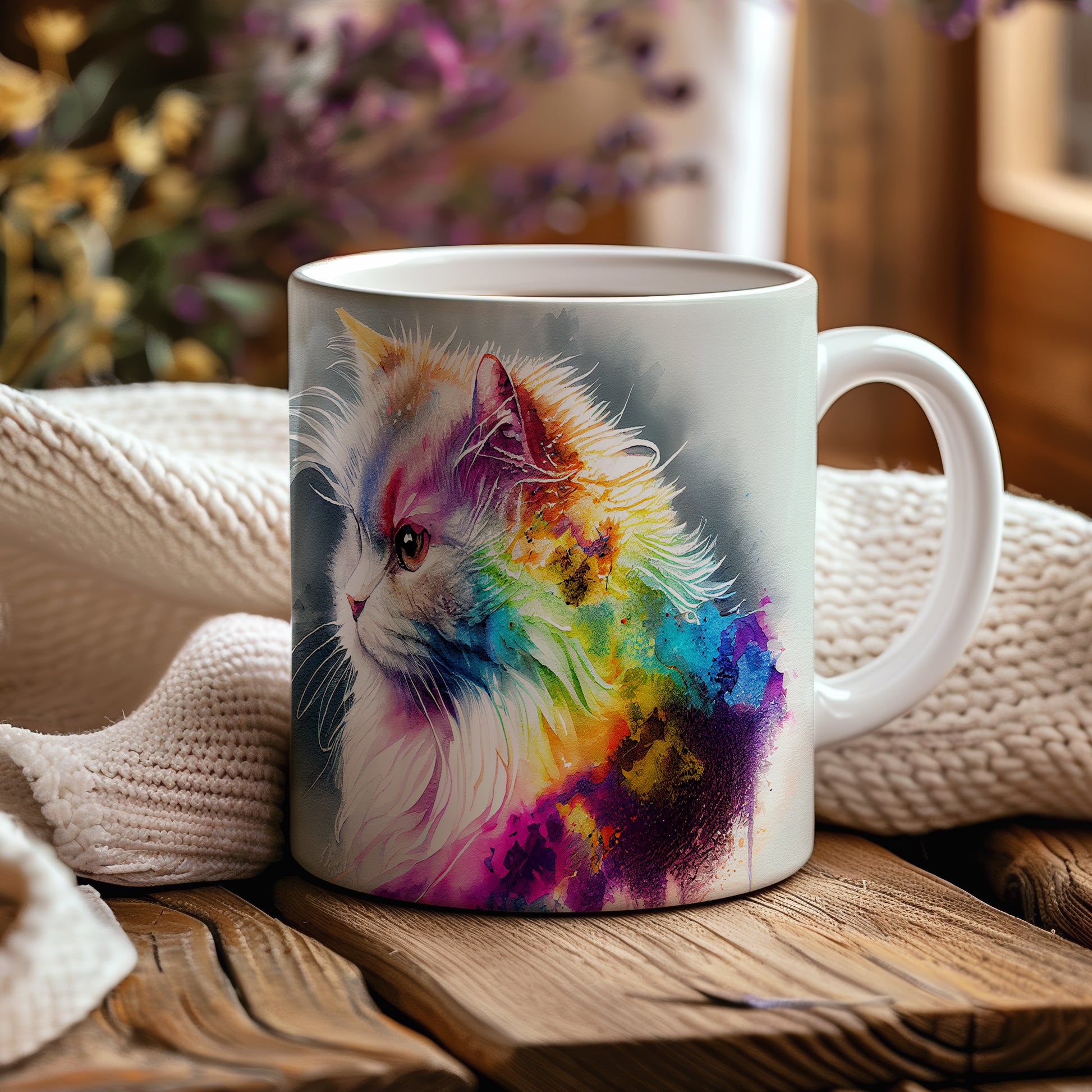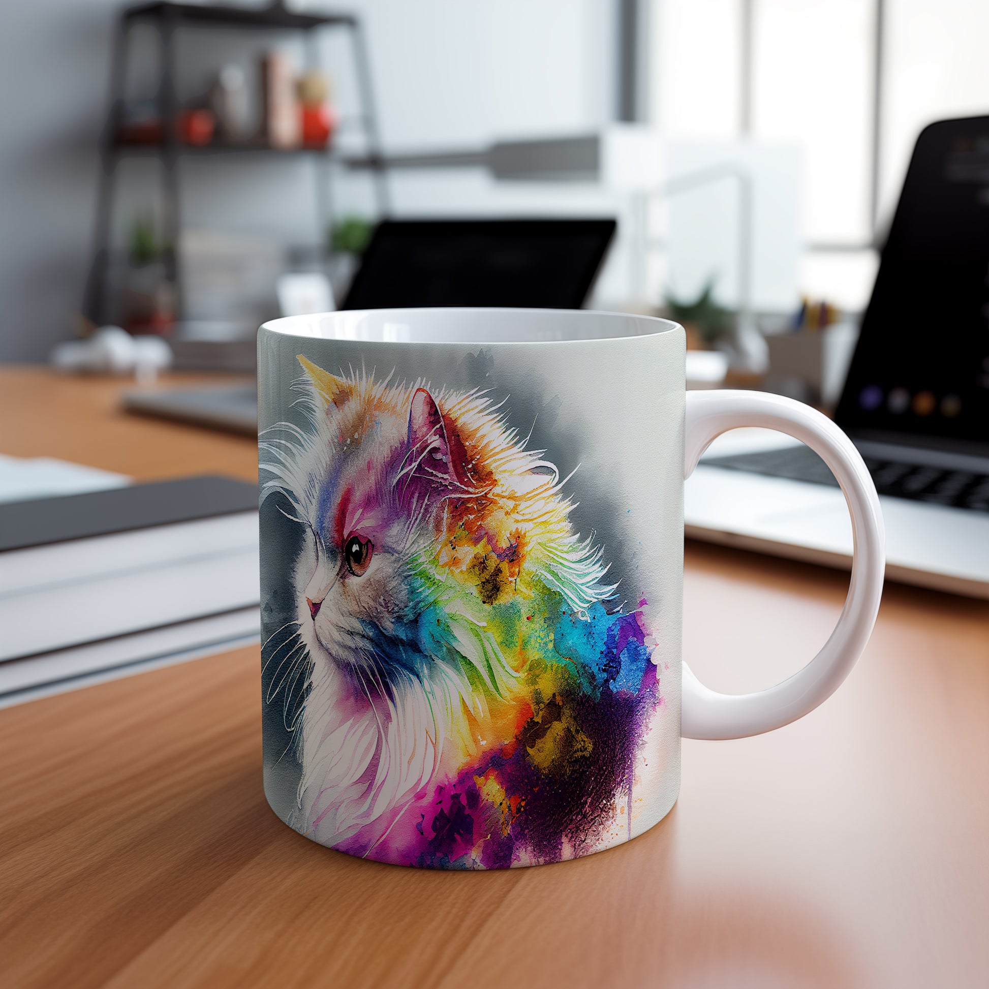 Hrnek s motivem barevné kočky ve vodovkách přináší do vašeho dne kousek umění a radosti. Je ideální pro milovníky koček a skvělým dárkem pro přátele či rodinu. Materiál: keramika. Objem: 330 ml. Vhodné do myčky i mikrovlnky. Tento hrnek vám zpříjemní každé ráno a dodá vám inspiraci při pití vašeho oblíbeného nápoje.