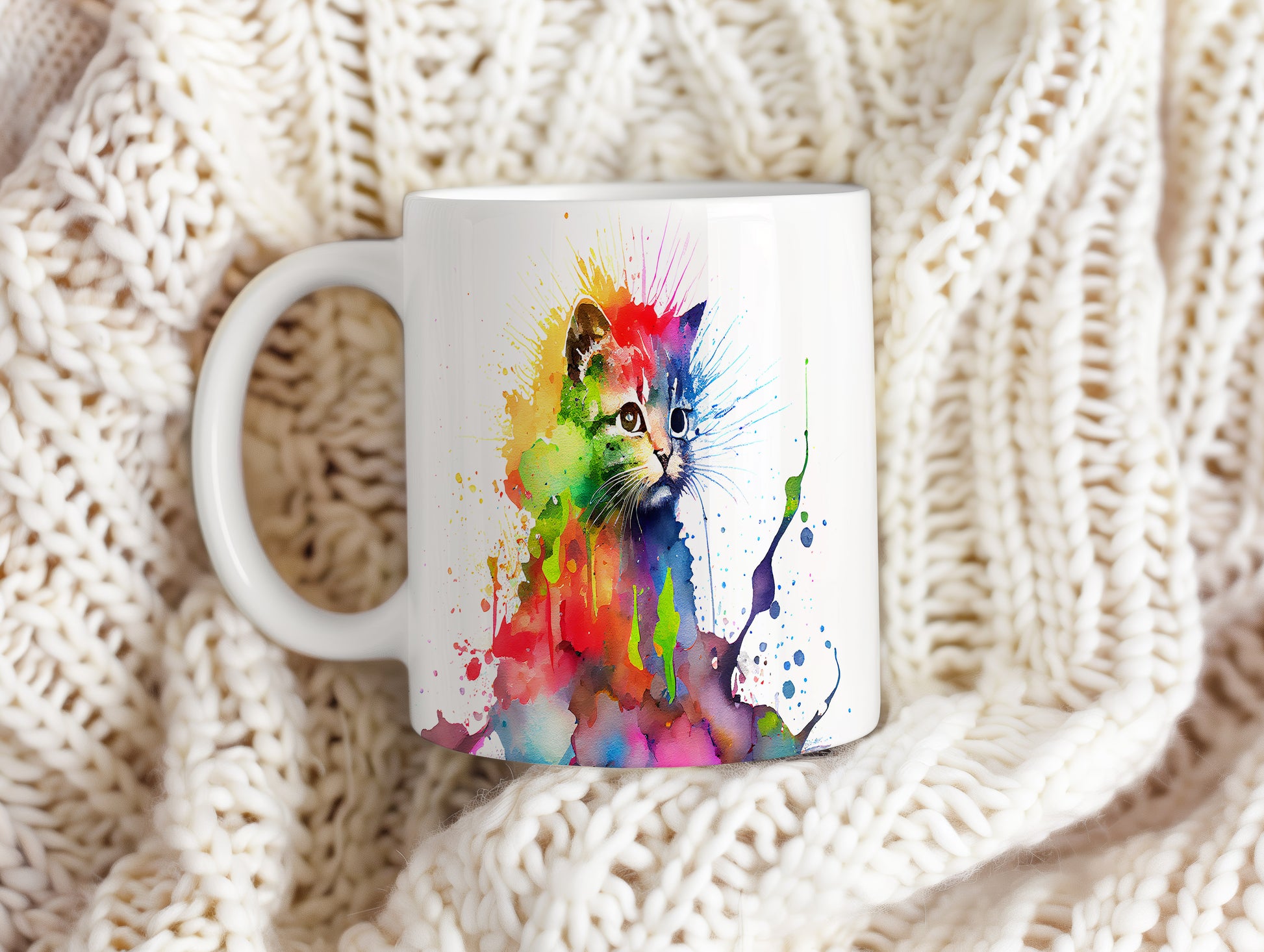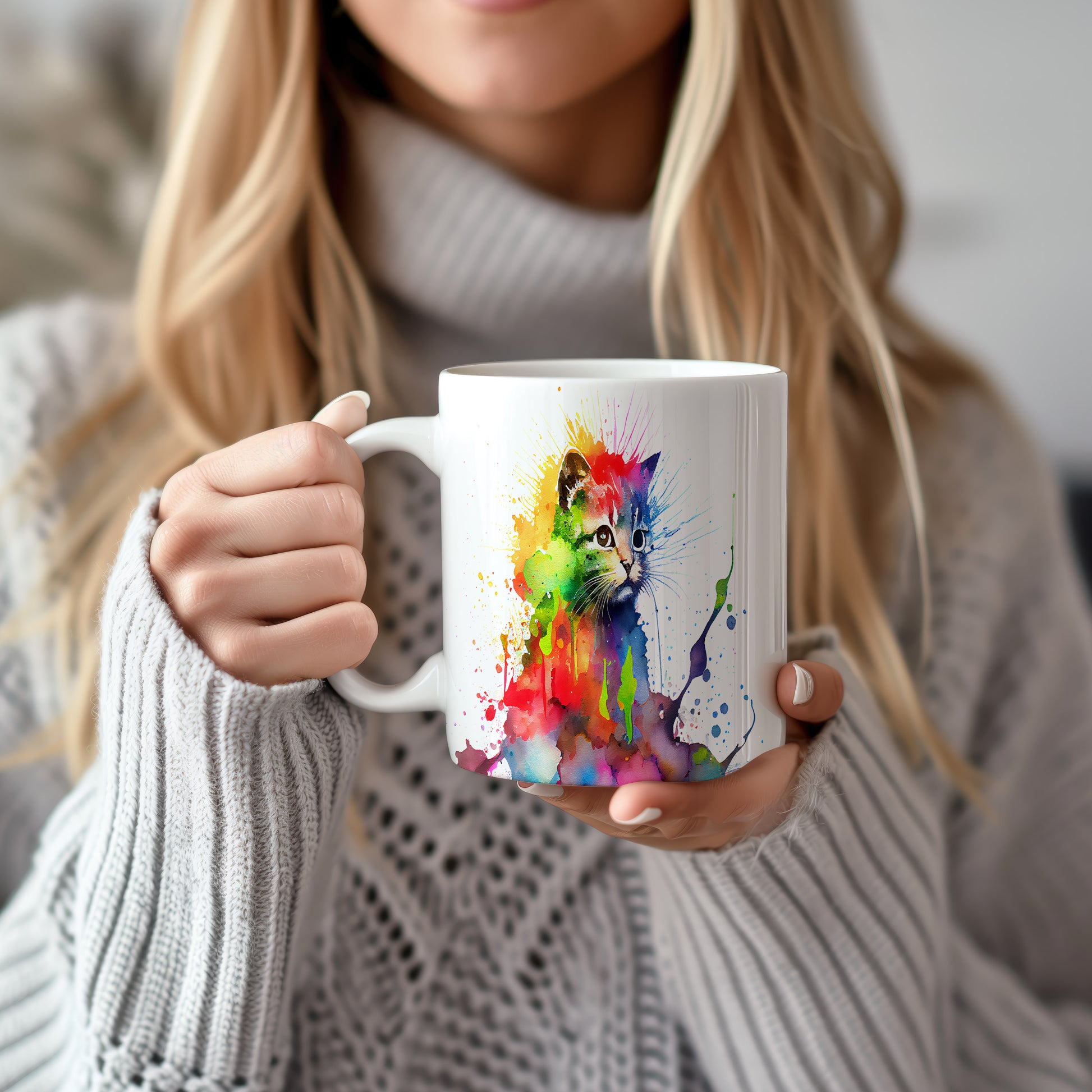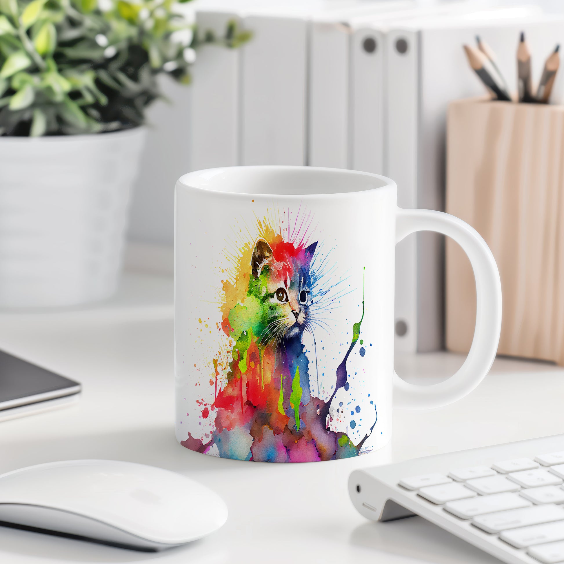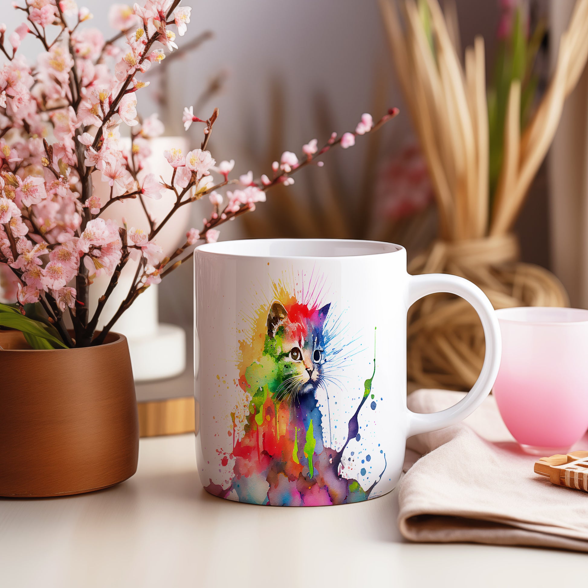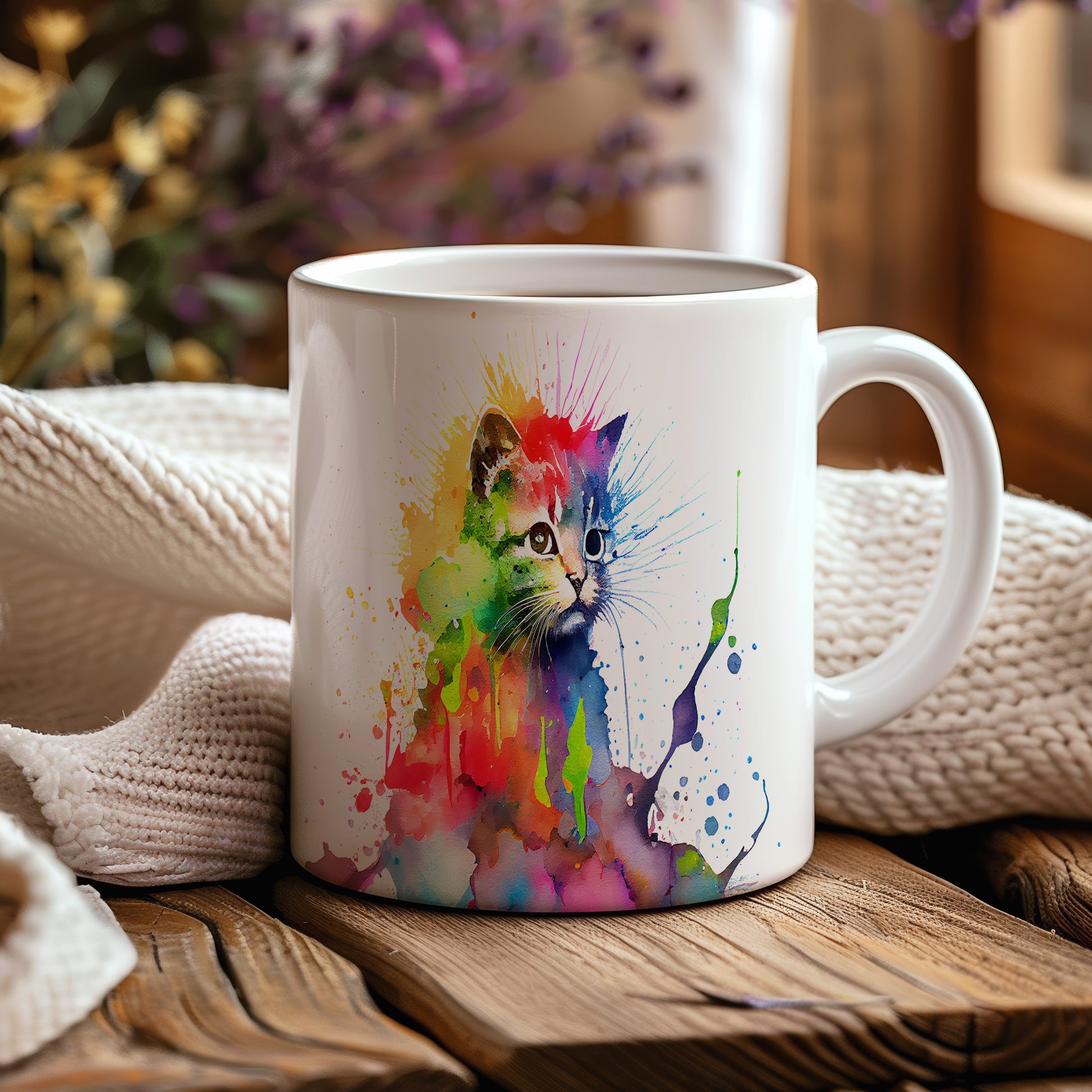 Hrnek s barevnou kočkou – výrazným designem