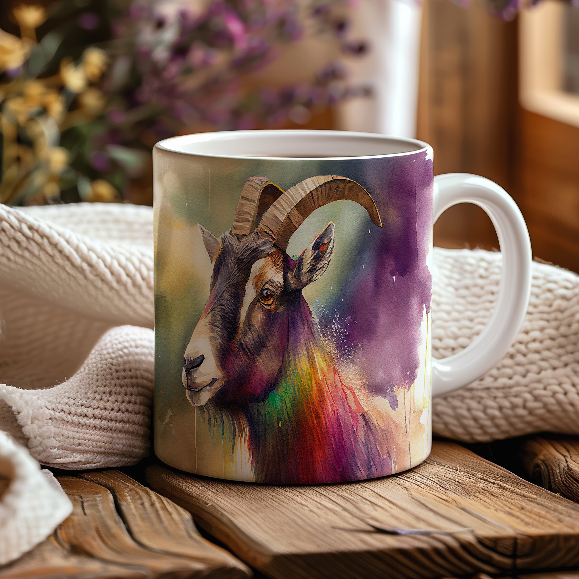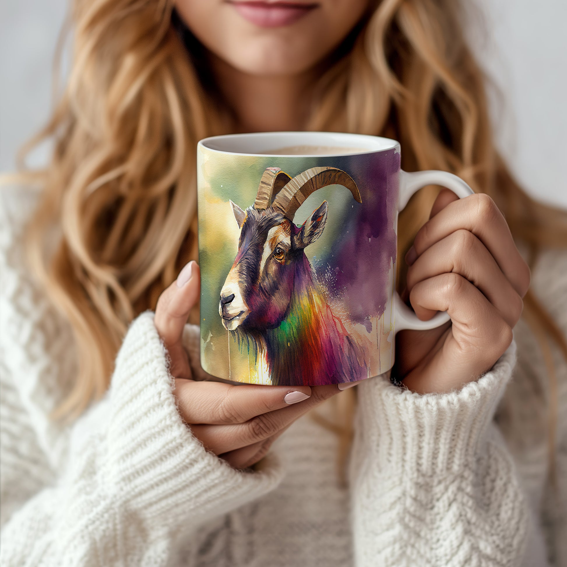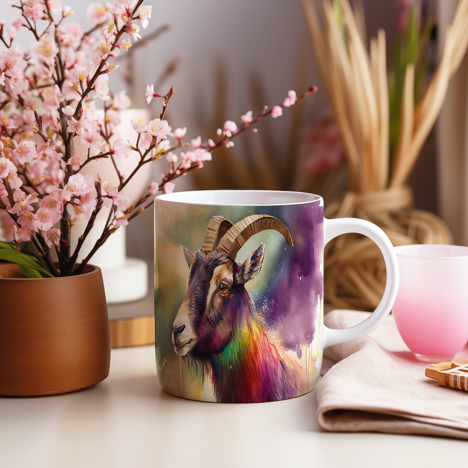 Tento hrnek zobrazuje barevnou kozu v jemném akvarelovém stylu. Je ideální pro milovníky zvířat a přírody, skvělý tip na dárek pro přátele nebo rodinu. Materiál: keramika. Objem: 330 ml. Vhodné do myčky i mikrovlnky. Používání tohoto hrnku přináší radost z každého doušku.