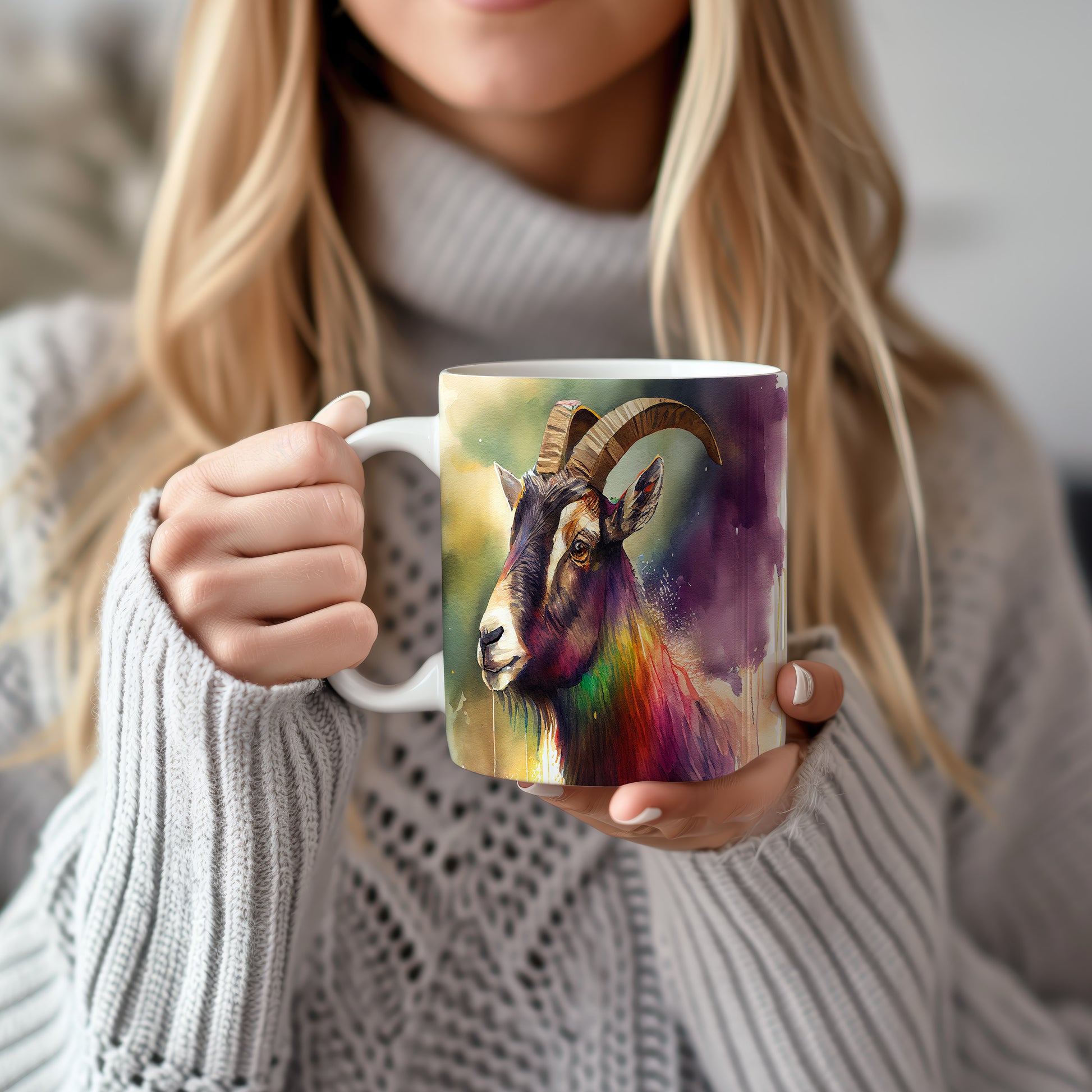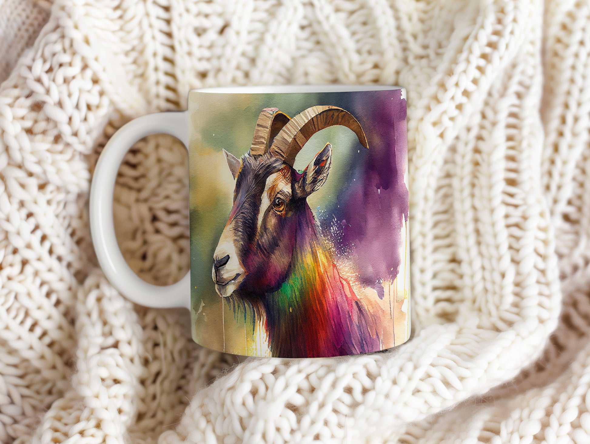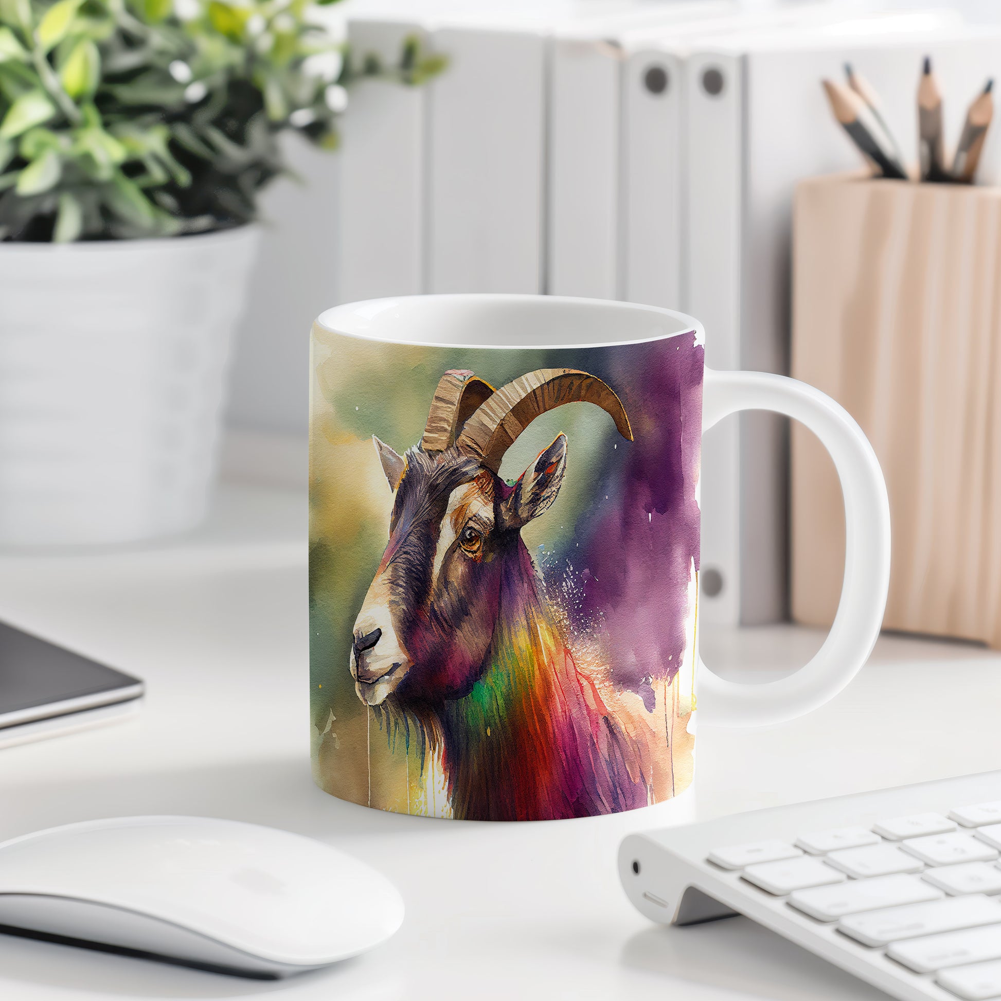 Tento hrnek zobrazuje barevnou kozu v jemném akvarelovém stylu. Je ideální pro milovníky zvířat a přírody, skvělý tip na dárek pro přátele nebo rodinu. Materiál: keramika. Objem: 330 ml. Vhodné do myčky i mikrovlnky. Používání tohoto hrnku přináší radost z každého doušku.